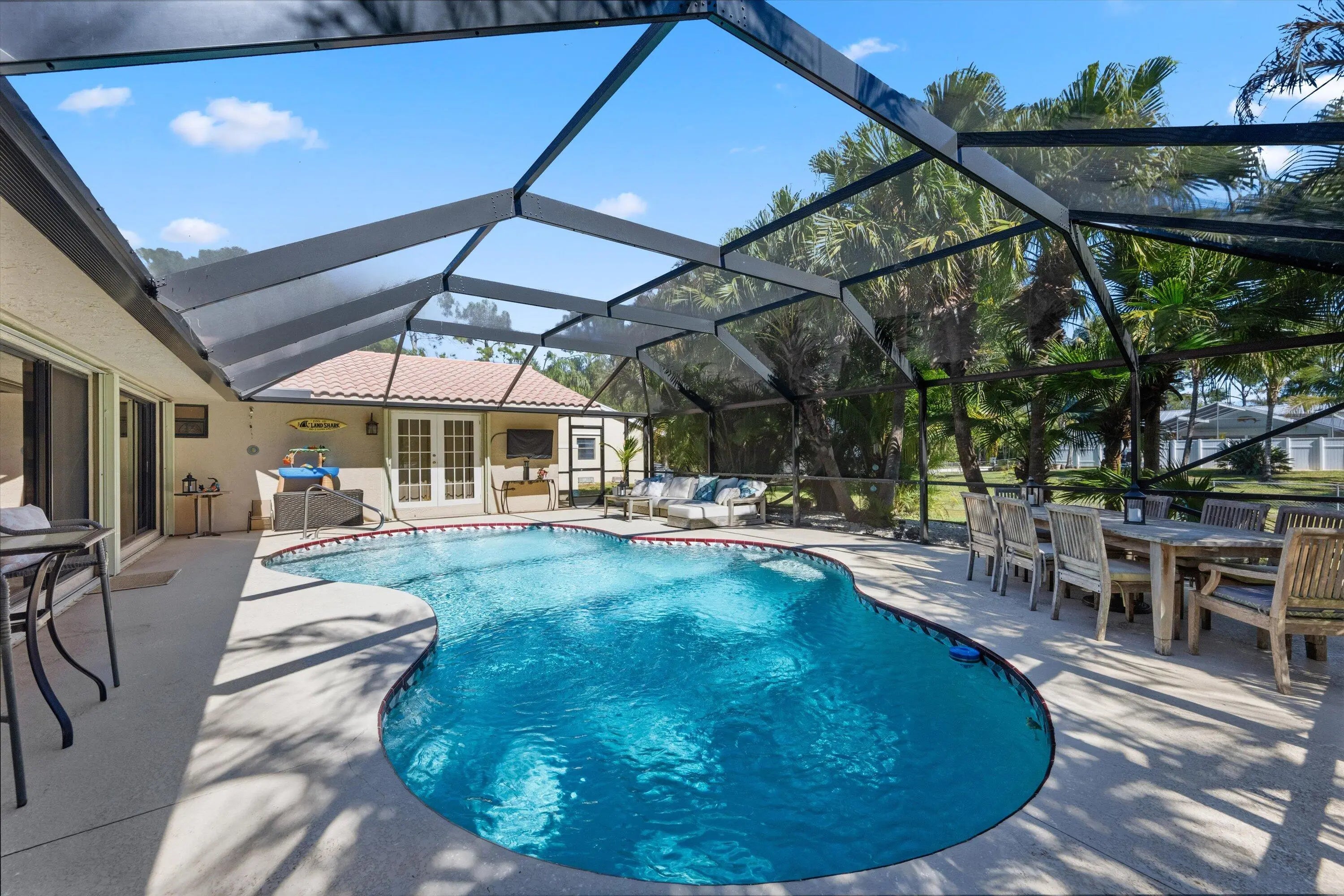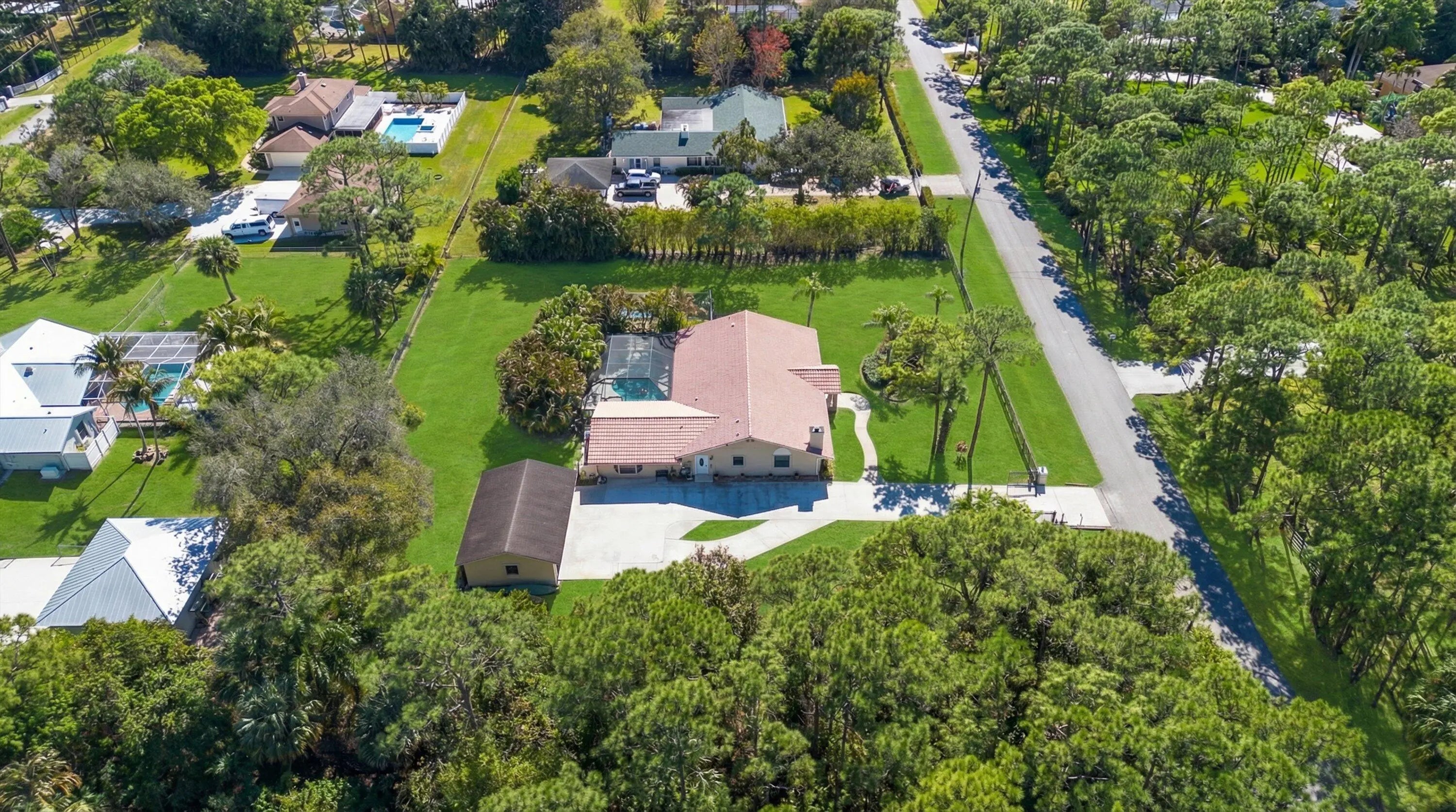 Live the lifestyle you've been dreaming of in this impressive 4-bedroom, 3-bath CBS home on 1.15 acres in prestigious Palm Beach Country Estates. This gorgeous and spacious residence offers the perfect blend of luxury, comfort, and privacy—just minutes from the beach. Boasting 3,091 square feet of living space, this thoughtfully designed home features a desirable split floor plan with a generous primary suite showcasing a huge walk-in closet, a spa-style bathroom with soaking tub, walk-in shower, two sink vanities, and French doors that open directly to the screened-in pool. On the opposite side of the home, three additional bedrooms—including a private en-suite and an additional third bathroom- provide ideal accommodations for guests, family, or multigenerational living. The open-concept kitchen and living area is perfect for entertaining, highlighted by a cozy wood-burning fireplace and an inviting flow into the main living spaces. A spacious game or bonus room features sliding glass doors that lead to the newly screened pool, creating seamless indoor-outdoor living. Elegant Brazilian cherry wood flooring, wood-look tile, and abundant closet space throughout the home add warmth, style, and functionality. Step outside to a large, fully screened pool area that serves as a private retreatideal for relaxing, entertaining, and hosting friends and family year-round. This inviting outdoor space creates the perfect setting for enjoying Florida's indoor-outdoor lifestyle in comfort and privacy. This property is exceptionally well-appointed with a detached three-car garage for toys, tools, and storage, three A/C units, an outdoor shower by the pool, accordion shutters, and a combination of city water inside the home with a private well for irrigation. Additional upgrades include a paved road, a five-year-old drain field, a fully fenced yard with a new electric gate, a freshly painted living room ceiling, newer crown molding, plumbing scoped and jet cleaned, roof recently pressure washed, and a new washing machine and dishwasherproviding peace of mind and move-in-ready convenience. Located in a no-HOA community, this home welcomes boats, RVs, and even farm animals, offering true freedom and flexibility. Palm Beach Country Estates enhances the lifestyle with a beautifully maintained community park featuring a playground, pavilion, pickleball and tennis courts, basketball and racquetball courts, frisbee disc golf, walking trails, and outdoor fitness equipment. The park hosts many community gatherings throughout the year, fostering a welcoming neighborhood atmosphere. Residents also enjoy horse trails throughout the community and private access to Riverbend Park for outdoor recreation and adventure. Families will appreciate top A-rated schools, while everyone will enjoy the convenient location just minutes from downtown Abacoa, Alton Town Center, the new hospital scheduled for completion in 2026, and less than 15 minutes to the pristine beaches of Juno and Jupiter. This exceptional property delivers space, privacy, and an unbeatable lifestyle in one of the area's most desirable communities. Don't miss your opportunity to call this incredible home your own.