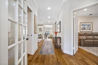 Welcome to this beautifully updated Ironwood Patio Home, where style, comfort, and functionality come together effortlessly. This CBS-built home offers 3 bedrooms and 2.5 bathrooms, thoughtfully designed for modern living. The light-filled interior features beautiful engineered hardwood flooring throughout the main living areas and an inviting open layout. The crisp white kitchen is a true centerpiece, complete with stainless steel appliances, a stylish accent bar with wine fridge, and plenty of space for entertaining. Just off the main living area, you'll find a dedicated office or library, perfect for working from home or a quiet retreat. The spacious primary suite includes a well-appointed bathroom with dual sinks and a walk-in shower. Step outside to enjoy Florida living at its best with a screened-in porch plus open patio space, all overlooking a fully fenced private backyard - ideal for pets or relaxing outdoors. Additional highlights include abundant natural light, a 2-car garage with epoxy flooring, and the added peace of mind of a new 2025 AC unit. This home is truly move-in ready and perfect for both seasonal residents and full-time living! Mariner Sands Country Club offers 2 championship golf courses, tennis, pickleball, croquet, a world-class fitness center, resort-style pool, restaurant, and a new $35 million clubhouse.
