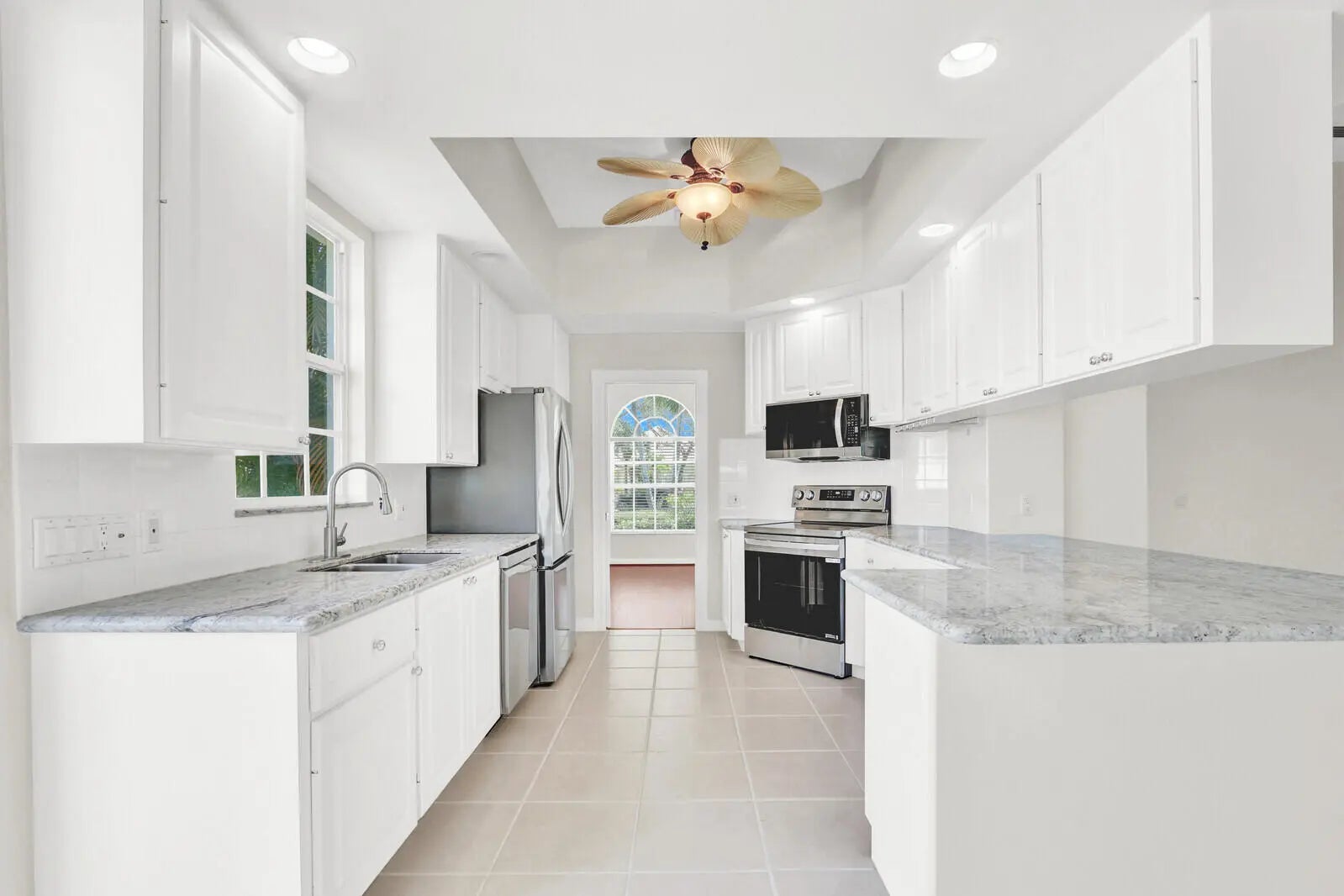 Light, bright and ready to be re-imagined! This immaculate and freshly painted home is situated on one of the larger lots in Carleton Oaks. 3 Generously sized Bedrooms and a Den with beautiful wood engineered floors. The spacious and functional Kitchen features beautiful white tone granite counters and nearly new Stainless LG appliances in Kitchen, including french door fridge. neutral white tile in main living areas. Ample room for a Pool and extended patio! Screened in Patio. Wonderful Family friendly neighborhood of Carleton Oaks is just down the street from soon to be new Publix, shops and Dining at Avenir! Great Community amenities including Sports Courts (pickle and Tennis) and Pool overlooking huge lake, all with a low HOA! Don's miss this incredible value!