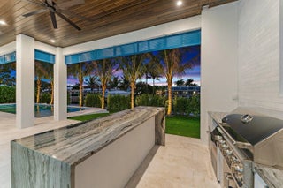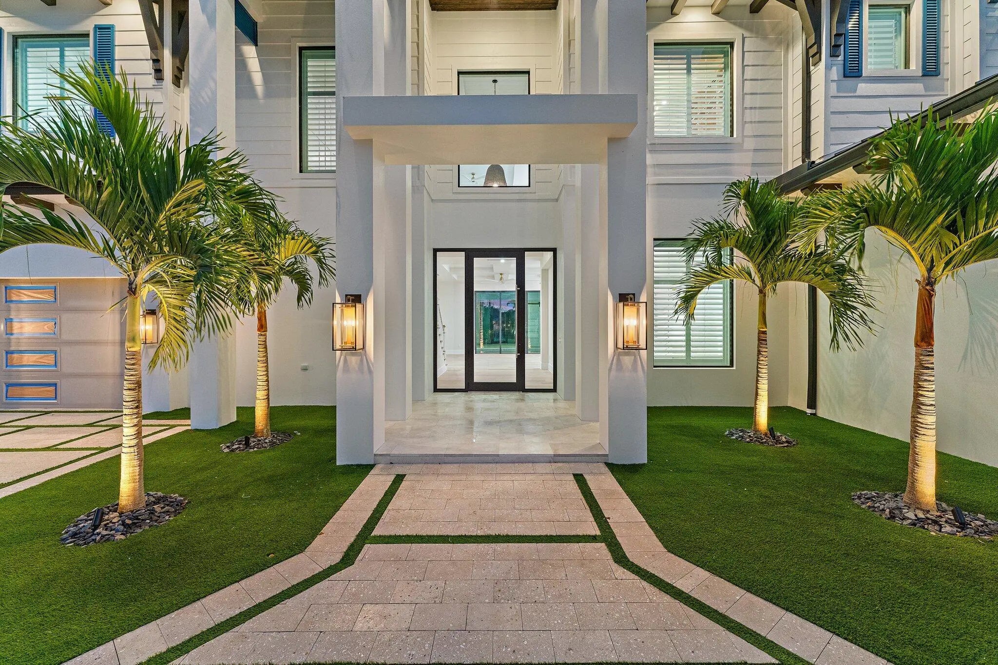 Newly completed in February of 2026, this waterfront estate home has it all. The main floor boasts a custom built-in aquarium in the great room; chef's kitchen with Sub-Zero and Wolf appliances and two islands, plus prep. Kitchen; home theatre room; three car garage (one bay is turned into a fitness center); powder room; and first floor guest suite. Wide plank oak floors throughout the main core of the home provide warmth and charm. The 2nd floor features an elevator; primary suite with two closets and huge primary bath; loft area with bar; two guest suites; and a large, covered balcony. The outdoor spaces feature custom pool with spa and water features; summer kitchen with BBQ; artificial turf back yard, and new dock with boat lift. All constructed with the finest materials and craftsmanship. Located just steps from the Tequesta Country Club, this deep-water estate home truly exceeds the expectations of the most discerning buyers.