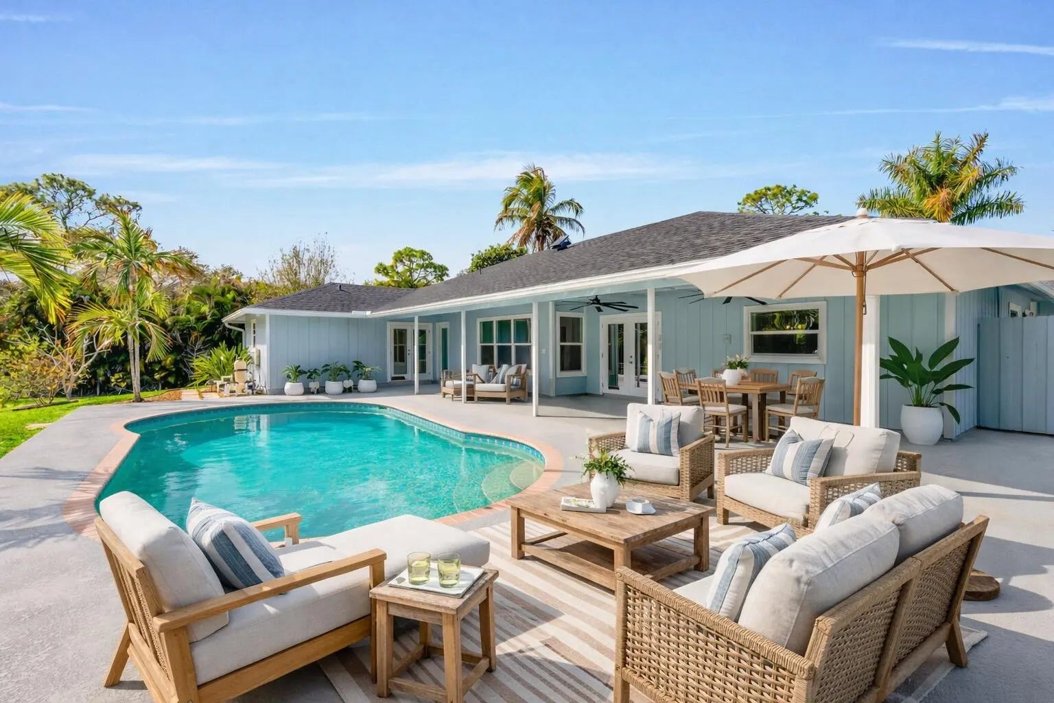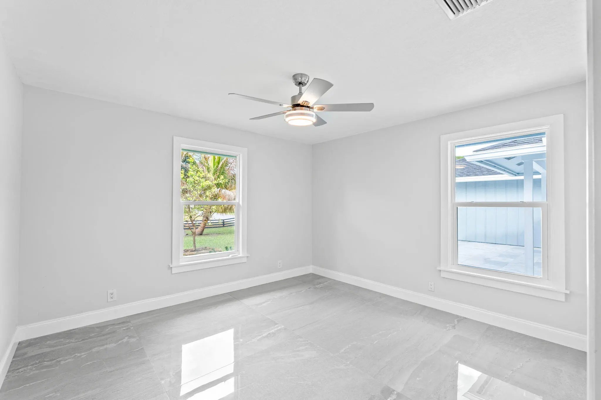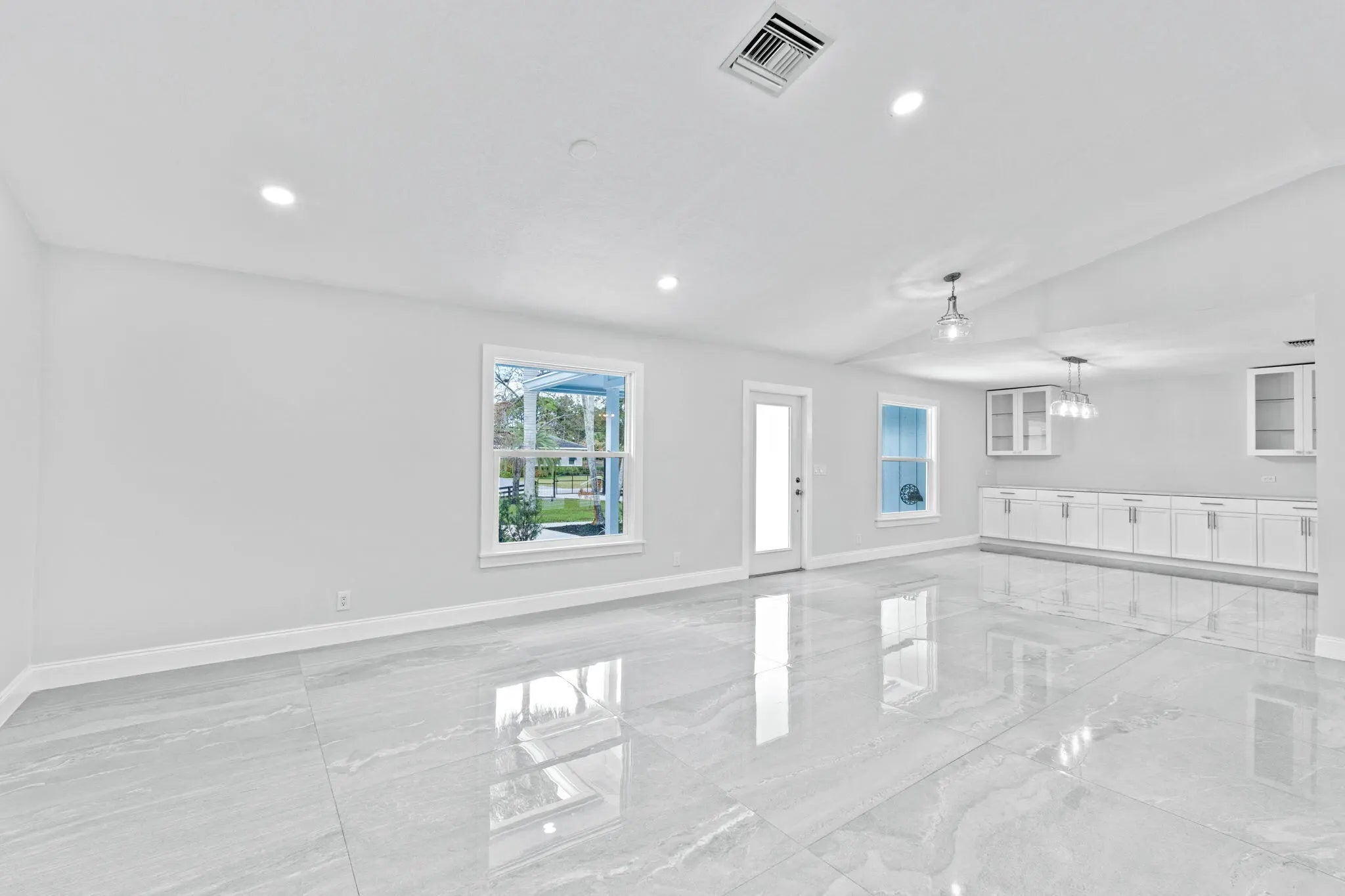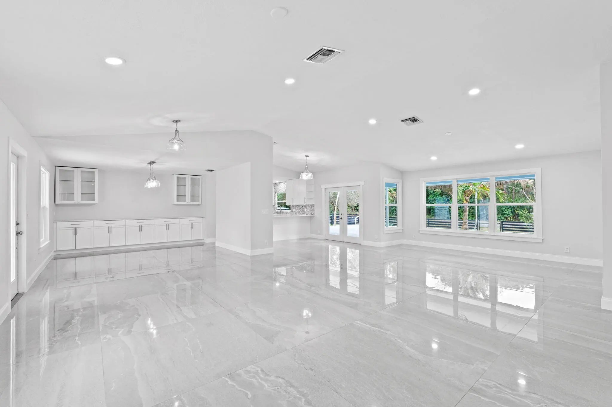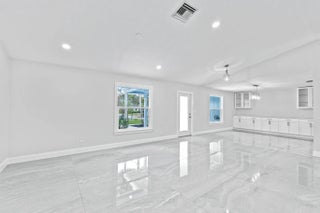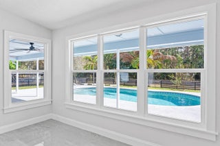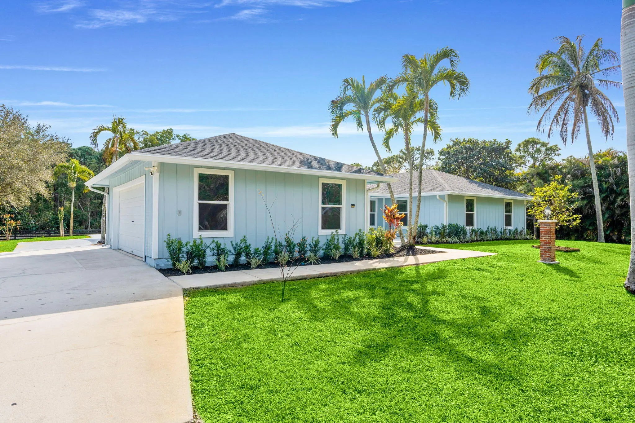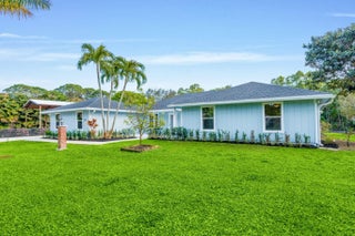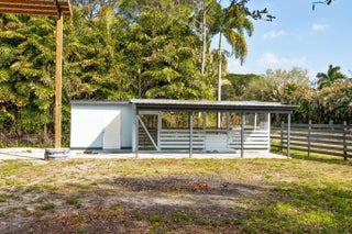 Welcome to this exceptional residence in a prime location within the highly desirable front quadrant of Palm Beach Country Estates--where space, privacy, and modern luxury come together seamlessly. Fully renovated and set on a spacious 1.16-acre lot, fully fenced with an electric gate, and no HOA, this 4-bedroom, 2.5-bath home featuring a pool offer an unbeatable lifestyle. Major improvements provide peace of mind, including a 2025 roof, two A/C systems (2025 & 2022) with new ductwork, full impact windows, new impact doors, and an epoxy-finished garage floor with a brand-new automatic door opener. Inside, the open-concept layout feels both elevated and inviting. Imported 4x4 Spanish porcelain tile flows throughout, complemented by new designer lighting. The kitchen is a true centerpiece, featuring solid wood 42" cabinetry, quartz countertops, under-cabinet lighting, and newer appliances--all designed to blend function with refined style. Bedrooms are spacious with plenty of storage, while all three bathrooms have been beautifully remodeled with sleek, modern finishes. Step outside to your own private retreat. The pool and covered patio are set with a tree-lined, waterfront view to relax and entertain. A standout feature of the property is the impressive 30x60 pole barn (2023) with 50-amp service and fresh water hook-up--ideal for RVs, fifth wheels, boat storage, workshop space, or EV charging. Ideally positioned near the front of the community on paved roads, this home provides convenient access to shopping, dining, beaches, and top-rated schools--while still preserving the privacy and acreage lifestyle Palm Beach Country Estates is known for. This is more than a home--it's a fully upgraded, move-in-ready retreat designed for elevated Florida living.