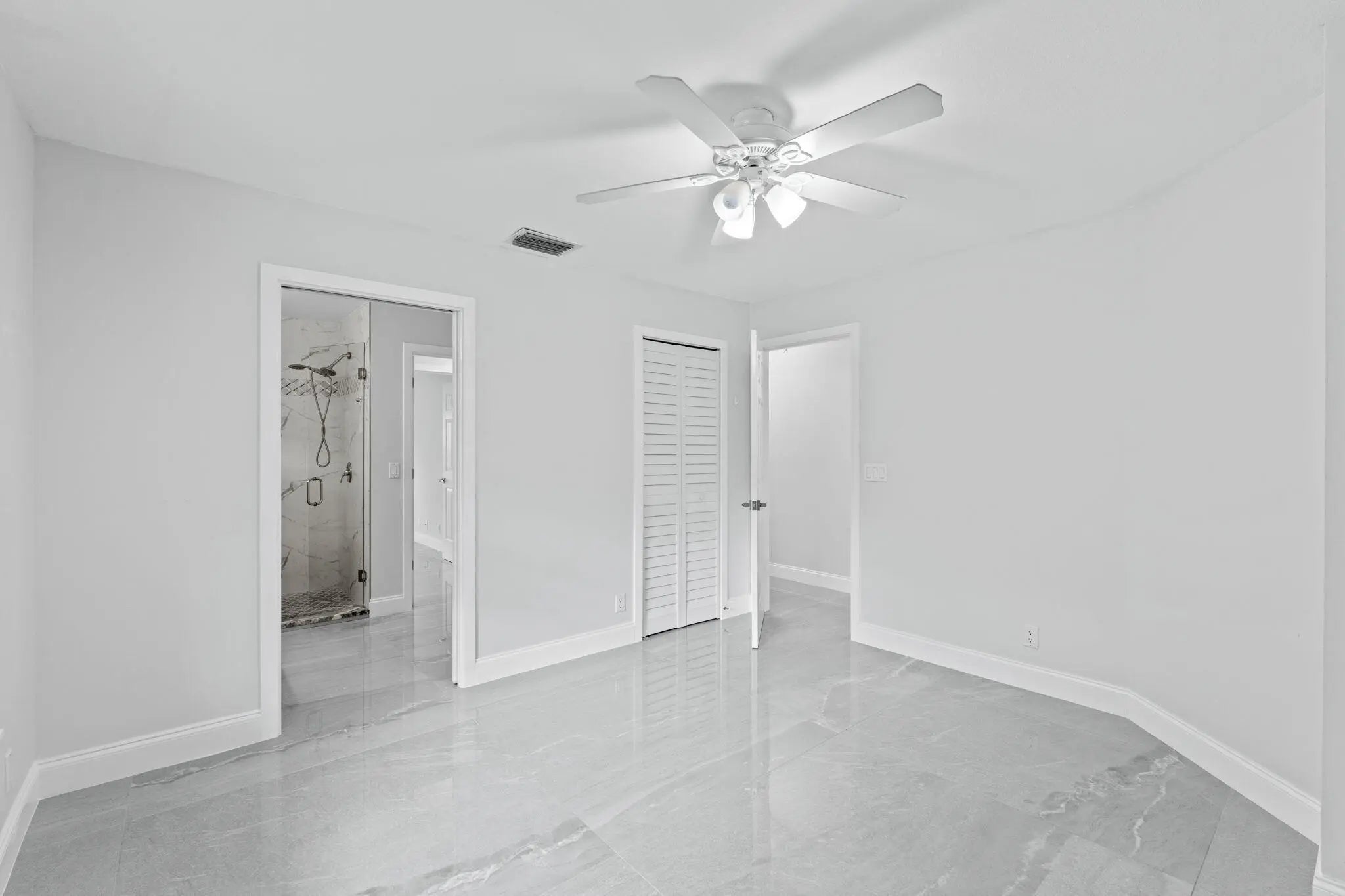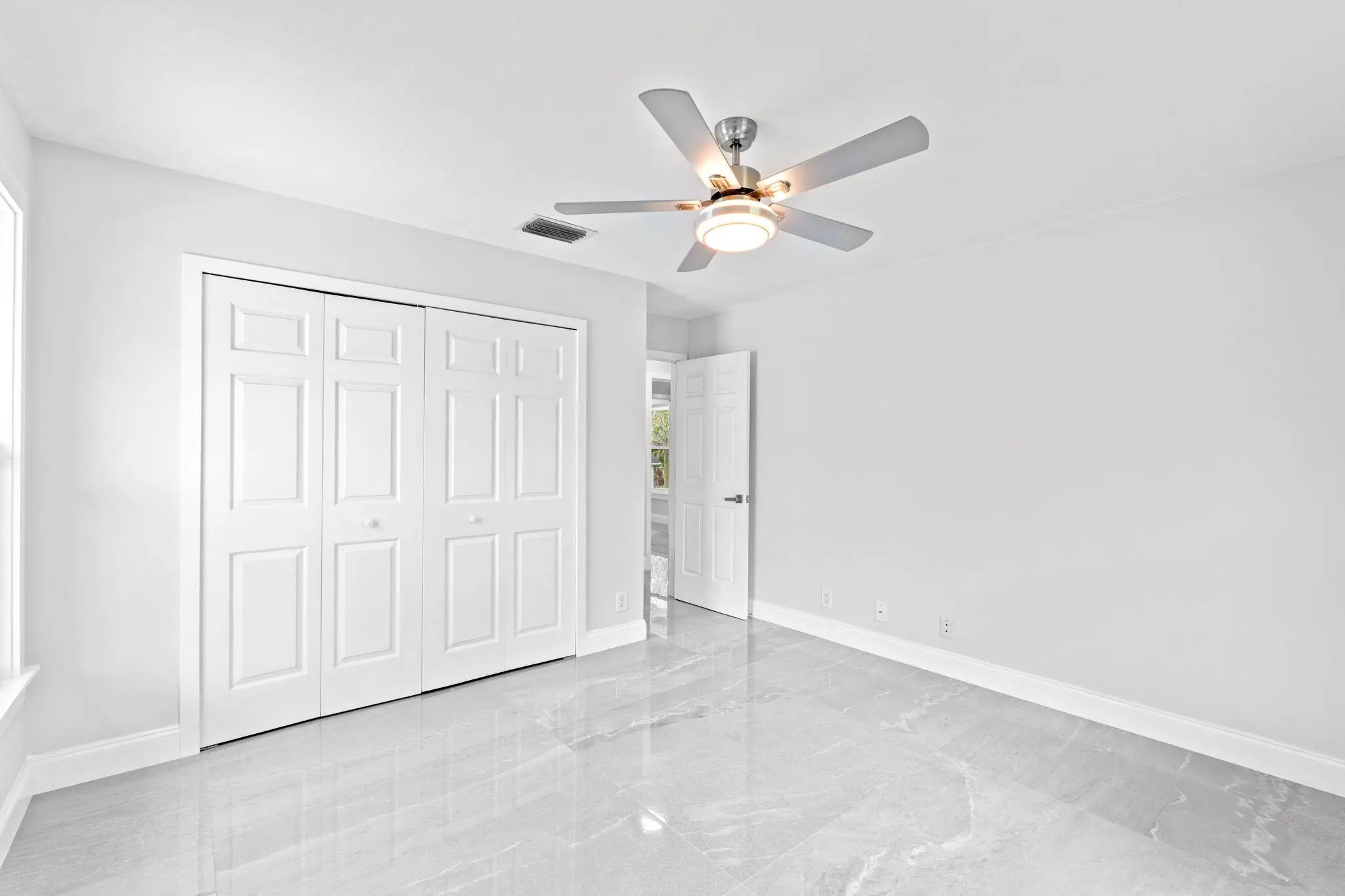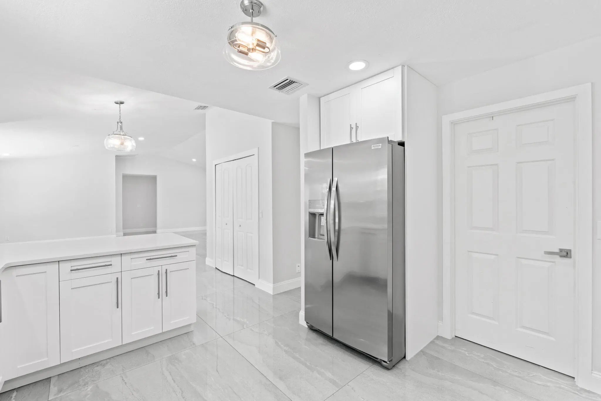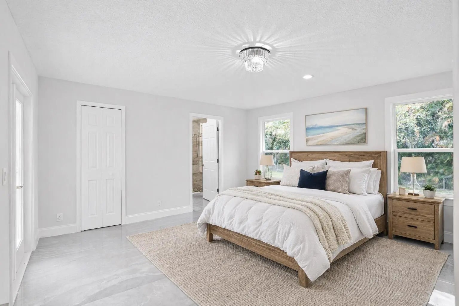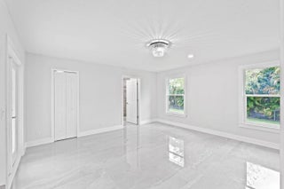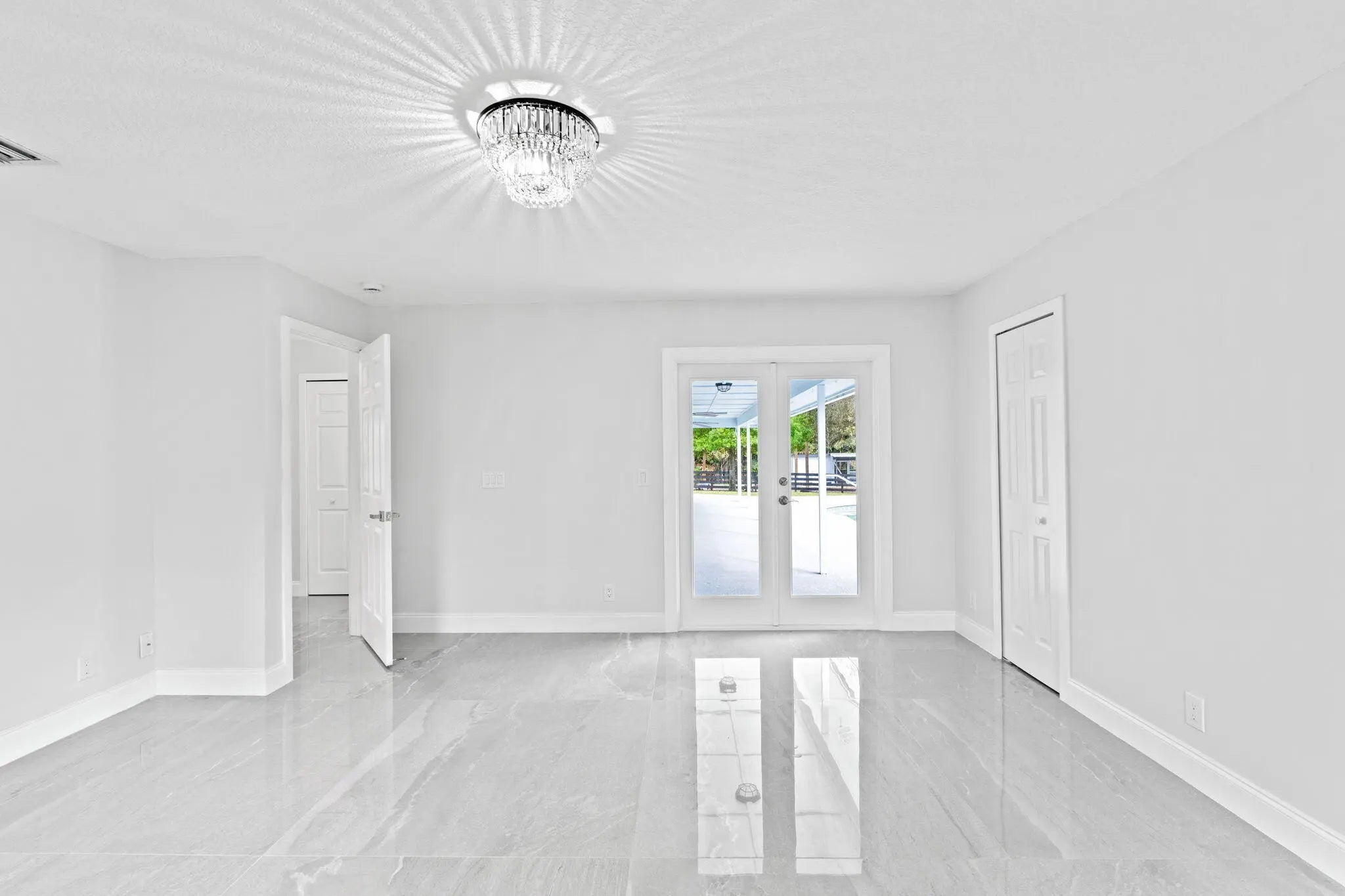 Welcome to this exceptional residence in a prime location within the highly desirable front quadrant of Palm Beach Country Estates--where space, privacy, and modern luxury come together seamlessly. Fully renovated and set on a spacious 1.16-acre lot, fully fenced with an electric gate, and no HOA, this 4-bedroom, 2.5-bath home featuring a pool offer an unbeatable lifestyle. Major improvements provide peace of mind, including a 2025 roof, two A/C systems (2025 & 2022) with new ductwork, full impact windows, new impact doors, and an epoxy-finished garage floor with a brand-new automatic door opener. Inside, the open-concept layout feels both elevated and inviting. Imported 4x4 Spanish porcelain tile flows throughout, complemented by new designer lighting. The kitchen is a true centerpiece, featuring solid wood 42" cabinetry, quartz countertops, under-cabinet lighting, and newer appliances--all designed to blend function with refined style. Bedrooms are spacious with plenty of storage, while all three bathrooms have been beautifully remodeled with sleek, modern finishes. Step outside to your own private retreat. The pool and covered patio are set with a tree-lined, waterfront view to relax and entertain. A standout feature of the property is the impressive 30x60 pole barn (2023) with 50-amp service and fresh water hook-up--ideal for RVs, fifth wheels, boat storage, workshop space, or EV charging. Ideally positioned near the front of the community on paved roads, this home provides convenient access to shopping, dining, beaches, and top-rated schools--while still preserving the privacy and acreage lifestyle Palm Beach Country Estates is known for. This is more than a home--it's a fully upgraded, move-in-ready retreat designed for elevated Florida living.