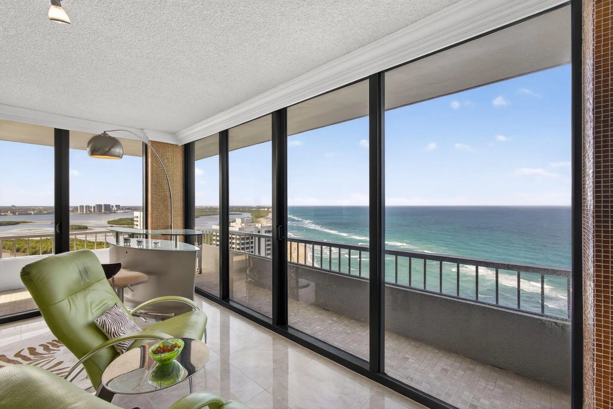 Some of the most extraordinary views on Singer Island -- soaring above neighboring buildings with sweeping panoramas to the north, east, and west, capturing both the Atlantic Ocean and the Intracoastal Waterway. Perfectly positioned beside John D. MacArthur Beach State Park, this residence offers a rare combination of natural beauty and coastal living, with expansive beaches just steps away -- an ideal setting for those who appreciate breathtaking views and effortless days by the water. Water Glades Condominium is an exceptional oceanfront community offering resort-style amenities including a swimming pool, heated beachside pools, a newly renovated clubhouse, state-of-the-art fitness center, four tennis courts, BBQ area, and beautifully maintained grounds.