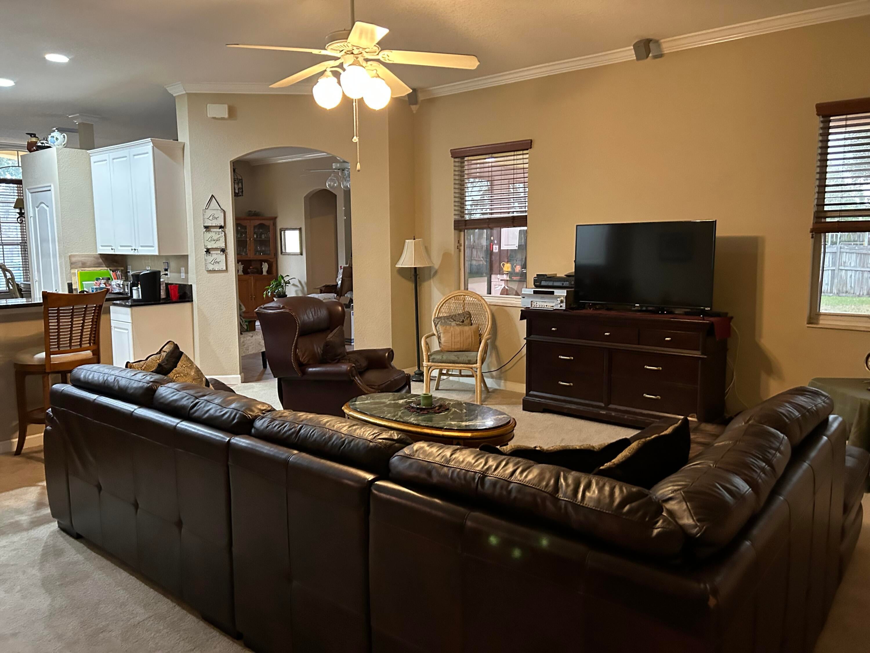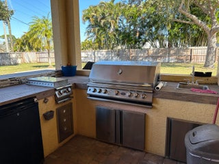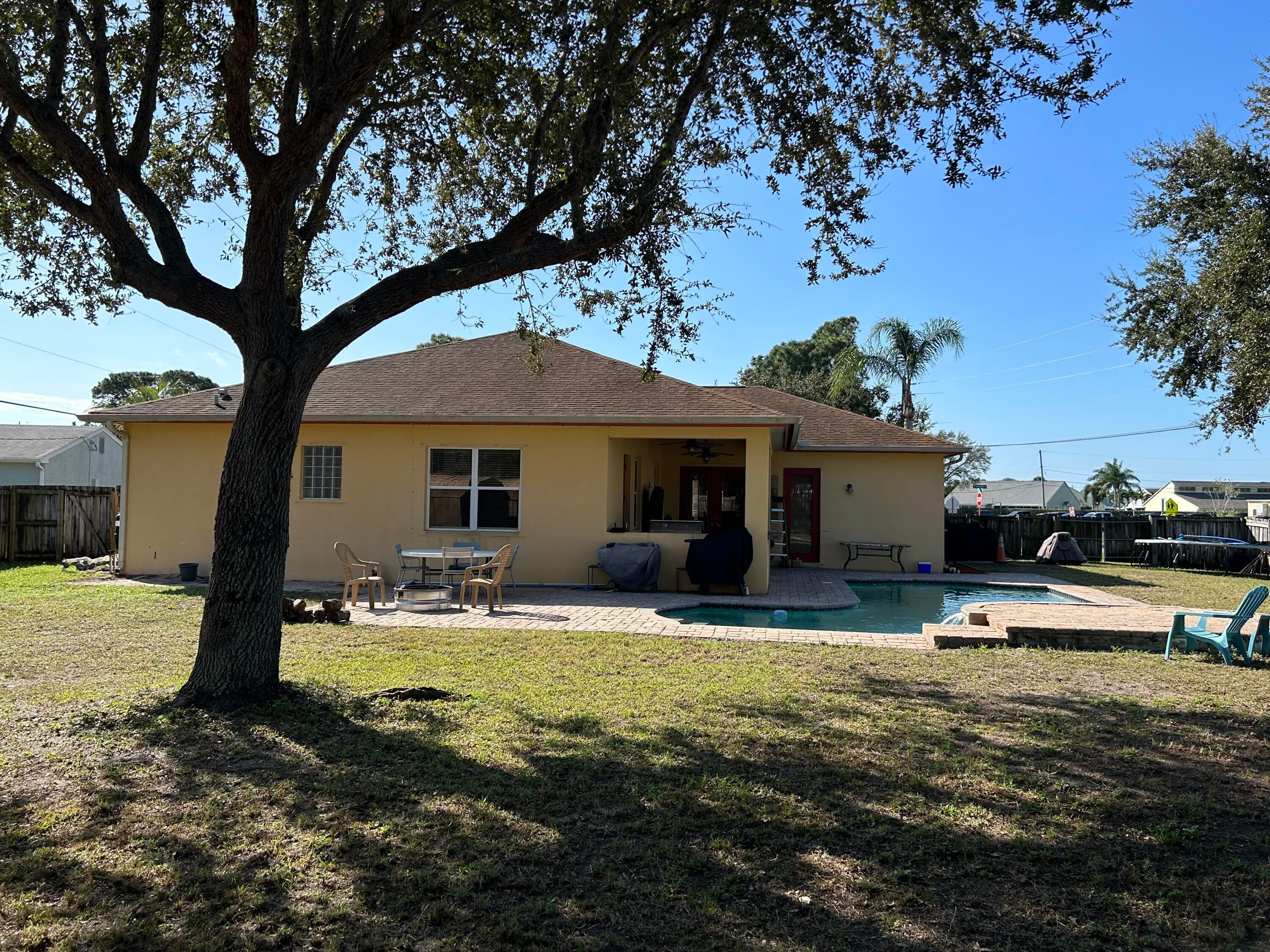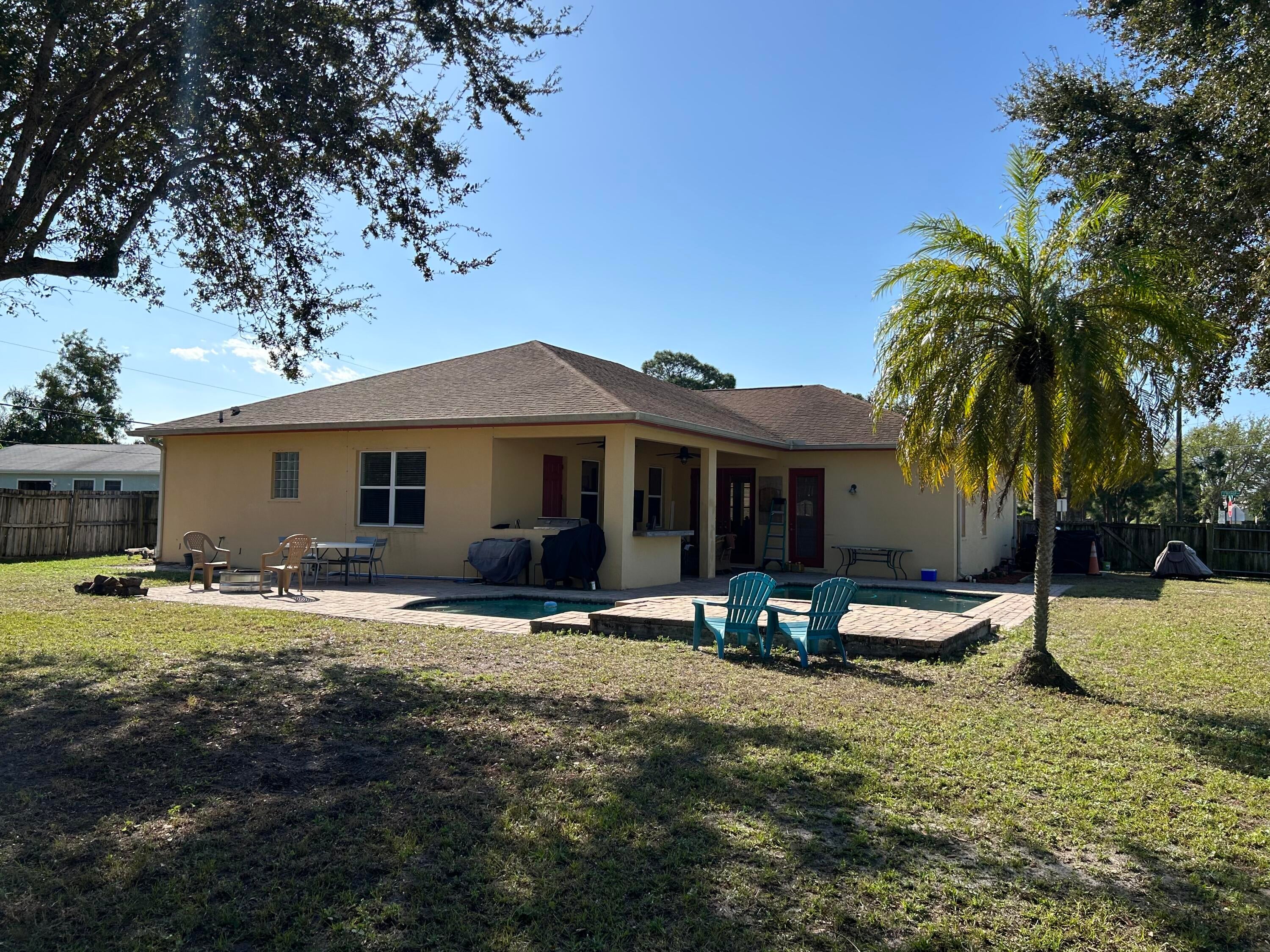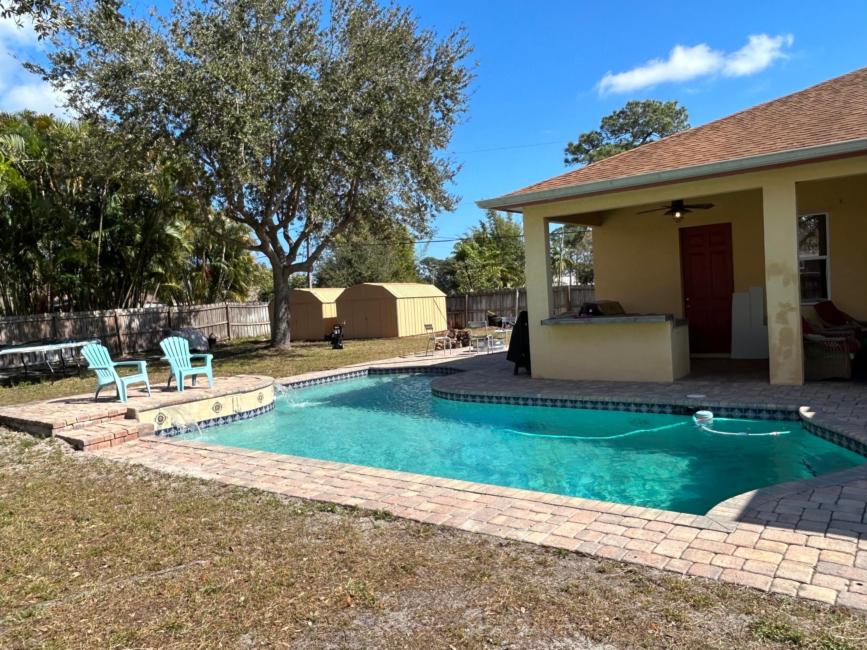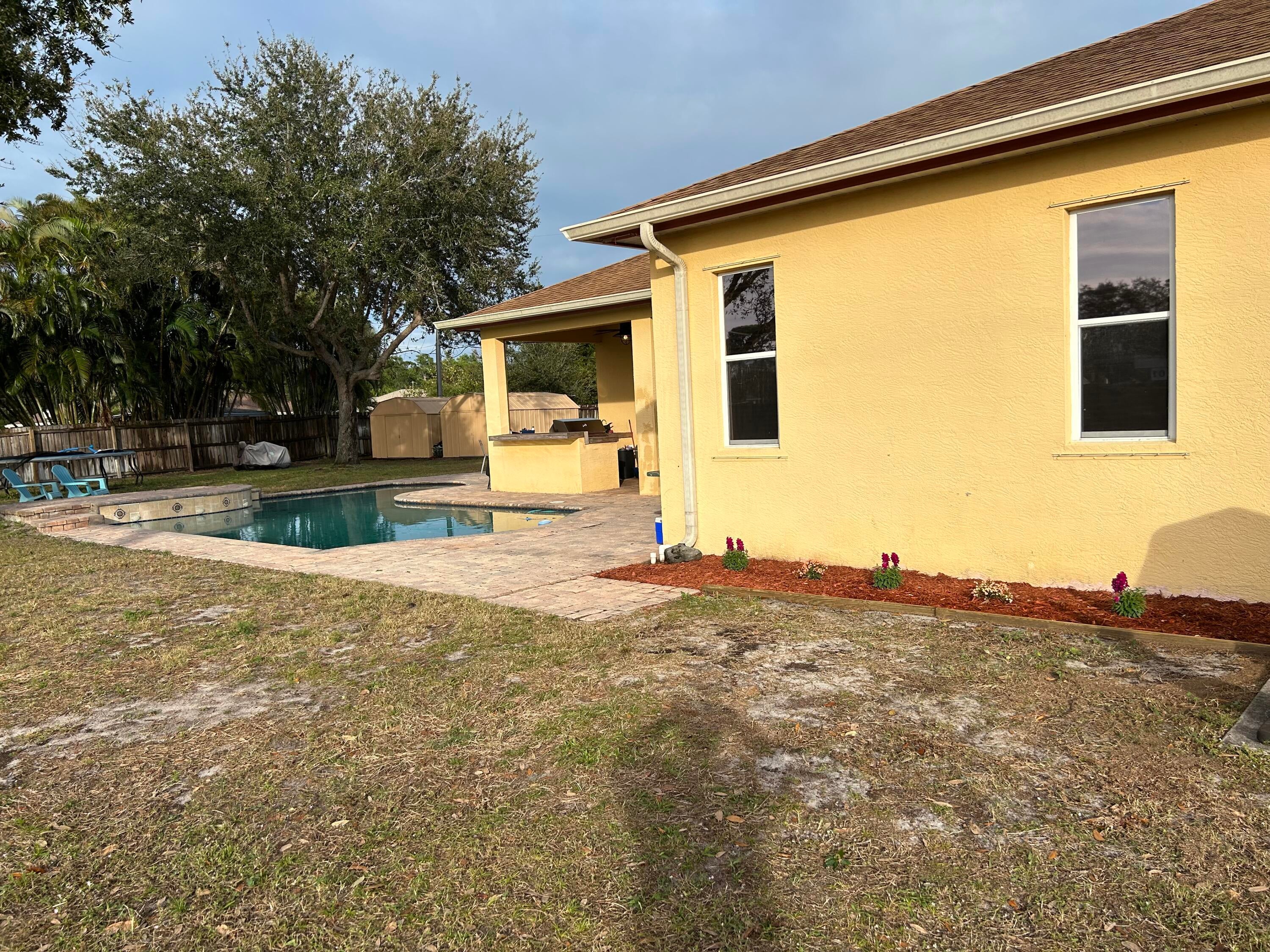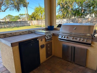 MUST SEE TO APPRECIATE!!! 2025 ROOF!!! Charming 5 bedroom, 3 bath pool home with a fenced in yard, loaded with upgrades on a nearly half acre lot. Granite Countertops, 42-inch cabinets, crown molding, large outdoor pool patio with built in outdoor grill, summer kitchen and much, much more. Conveniently located close to shopping, restaurants, beaches and medical facilities. Large master suite features dual walk-in closets, separated dual vanities, and jacuzzi tub. Garage has been converted into an extra bedroom, which would be converted back at the buyer's request. NEW Water Heater 2024! Home security system and irrigation well fed sprinkler system are in place, but have not been used recently