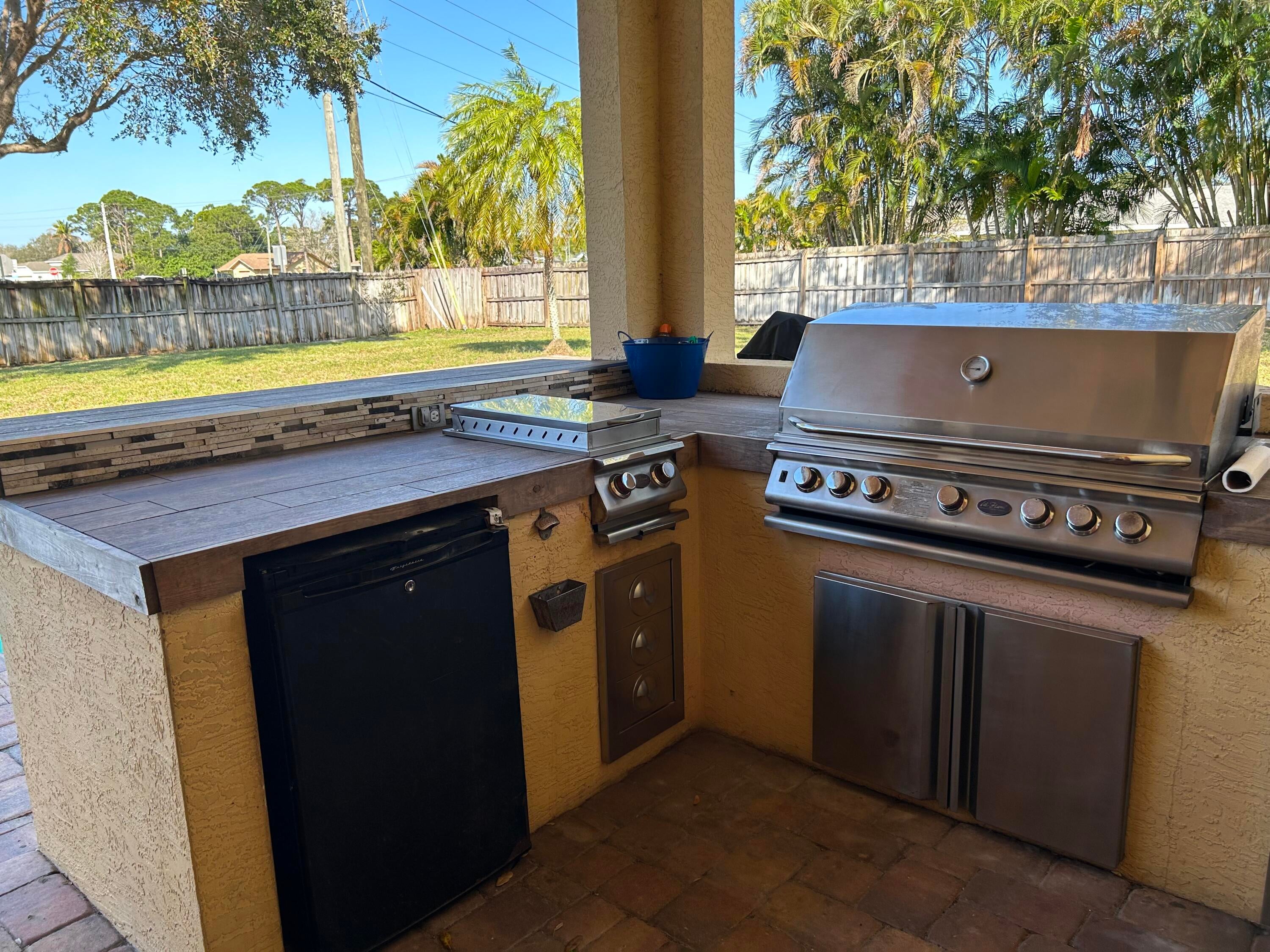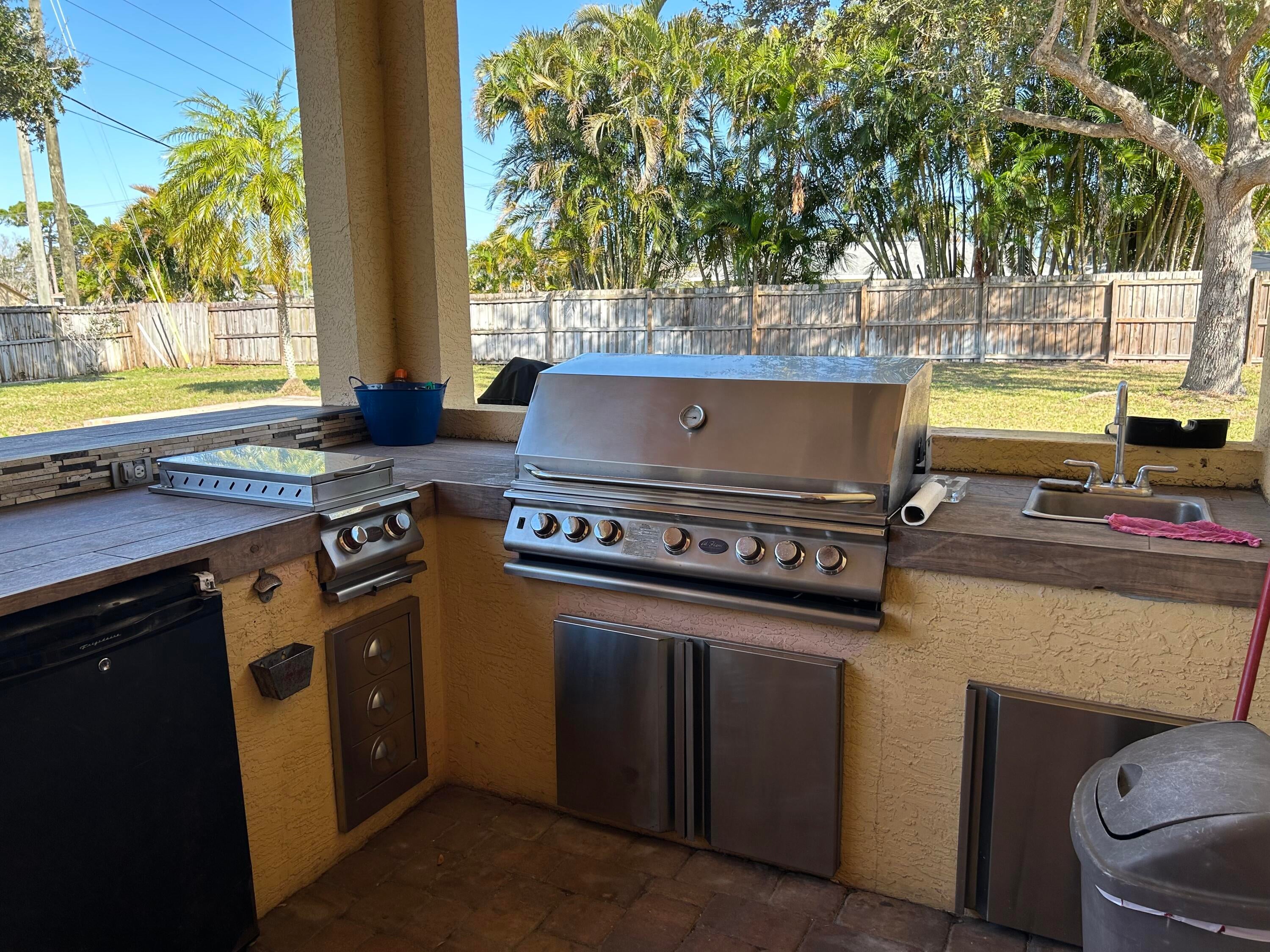 Fence, Built-in Grill, Shed, Covered Patio, Open Patio, Deck, Well Sprinkler, Summer Kitchen