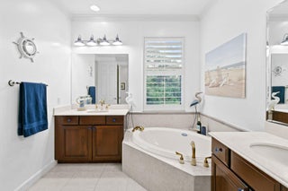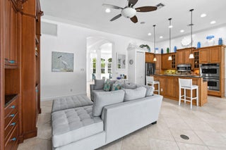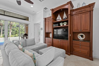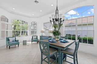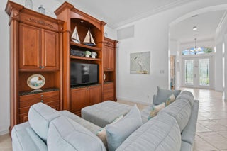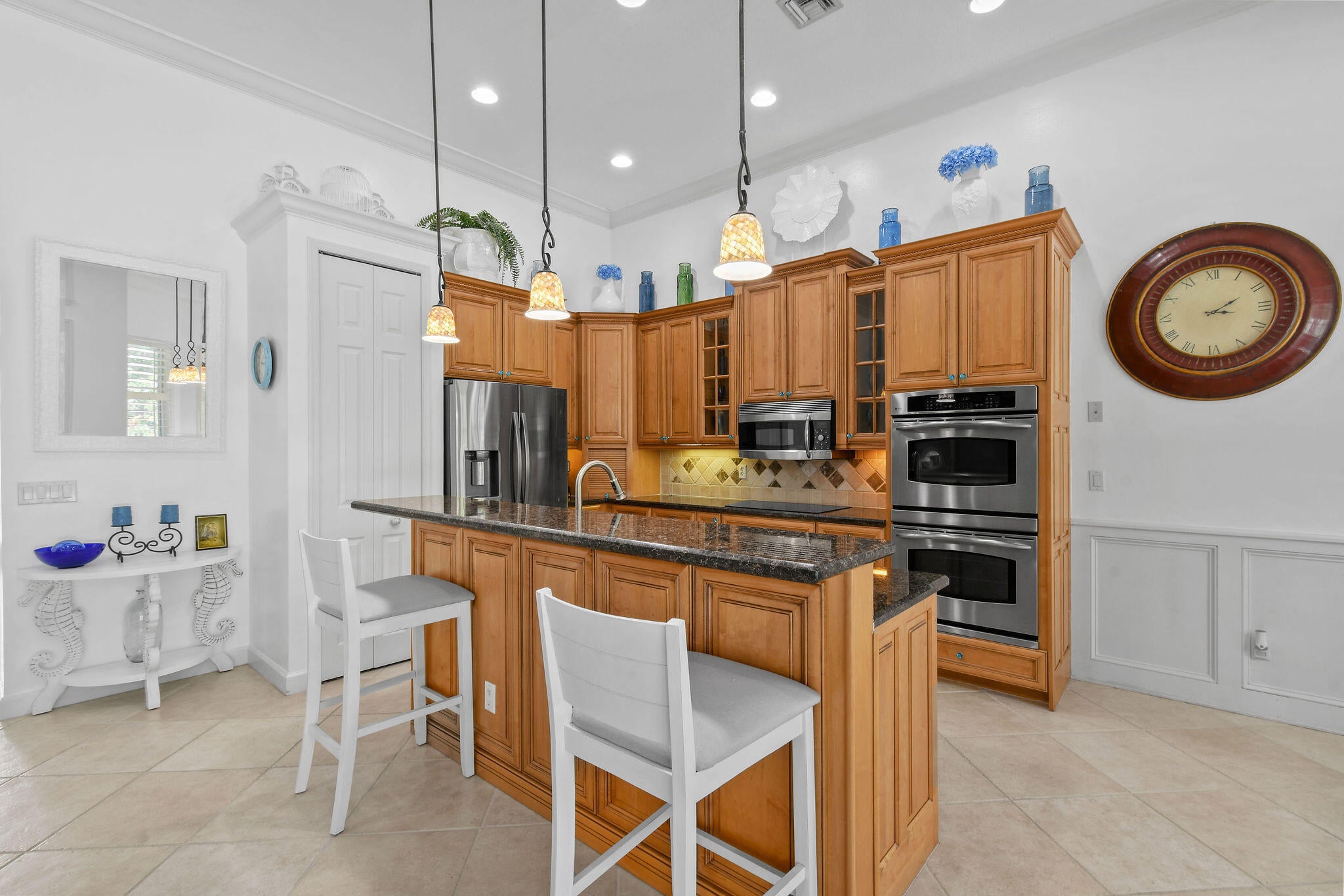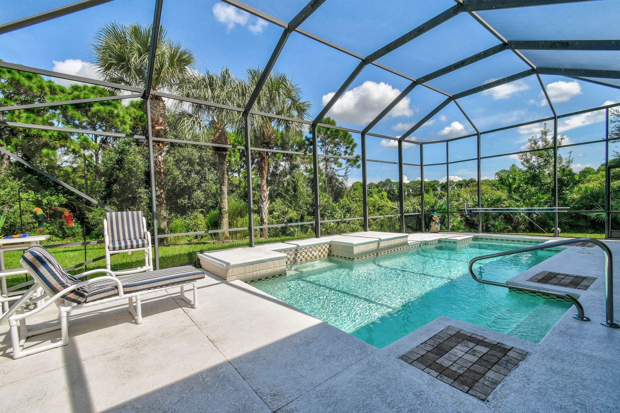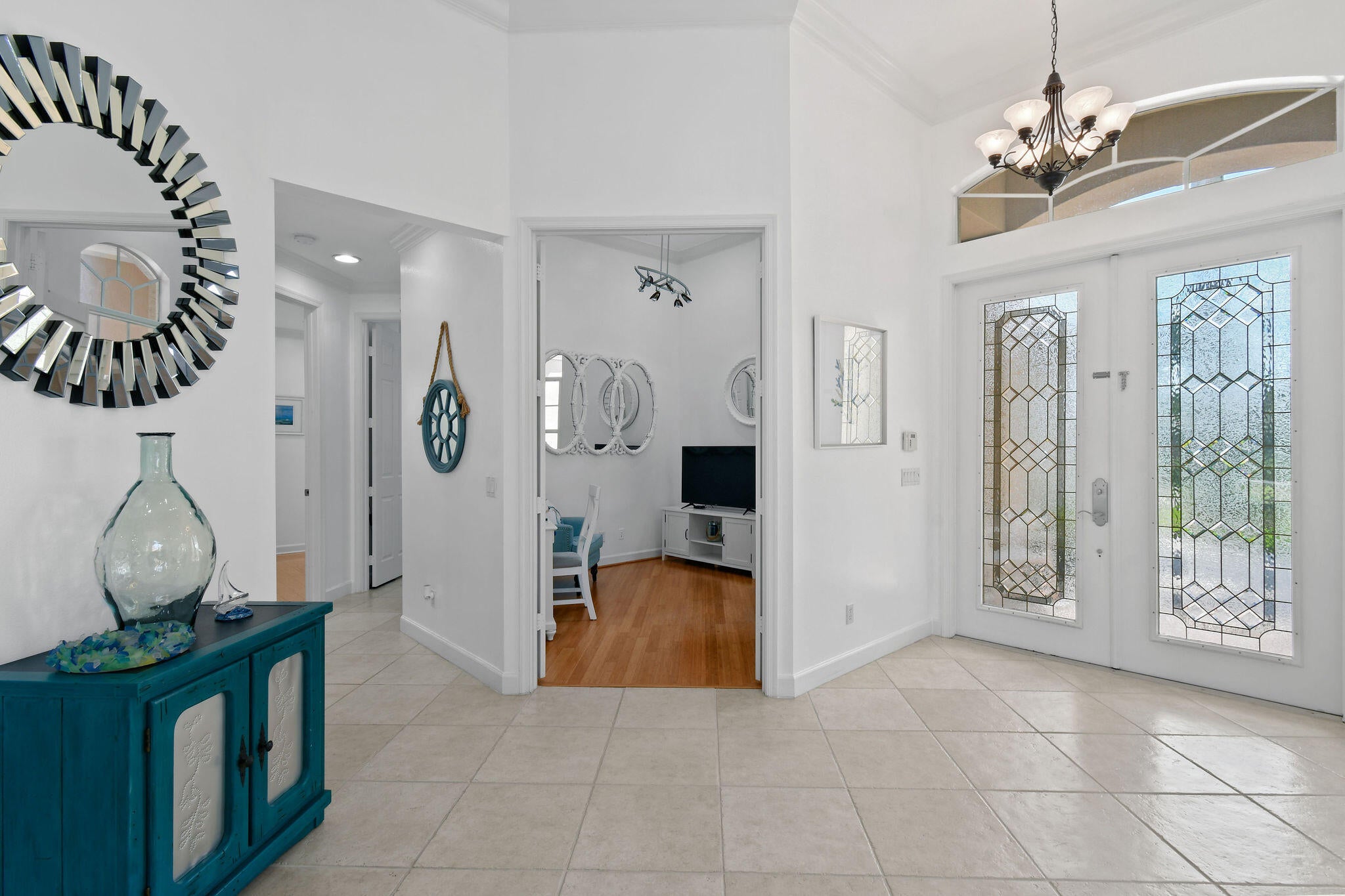 CLUBSIDE AT PGA VILLAGE - 2BR w/ Den that can easily be converted to a 3BR/2.5BA, 2-car garage, private pool home, former model, conveniently located near entrance for quickly entering and exiting gated community. Features include: private setting w/ lush landscaping and only 1 abutting neighbor, interior completely repainted including garage, pond view from front windows, crown moldings, larger baseboards, volume and textured ceilings, screened patio with outdoor kitchen/grilling area, plantation shutter, built-in entertainment center, stainless steel appliances, including double wall ovens, no city taxes and so much more. Island Club amenities are: clubhouse, community pool, exercise room, tennis, pickleball and play area. Golf and tennis memberships available to purchase.Conveniently located, near I-95, close to heath care facilities, schools, restaurants and shopping. All sizes, taxes, descriptions and HOA are approximate.