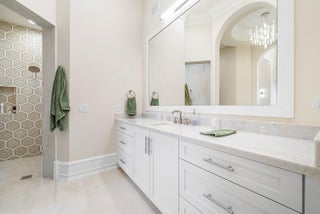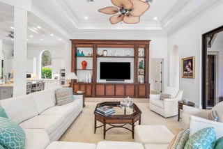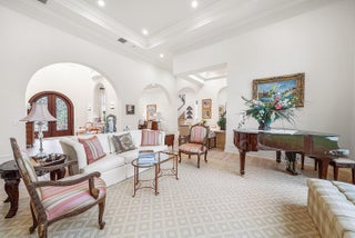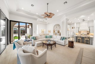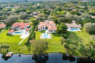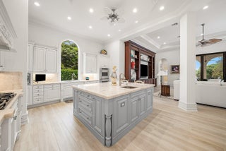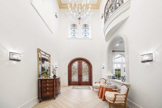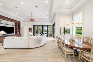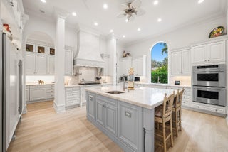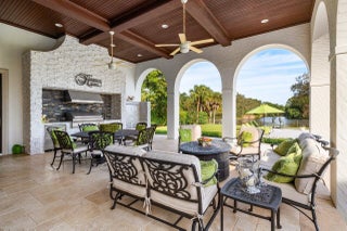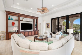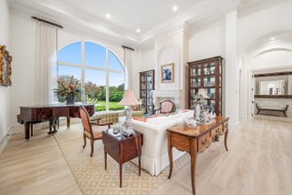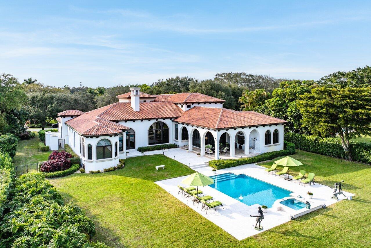 Discover exceptional luxury and stunning water views from this 7,200 sq. ft. Sabatello Signature estate, set on a full acre in the highly sought-after Steeplechase community. Thoughtfully designed and beautifully finished, the home offers 5 bedrooms, 6.5 baths, a refined library/office, a generous media or bonus room, a second-floor loft with sitting and study areas, and a four-car air conditioned garage.From the moment you enter, the grand foyer--with its intricate ironwork and soaring ceilings--sets the tone for the craftsmanship found throughout. Custom millwork enhances every space, while the first floor features brand-new porcelain tile, an office, a bonus room, and the primary suite.The primary suite is a true private retreat, complete with a spacious sitting area framedby arched windows that capture serene lake views. Two newly updated primary en-suite bathrooms featuring sleek glass showers, a soaking tub with a picturesque window view, new vanities, and updated flooring. The suite also includes an exercise or hobby area with a juice bar and two large custom walk-in closets. The gourmet kitchen, upgraded in 2022, is a chef's dream, boasting rich wood cabinetry, granite countertops, expansive center island and top-of-the-line appliances including Sub-Zero, Thermador, Bosch, and Dacor. Offering Florida indoor/outdoor living, steps away see the wall of sliders spanning the rear of the home to allow effortless entertaining in the expansive covered loggia with a summer kitchen, gas BBQ, and Sub-Zero fridge, all overlooking the stunning pool, spa, and cascading water features enhancing the serene experience. New pool, summer kitchen, waterfall and patio in 2022. With lush landscaping, a circular brick-paved driveway with a tiered fountain, and stunning wide water views, this estate offers the perfect blend of elegance, privacy, and convenience. Complete impact windows throughout, including front and garage doors, whole house generator, air conditioned garages, Four-zone A/C and modern automation systems complete this exceptional property. A true masterpiece in one of Palm Beach Gardens' most sought-after communities! Schedule your private showing and experience this extraordinary home for yourself.