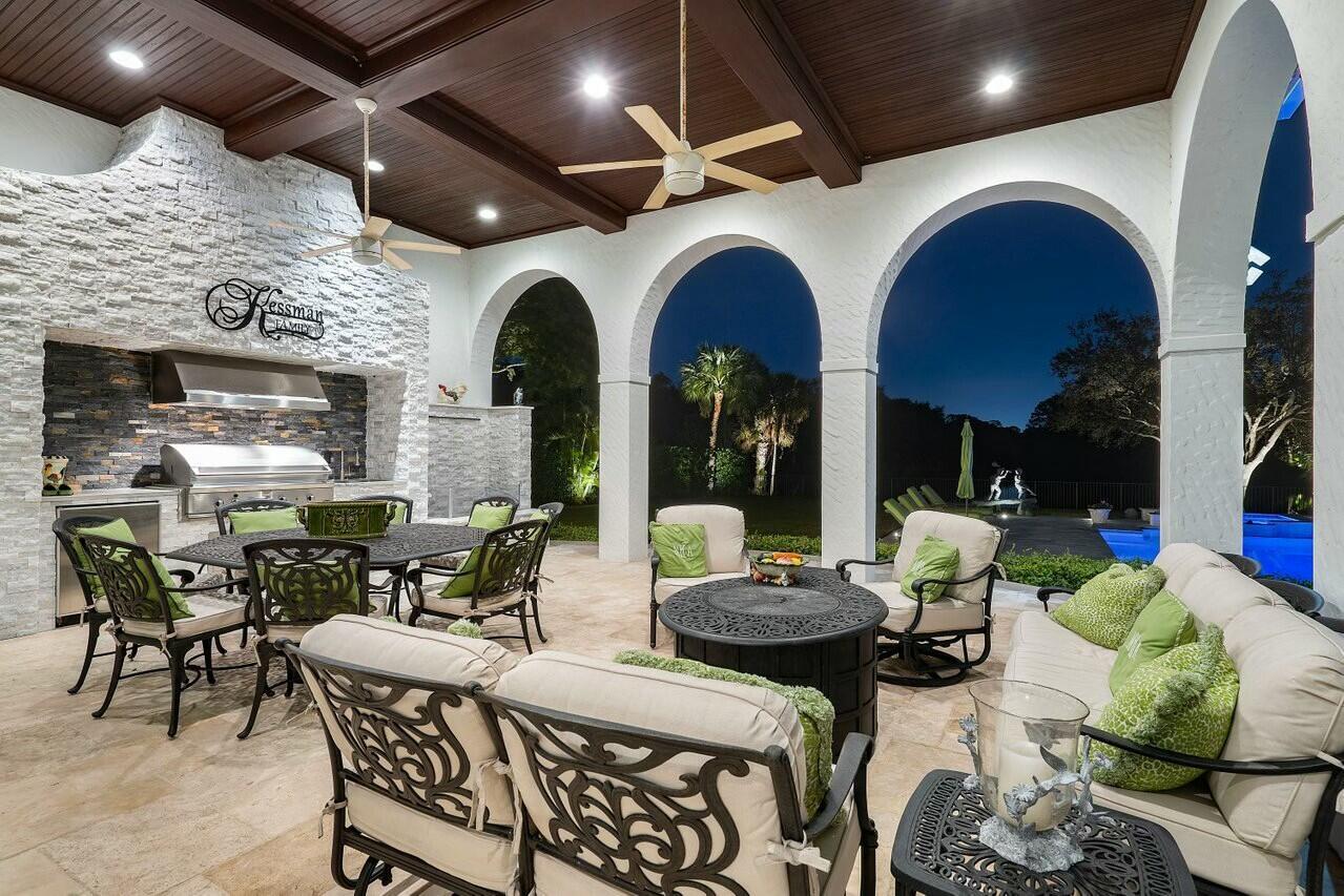 Covered Patio, Built-in Grill, Fence, Open Patio, Auto Sprinkler, Custom Lighting, Summer Kitchen