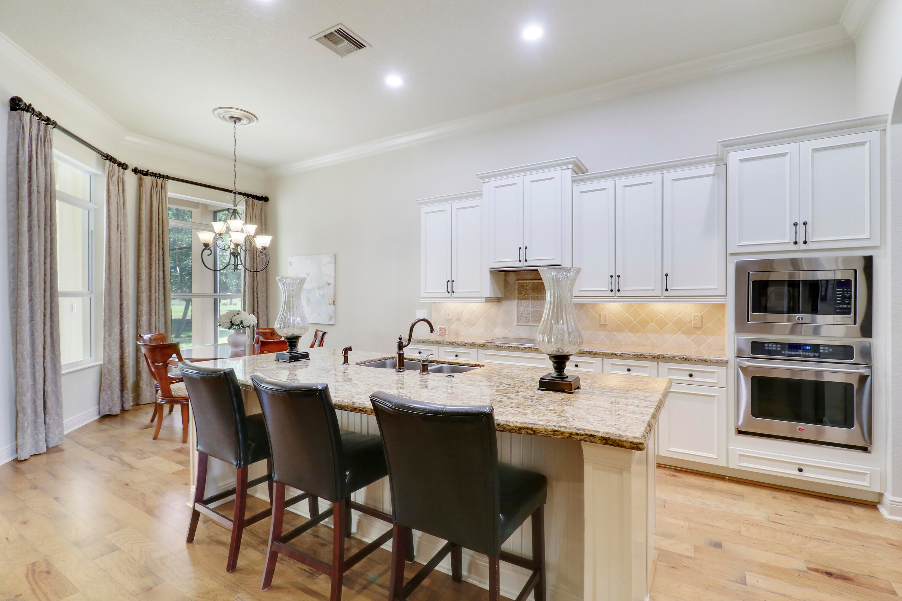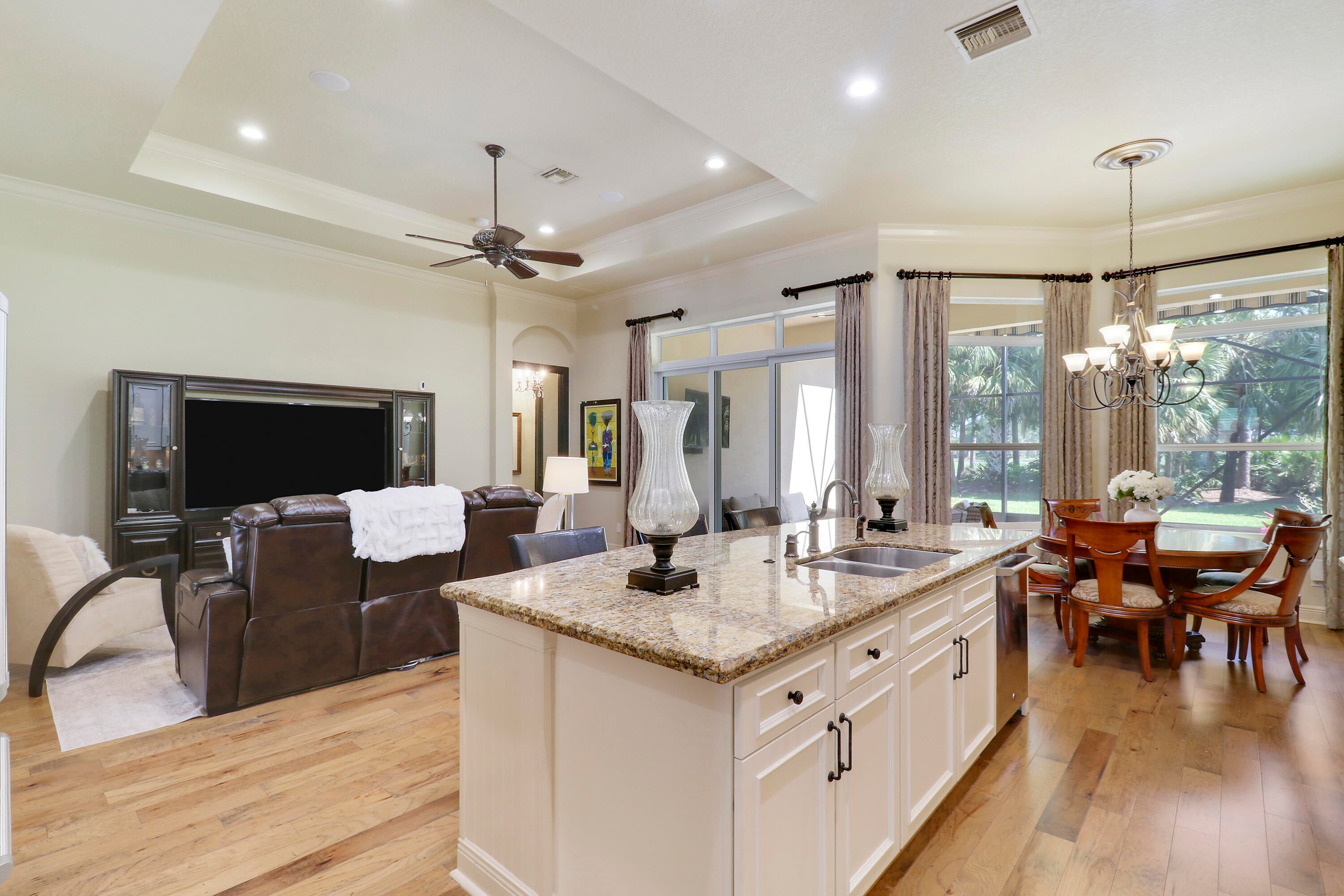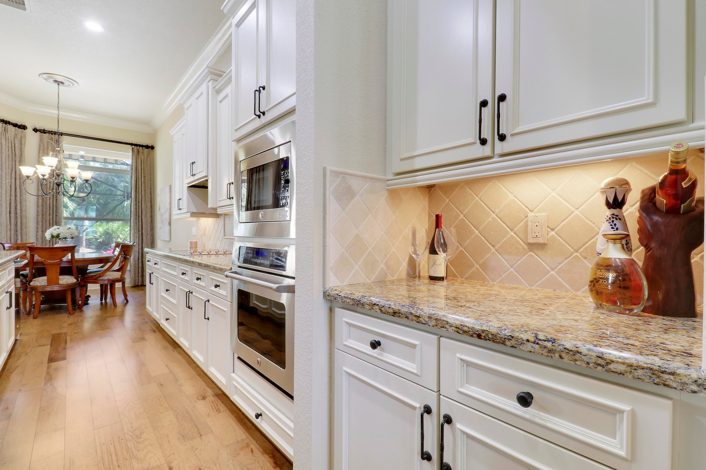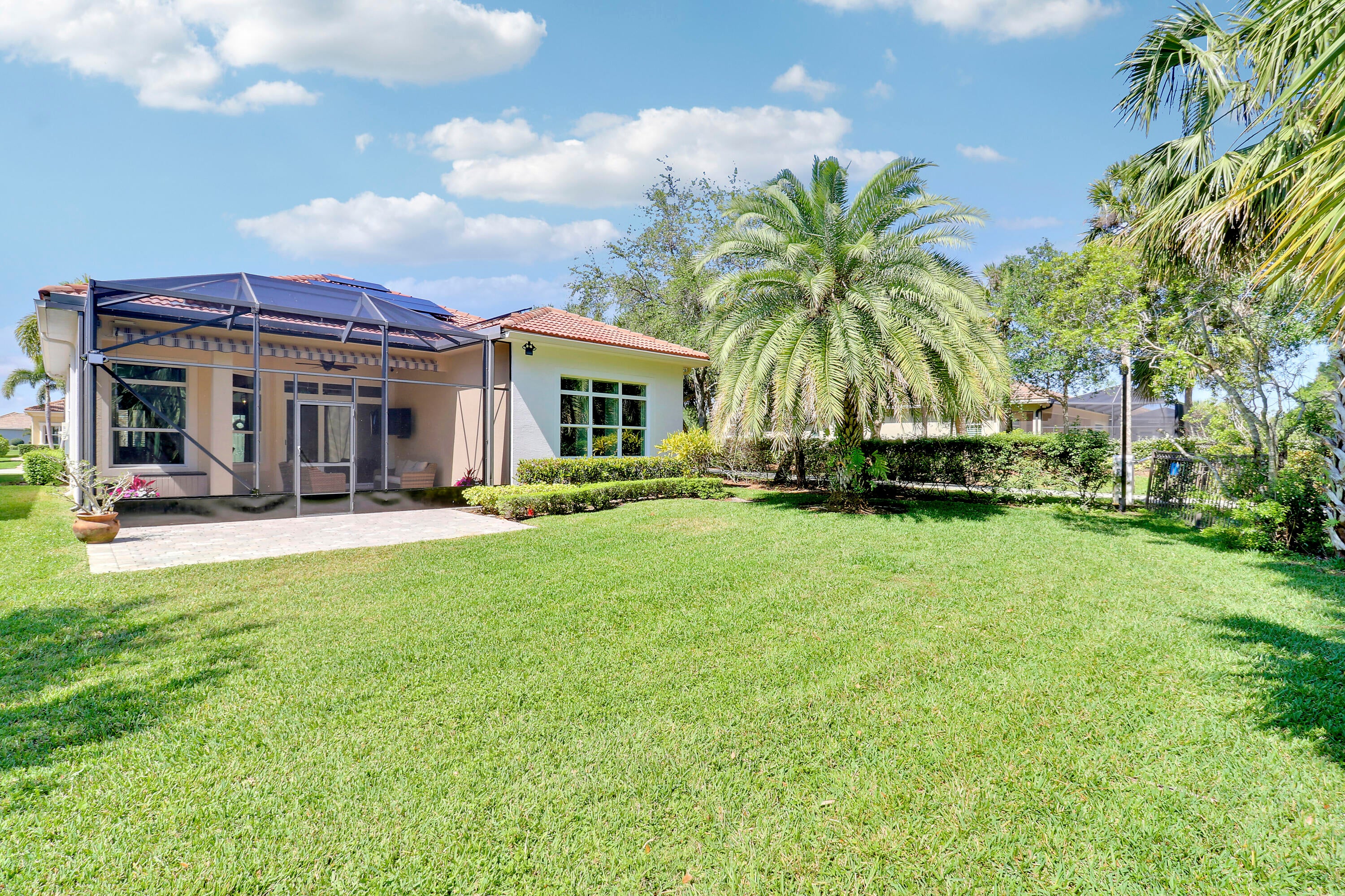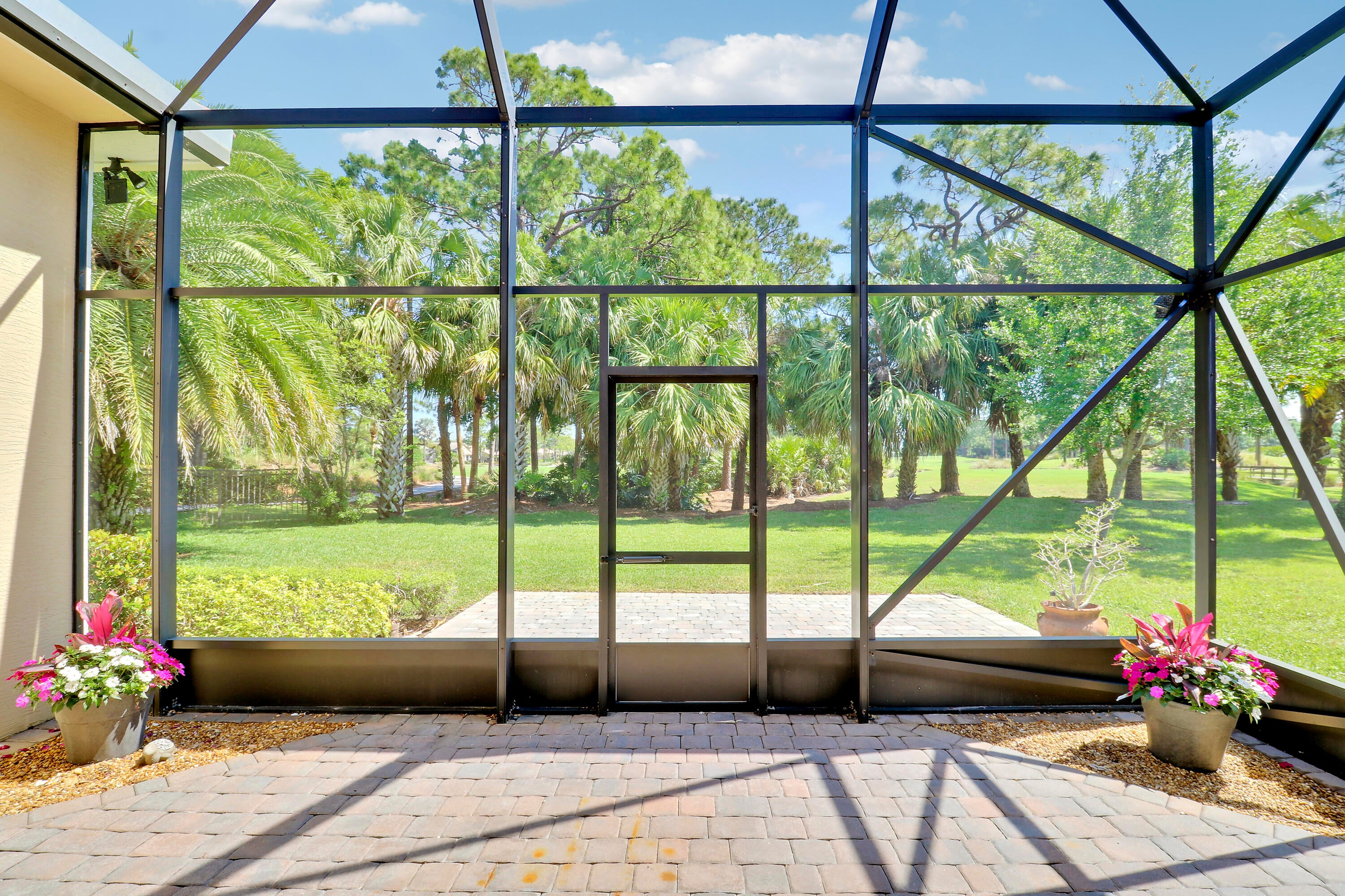LOCATION, LOCATION, LOCATION! Gorgeous 3BR/2.5BA/2CG home with fabulous views of the Wanamaker Course in sought after PGA Verano! This 'Alessa' floorplan features engineered wood flooring t/o, high ceilings, crown molding, plantation shutters & custom draperies, designer light fixtures & fans, IMPACT GLASS WINDOWS & DOORS & much more! The open concept kitchen has upgraded SS GE Cafe appliances, solid wood cabinetry, granite counters, tumbled marble backsplash, under cabinet lighting & butler's pantry. Primary suite offers beautiful views, custom cabinetry, LUXURIOUS ENSUITE w/dual vanities, soaker tub, frameless shower & separate water closet. Room for friends & family w/ 2 more bedrooms sharing a full & half bath off the hall. Enjoy expansive views from the extended screened lanai!Verano is an amenity rich community with a 27 court pickleball facility, walking paths, indoor and outdoor pools, multiple fitness centers, sauna, dog park, tennis courts, social clubhouse and so much more! HOA dues include basic cable, internet, lawn care, alarm monitoring, common area maintenance and access to the amenity centers. For avid golfers, there is a cart path leading to the PGA Golf Club (membership is optional and availability varies). This community truly has something for everyone! Come experience resort style living today - call to view!