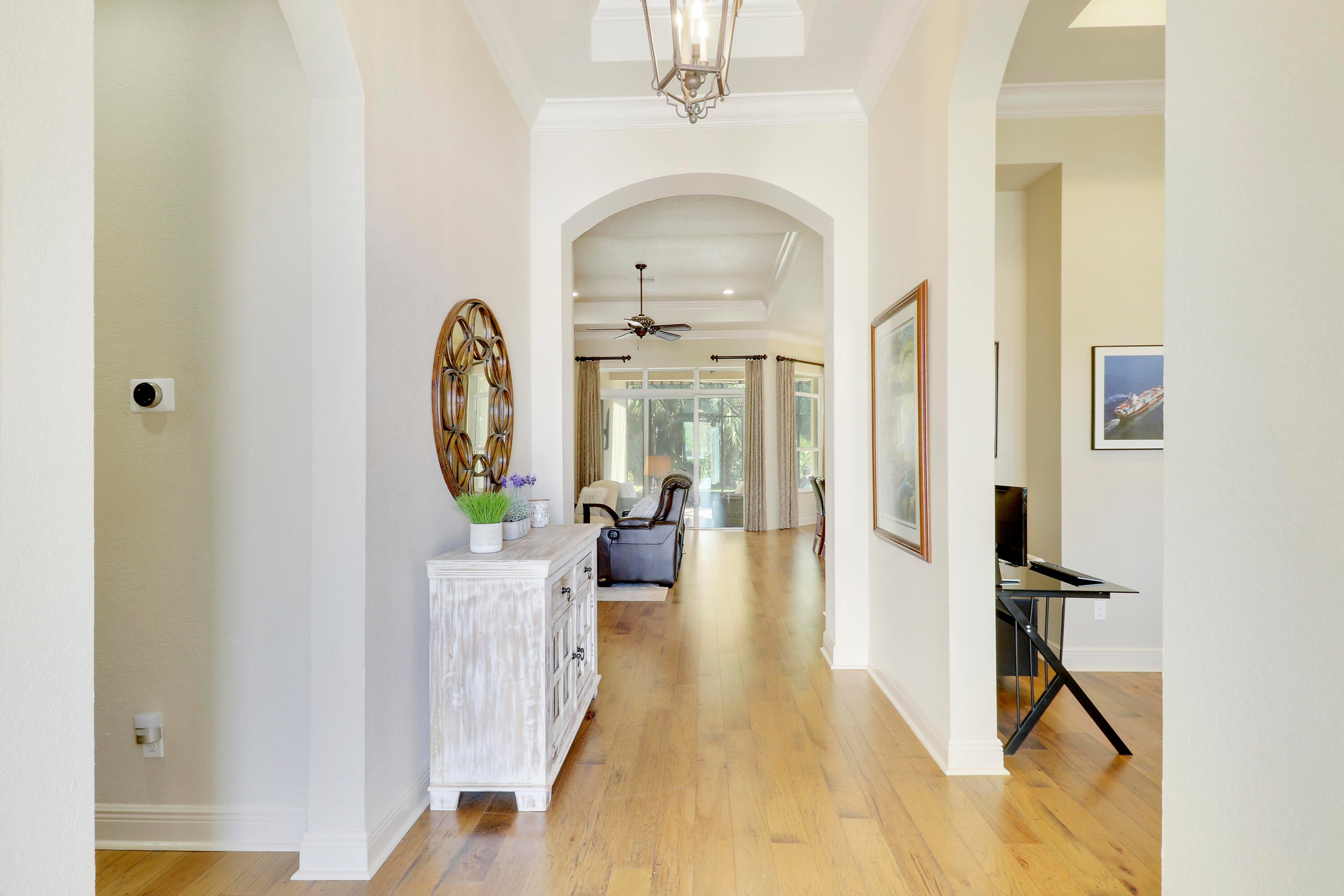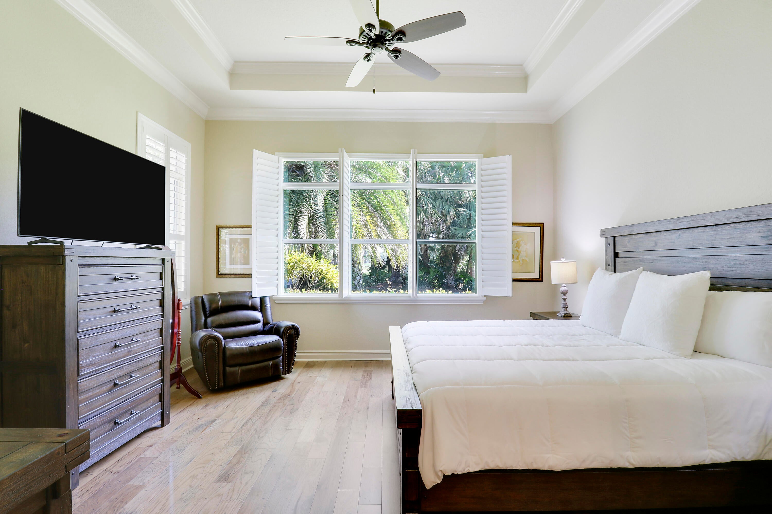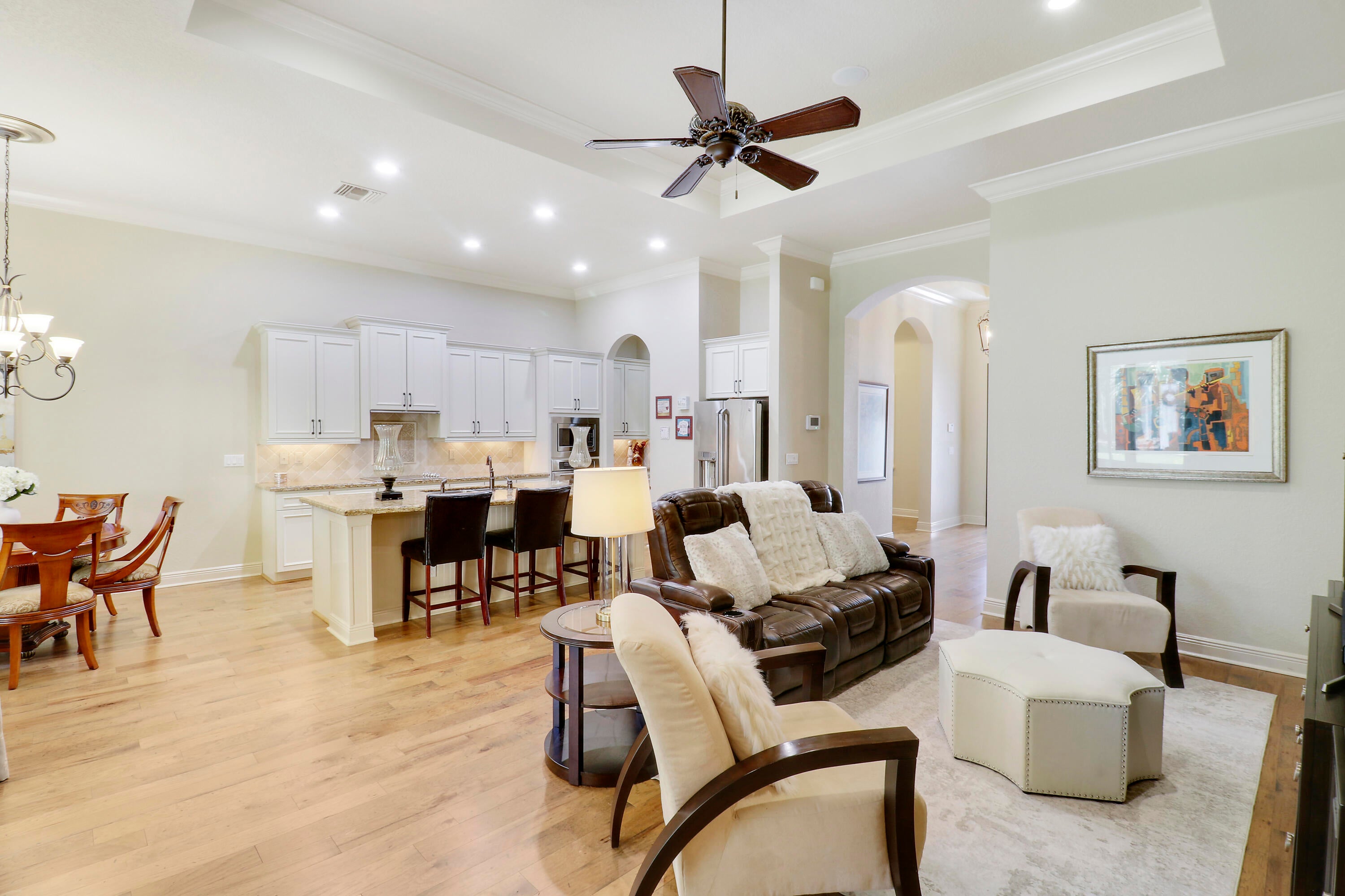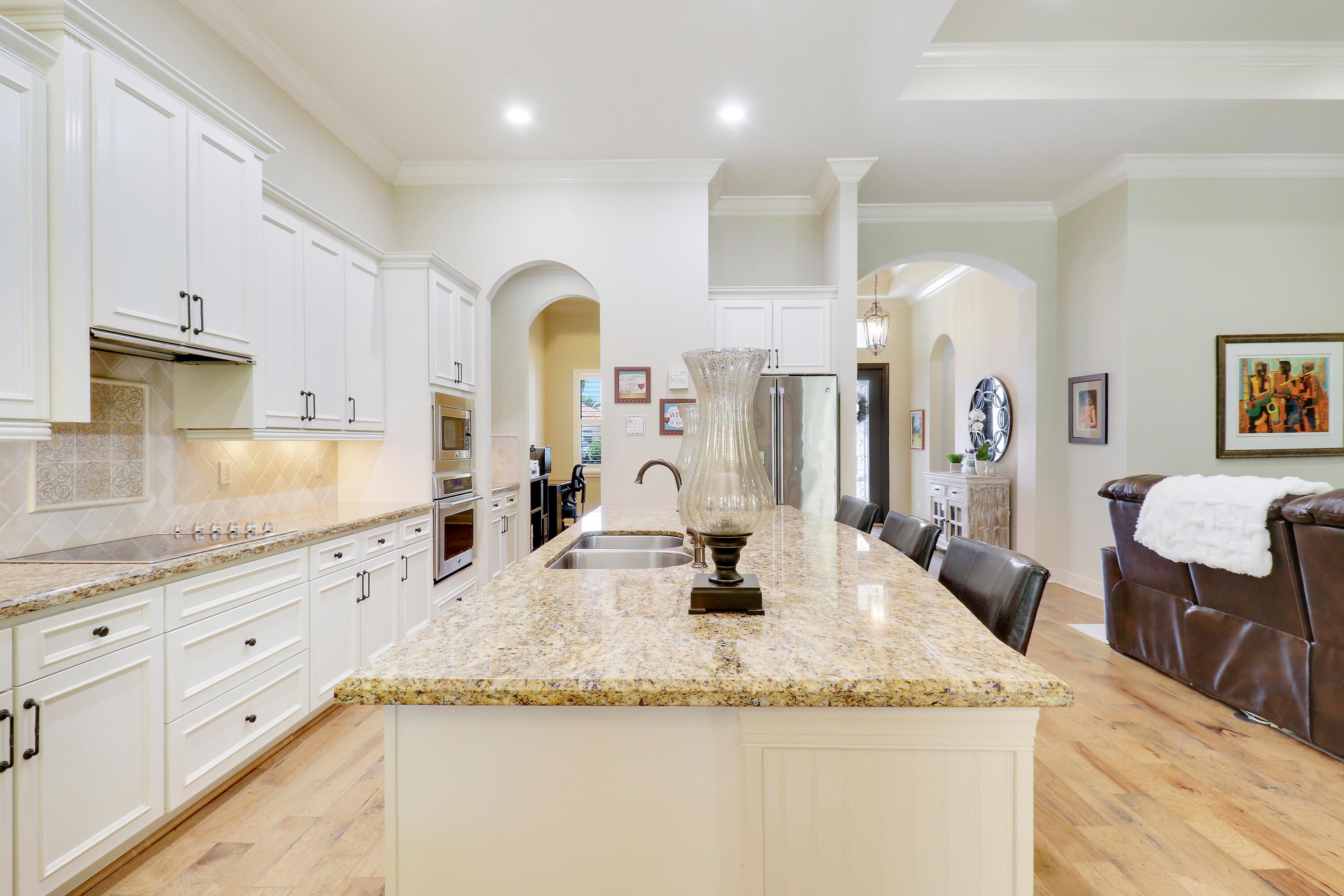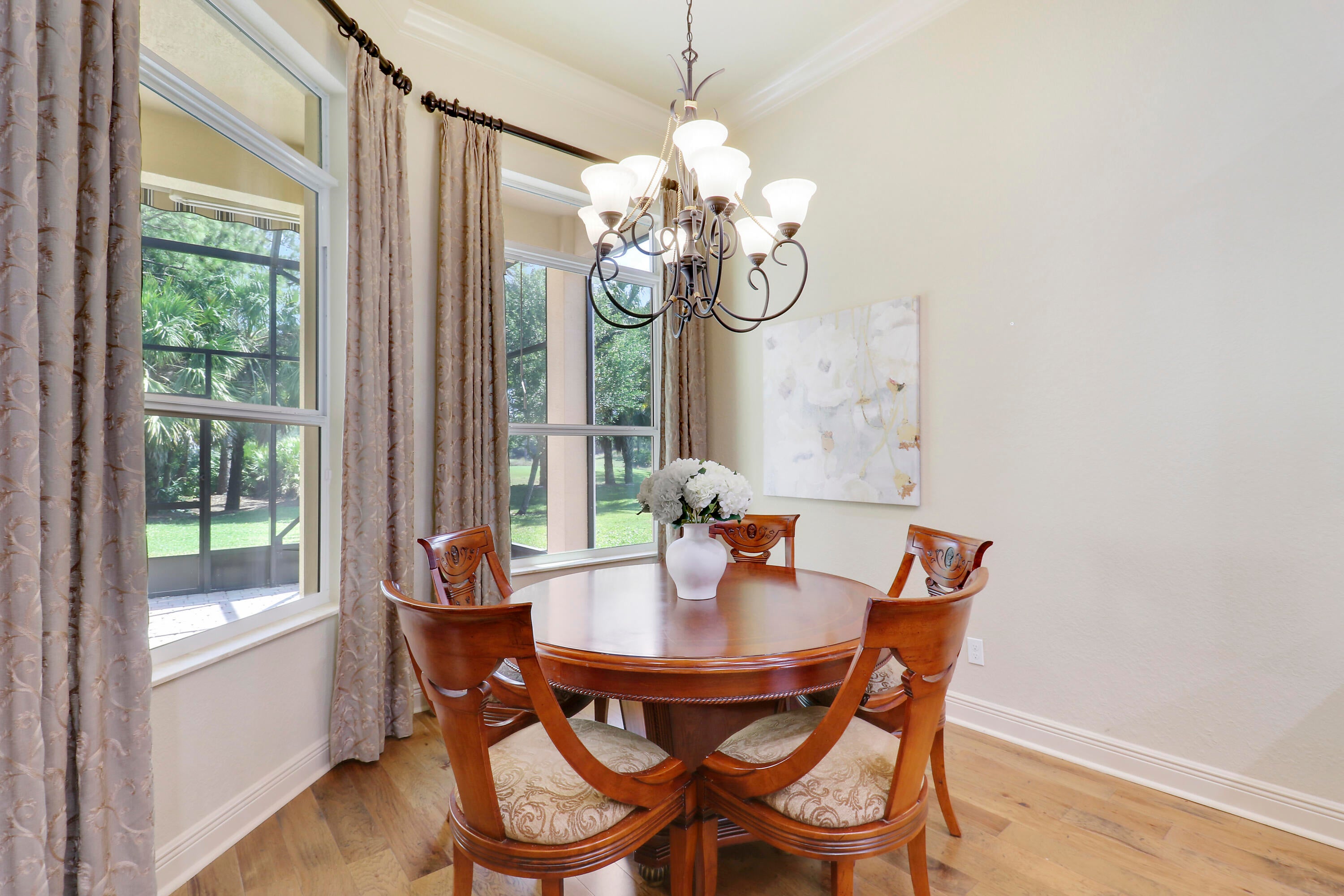 LOCATION, LOCATION, LOCATION! Gorgeous 3BR/2.5BA/2CG home with fabulous views of the Wanamaker Course in sought after PGA Verano! This 'Alessa' floorplan features engineered wood flooring t/o, high ceilings, crown molding, plantation shutters & custom draperies, designer light fixtures & fans, IMPACT GLASS WINDOWS & DOORS & much more! The open concept kitchen has upgraded SS GE Cafe appliances, solid wood cabinetry, granite counters, tumbled marble backsplash, under cabinet lighting & butler's pantry. Primary suite offers beautiful views, custom cabinetry, LUXURIOUS ENSUITE w/dual vanities, soaker tub, frameless shower & separate water closet. Room for friends & family w/ 2 more bedrooms sharing a full & half bath off the hall. Enjoy expansive views from the extended screened lanai!Verano is an amenity rich community with a 27 court pickleball facility, walking paths, indoor and outdoor pools, multiple fitness centers, sauna, dog park, tennis courts, social clubhouse and so much more! HOA dues include basic cable, internet, lawn care, alarm monitoring, common area maintenance and access to the amenity centers. For avid golfers, there is a cart path leading to the PGA Golf Club (membership is optional and availability varies). This community truly has something for everyone! Come experience resort style living today - call to view!