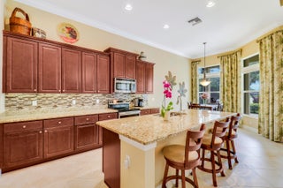 AMAZING LOT LOCATION on side street w/PEACEFUL LAKE VIEWS FRONT & BACK in the resort style community of PGA VERANO. This 3BR/2.5BA/2CG home has many upgrades t/o including neutral tile in main living areas, custom draperies, impact glass windows & doors, newer AC (2024) and spacious screened & expanded lanai overlooking the serene lake views! The kitchen features SS appliances, granite counters, butlers pantry, an abundance of cabinetry and a charming breakfast nook. Master suite overlooks the lake view, has dual closets, a spacious ensuite w/ dual vanities and a soaker tub & shower. Guest bedrooms have access to the hallway bathroom. The highlight of this property is the expanded, screened lanai w/ outdoor grill area! A perfect spot to enjoy your morning coffee or dine al fresco.Verano is an amenity rich community with a 27 court pickleball facility, walking paths, indoor and outdoor pools, multiple fitness centers, sauna, dog park, resistance pool, e-gym, tennis courts, social clubhouse and so much more. HOA dues include basic cable, internet, alarm monitoring, lawn care, common area maintenance and access to amenity centers. For avid golfers, there is a cart path leading to the PGA Golf Club (membership is optional and availability varies). Fantastic opportunity to own a lovely home on an AMAZING lot. Call to view!