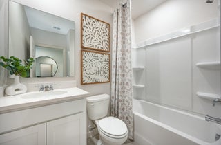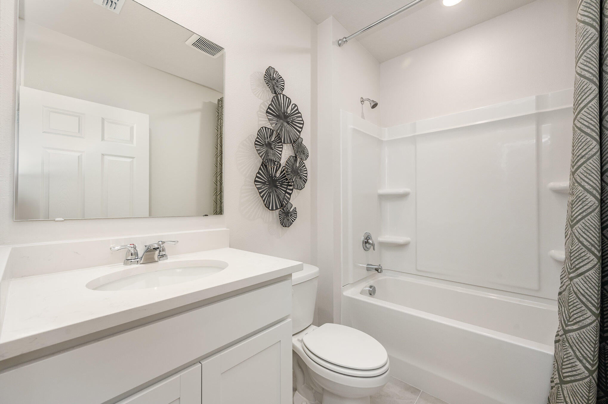 This beautifully designed, all-concrete block, one-story home features an efficient floor plan. The foyer leads to two guest bedrooms sharing a full bath and a third with an ensuite. A laundry room and linen closet are across the hall. The three-car garage includes openers, with ample parking on the wide driveway. The kitchen boasts an expansive island, quartz countertops, oversized undermount sink, and a large pantry. The primary suite offers a luxurious bath, double vanity, walk-in closet, and shower/tub combo. Luxury vinyl plank flooring throughout main living and wet areas. Smart home technology included.