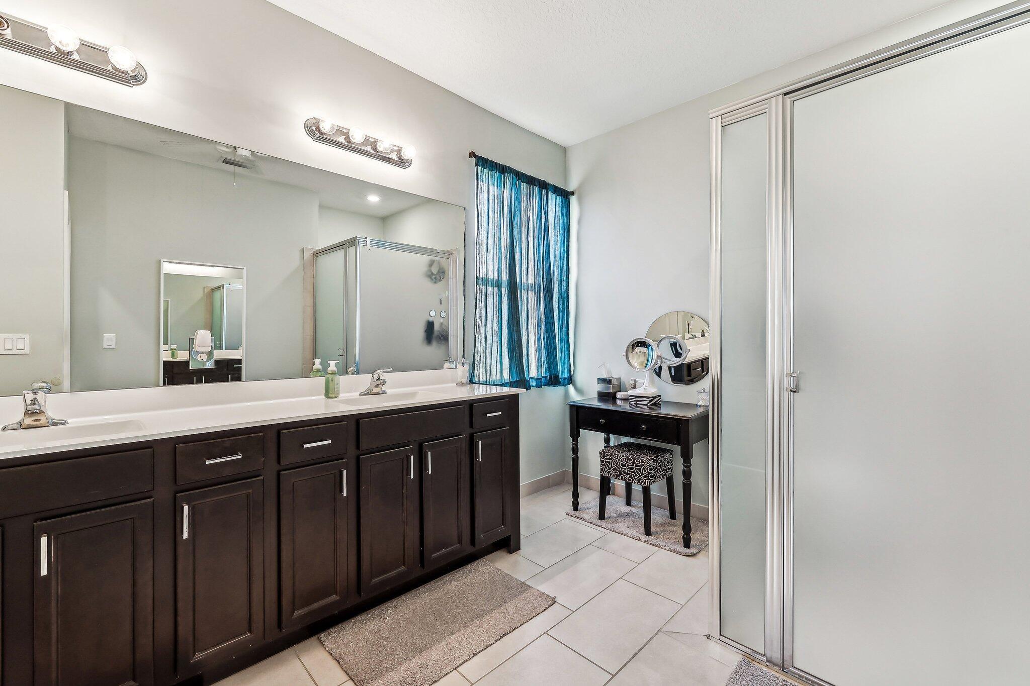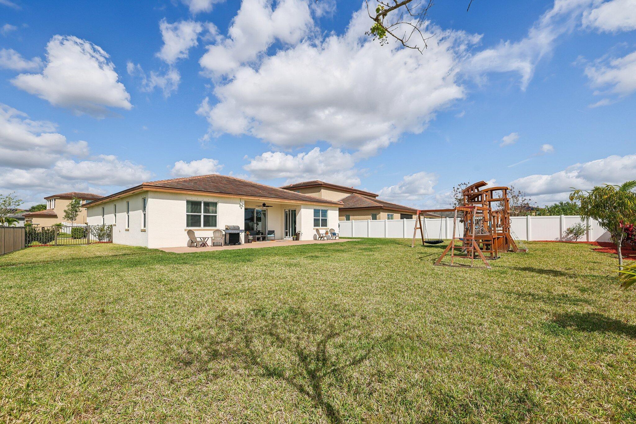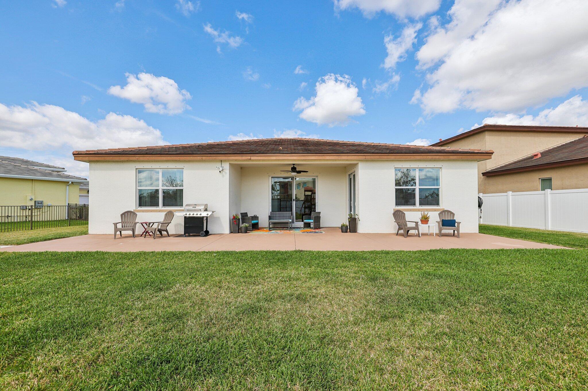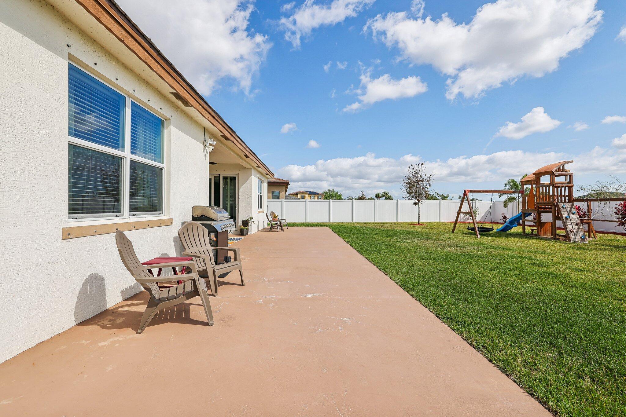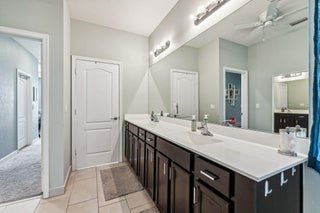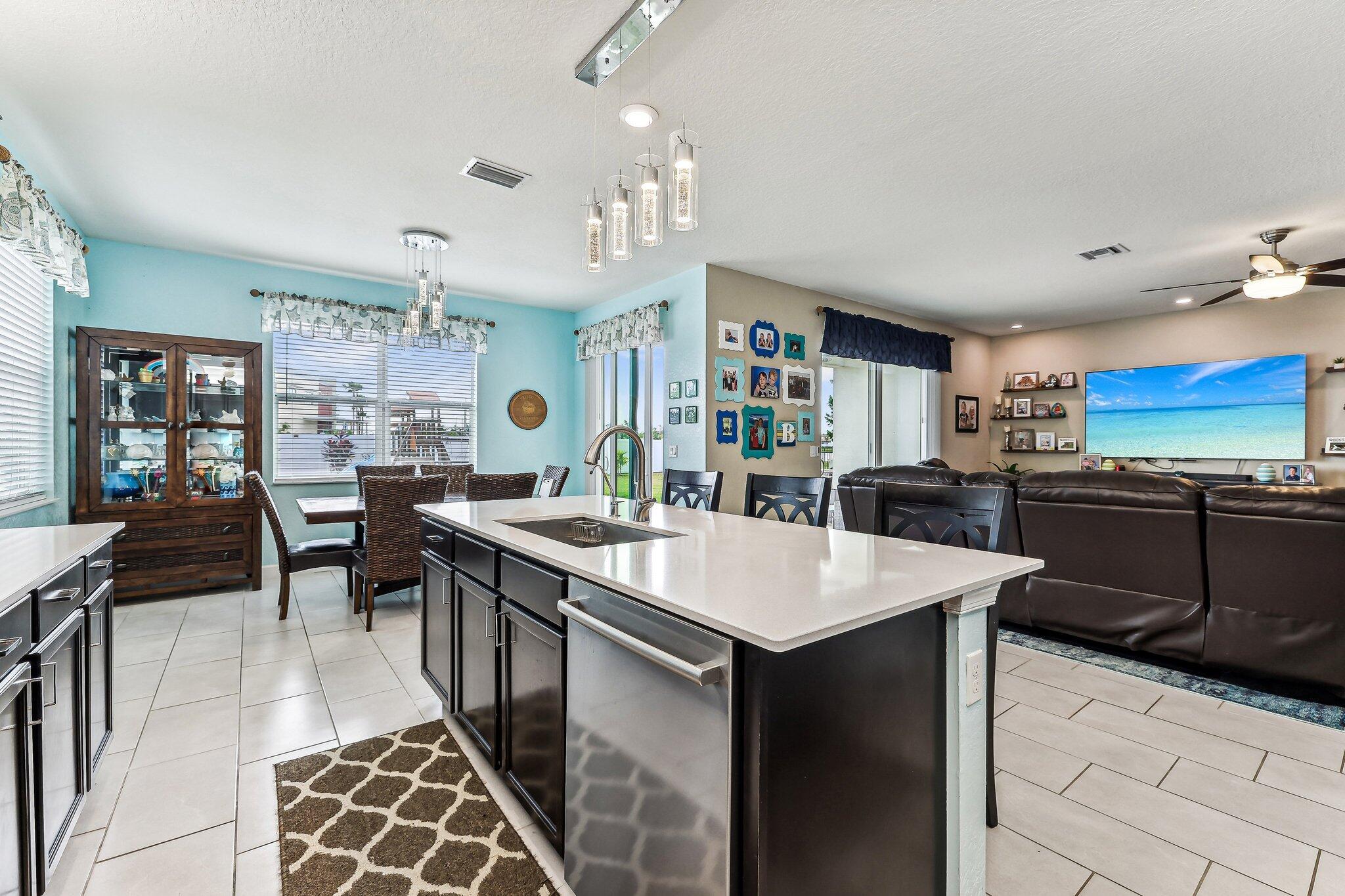 Fantastic opportunity to live in the gated community of Copper Creek. Spacious open floor plan with a large great room, eat in kitchen with quartz countertops and center island, and a water filtration system with reverse osmosis. Master suite offers tray ceilings and his and hers walk in closets. Guest bedrooms have closet systems in each room for maximum storage. Inside laundry room offers a utility sink and cabinets. Upgraded tile throughout the living areas, 2 sets of sliders leading to a covered patio, and huge extended slab for entertaining. Overlooking the white fenced yard with lake and preserve views on one of the largest lots in the community. Copper Creek offers a large clubhouse with a fitness center, resort pool, pickleball, basketball courts, and a playground.