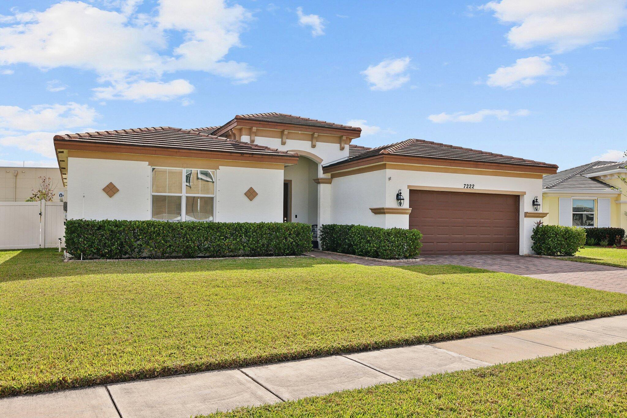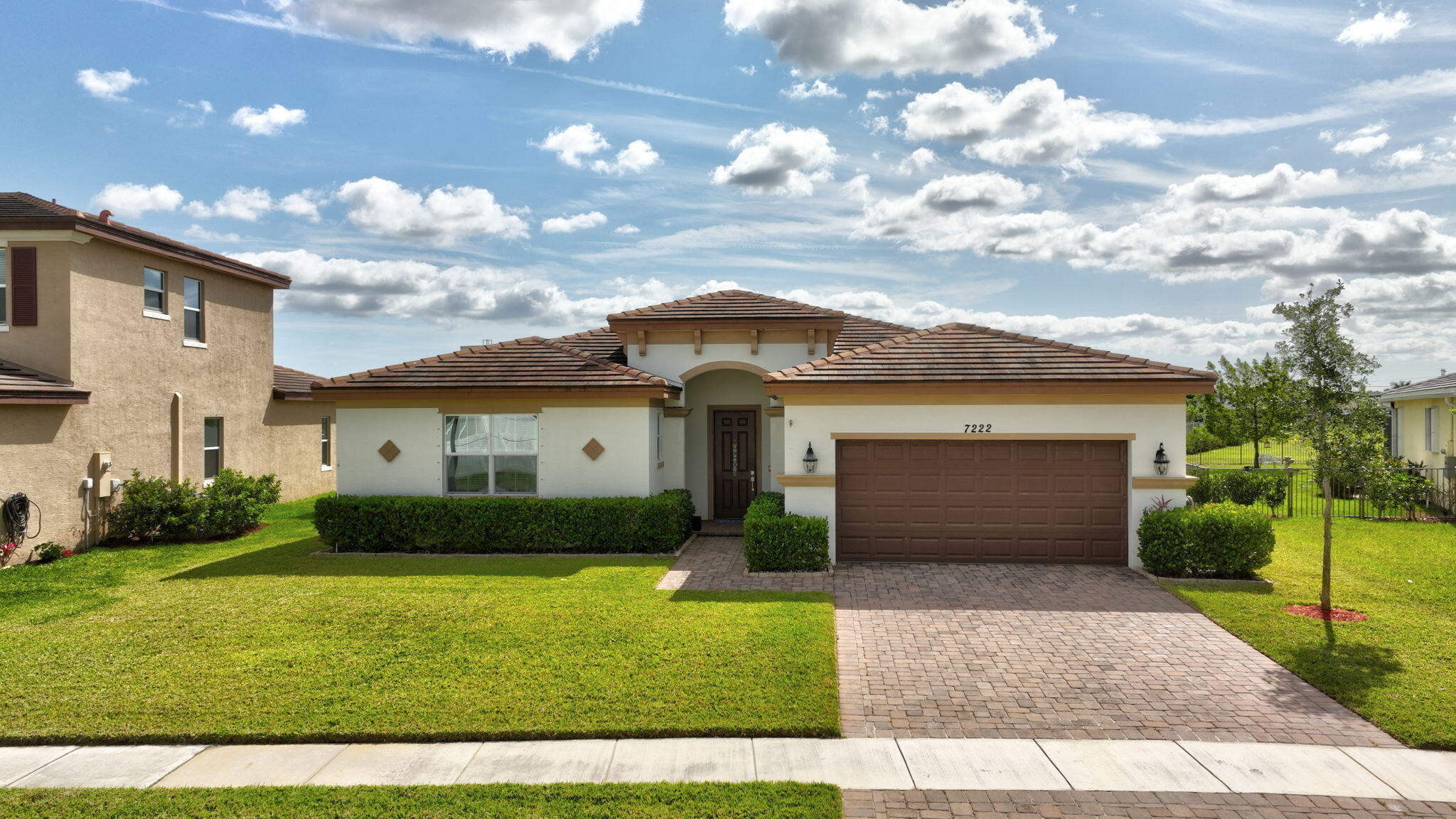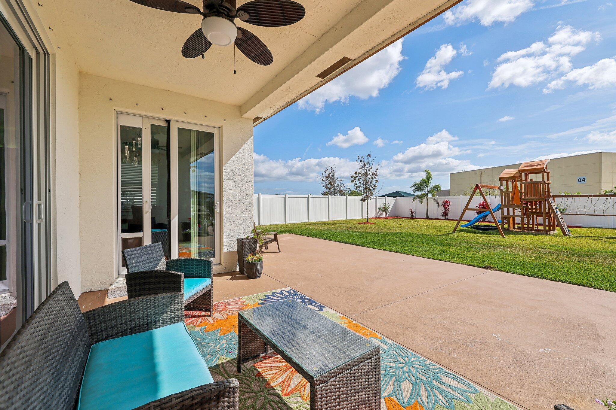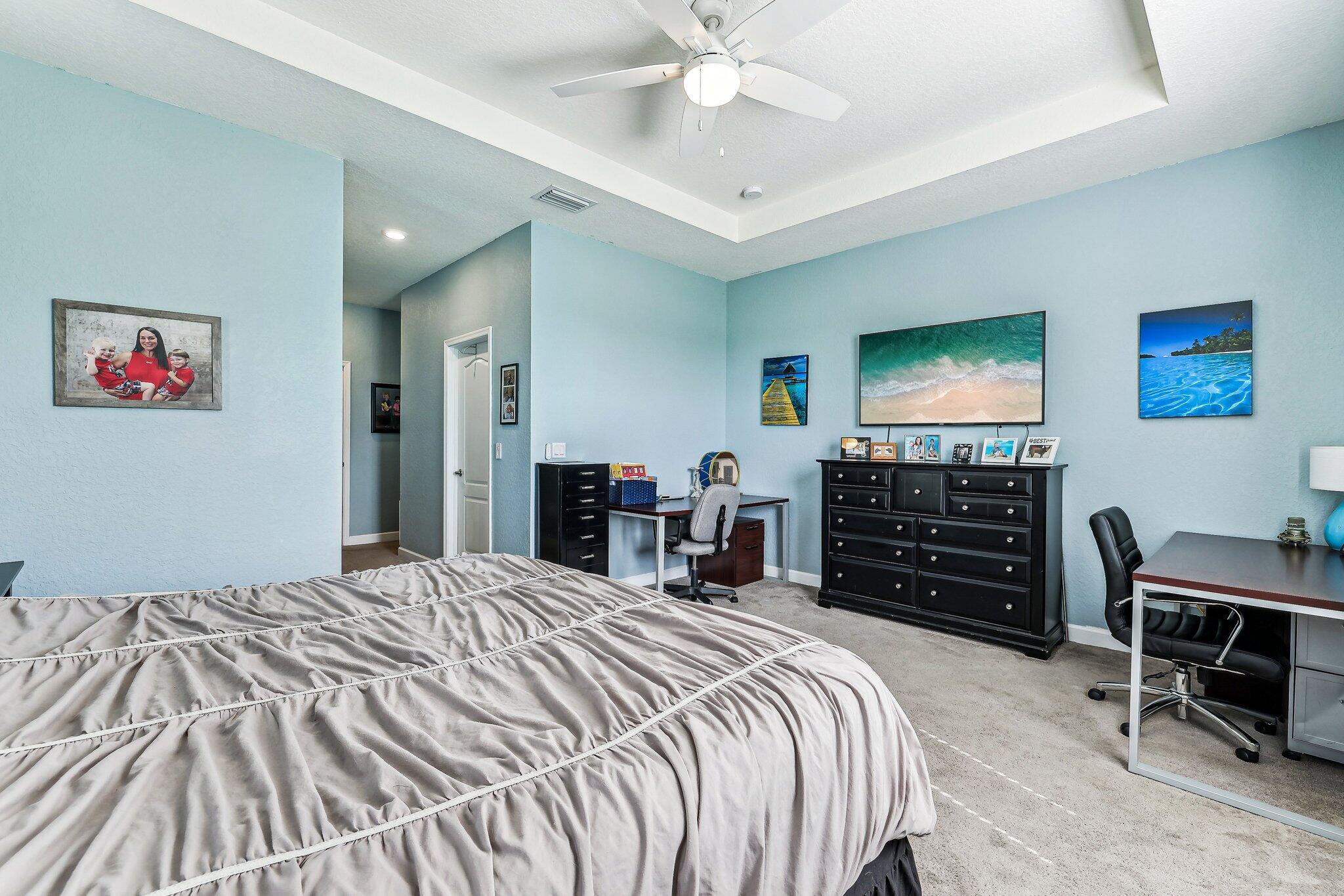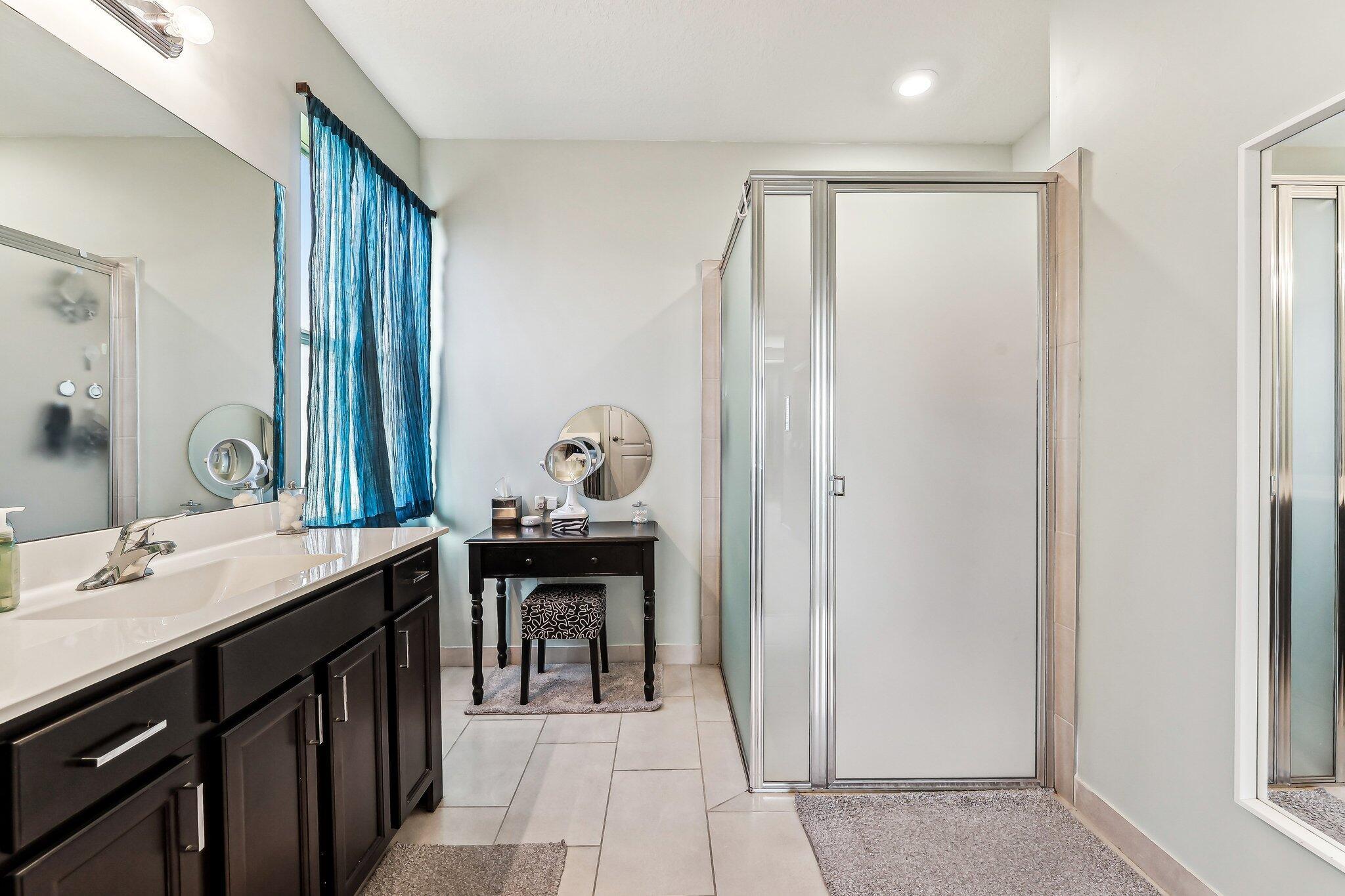Fantastic opportunity to live in the gated community of Copper Creek. Spacious open floor plan with a large great room, eat in kitchen with quartz countertops and center island, and a water filtration system with reverse osmosis. Master suite offers tray ceilings and his and hers walk in closets. Guest bedrooms have closet systems in each room for maximum storage. Inside laundry room offers a utility sink and cabinets. Upgraded tile throughout the living areas, 2 sets of sliders leading to a covered patio, and huge extended slab for entertaining. Overlooking the white fenced yard with lake and preserve views on one of the largest lots in the community. Copper Creek offers a large clubhouse with a fitness center, resort pool, pickleball, basketball courts, and a playground.