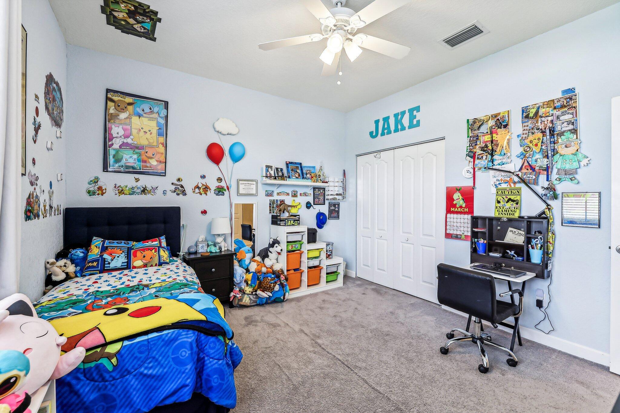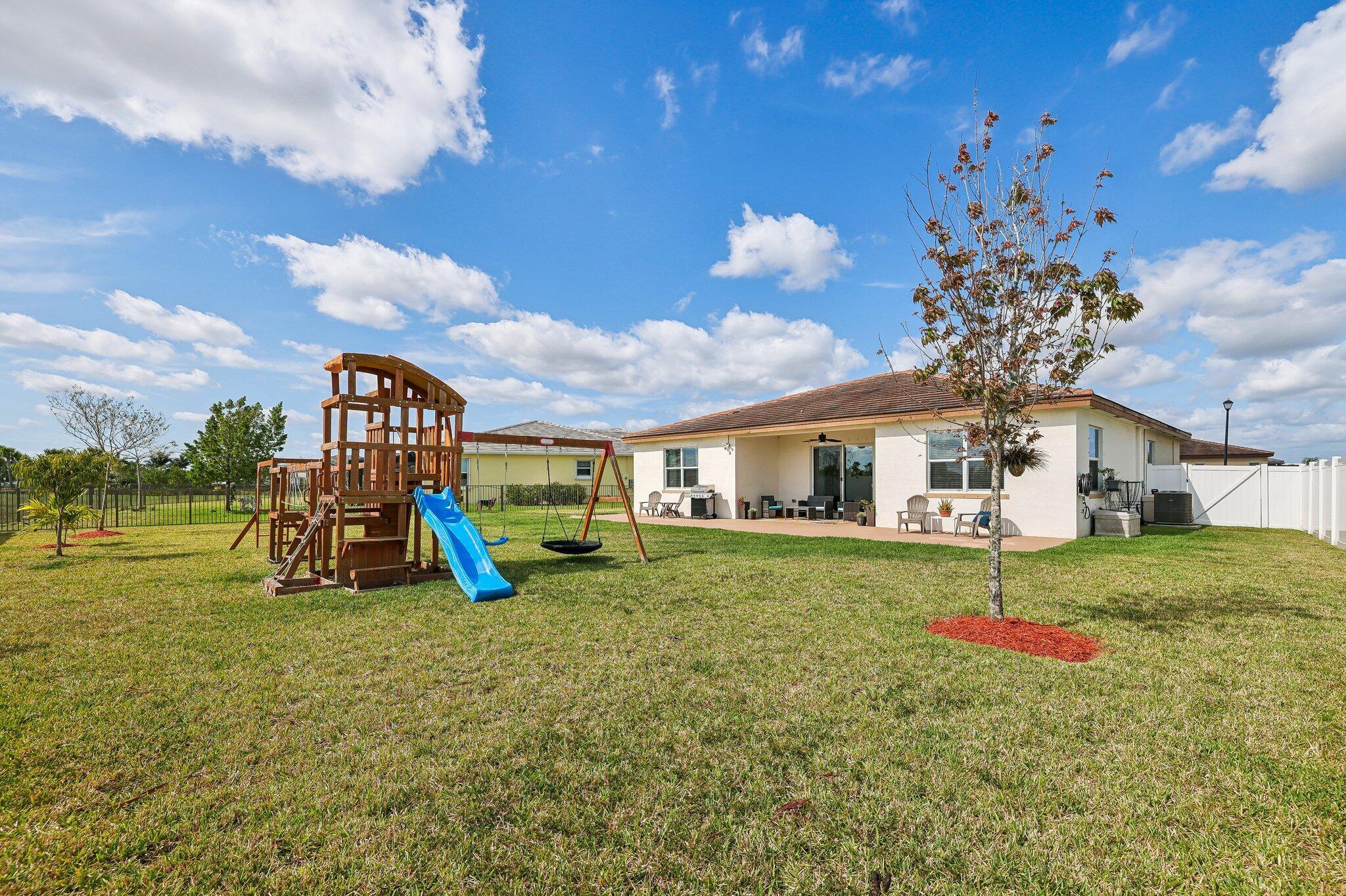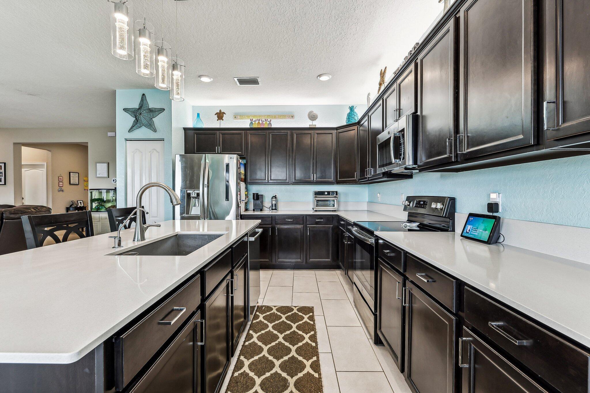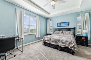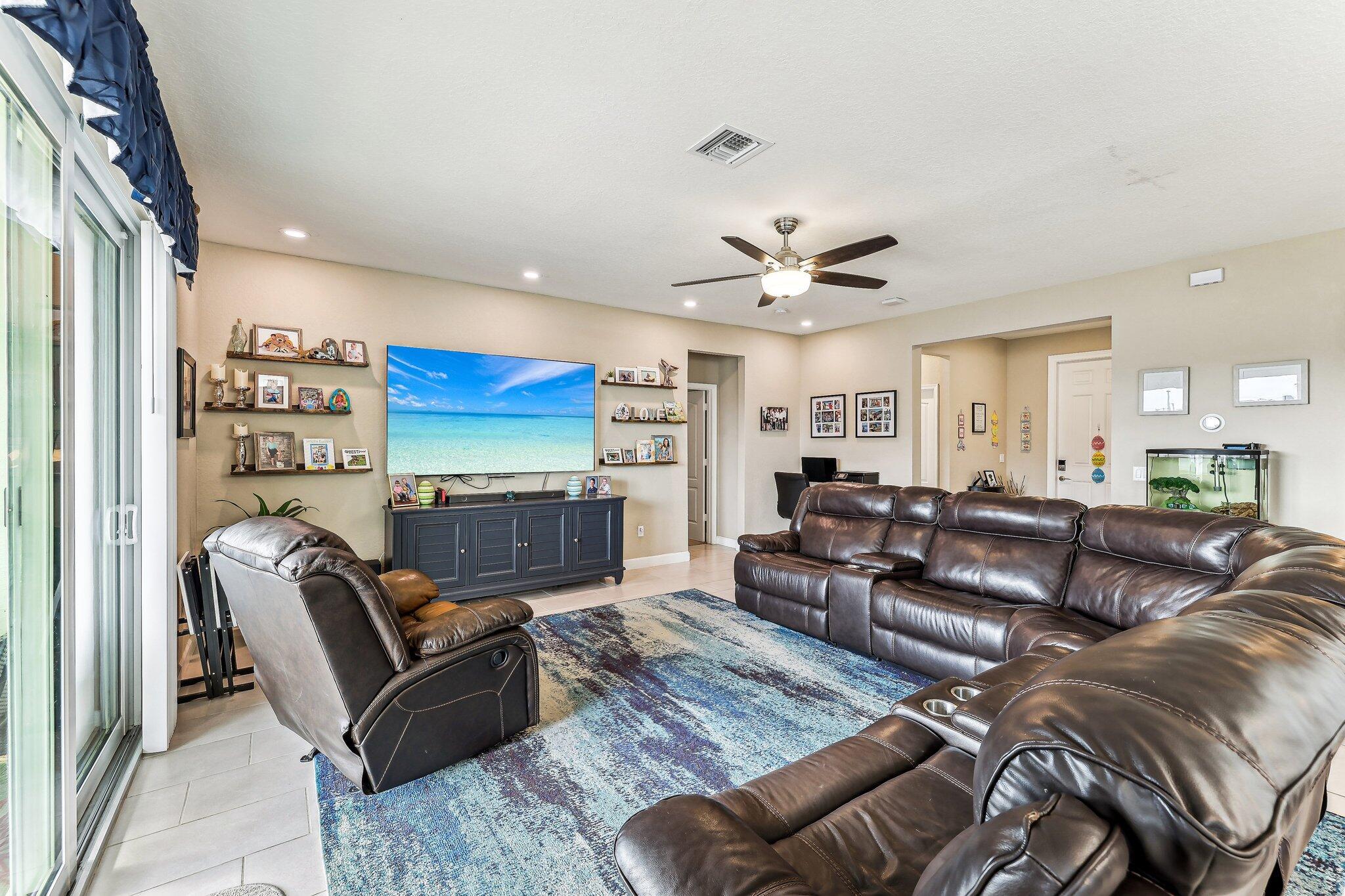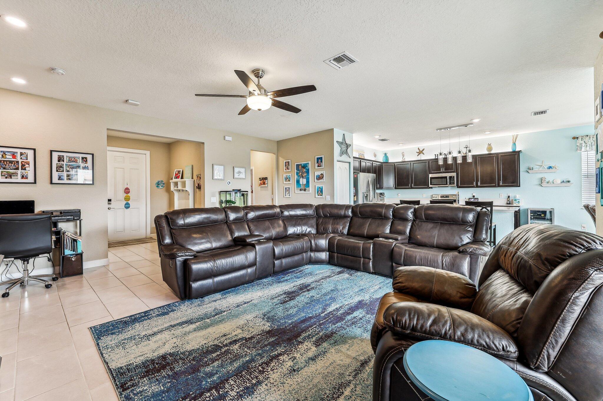 Fantastic opportunity to live in the gated community of Copper Creek. Spacious open floor plan with a large great room, eat in kitchen with quartz countertops and center island, and a water filtration system with reverse osmosis. Master suite offers tray ceilings and his and hers walk in closets. Guest bedrooms have closet systems in each room for maximum storage. Inside laundry room offers a utility sink and cabinets. Upgraded tile throughout the living areas, 2 sets of sliders leading to a covered patio, and huge extended slab for entertaining. Overlooking the white fenced yard with lake and preserve views on one of the largest lots in the community. Copper Creek offers a large clubhouse with a fitness center, resort pool, pickleball, basketball courts, and a playground.