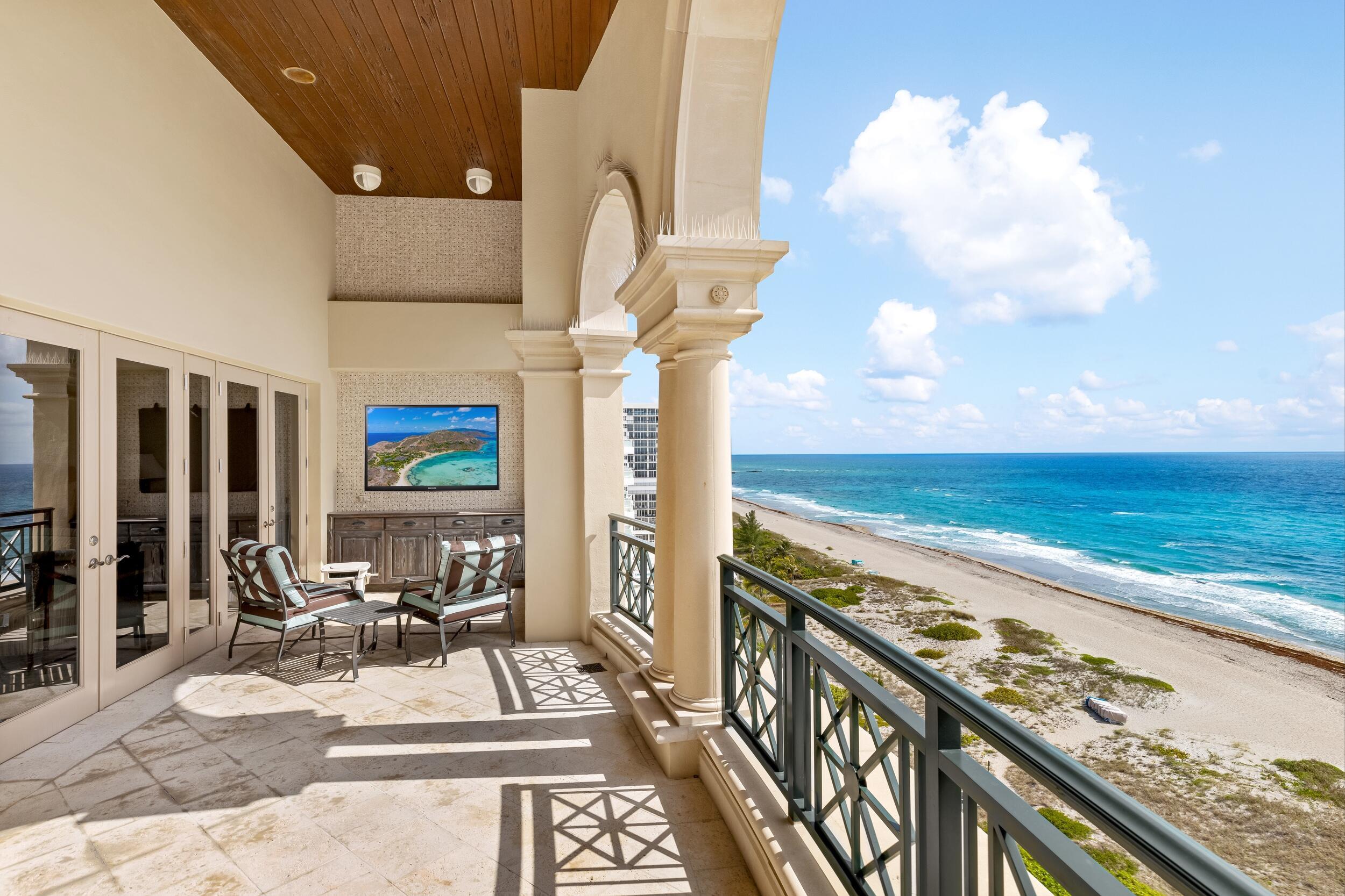 Rising above Boca Raton's most coveted stretch of coastline, PH02 at Luxuria is an extraordinary residence of distinction, sophistication, and timeless beauty. Encompassing 4,482 square feet of refined interiors, this four-bedroom, five-bathroom masterpiece offers a lifestyle of unparalleled elegance in one of South Florida's most exclusive oceanfront enclaves.Accessed by a private elevator and landing foyer, the home opens to a grand entrance that immediately conveys its rare pedigree. This flow-through penthouse commands breathtaking vistas in every direction--from the endless blues of the Atlantic Ocean to the golden hues of Intracoastal sunsets. The dual exposure fills the interiors with natural light, creating a tranquil yet dramatic canvas throughout the day.Evoking the spirit of classic European design, the interiors are curated with the finest natural stones, including rich onyx, polished marble, and exotic granite. Custom millwork, coffered ceilings, and a stately fireplace in the great room anchor the home's sense of grandeur, while vibrant design moments add warmth and individuality to each living space. The chef's kitchen is as functional as it is beautiful equipped with a six-burner Wolf gas range, oversized Sub-Zero wine refrigerator, Sub-Zero refrigerator and freezer, white porcelain farm sink, and hand-crafted cabinetry, all oriented to showcase the oceanfront view. An adjacent formal dining room sets the stage for elegant dinner parties and intimate gatherings alike. Designed for both entertaining and retreat, the penthouse includes a custom-built home theater and a spacious great room that opens seamlessly to the outdoor terrace an expansive balcony that functions as a true extension of the living space. Appointed with a wall-mounted television, Viking barbecue, wet bar with sink and refrigerator, it is a sublime setting for al fresco dining, sunset cocktails, and open-air relaxation. The primary suite is a sanctuary unto itself featuring a sitting room, dual custom closets, and access to a private balcony overlooking the sea. The spa-inspired bath is clad in luminous onyx, with dual vanities, a walk-in rain shower, and a sculptural soaking tub positioned to evoke the feeling of a private retreat. Luxuria is an ultra-luxury, full-service boutique building offering the highest level of privacy, security, and comfort. Amenities include 24-hour concierge, valet, beachfront service, a resort-style oceanfront pool, state-of-the-art fitness center, and immediate proximity to Boca Raton's finest dining, golf, and cultural institutions. PH 02 at Luxuria is more than a home it is a statement of prestige and refinement, where European elegance meets modern coastal living in perfect harmony.