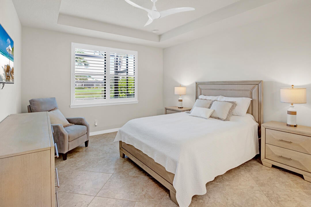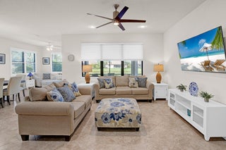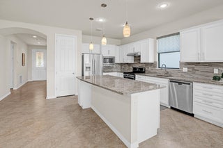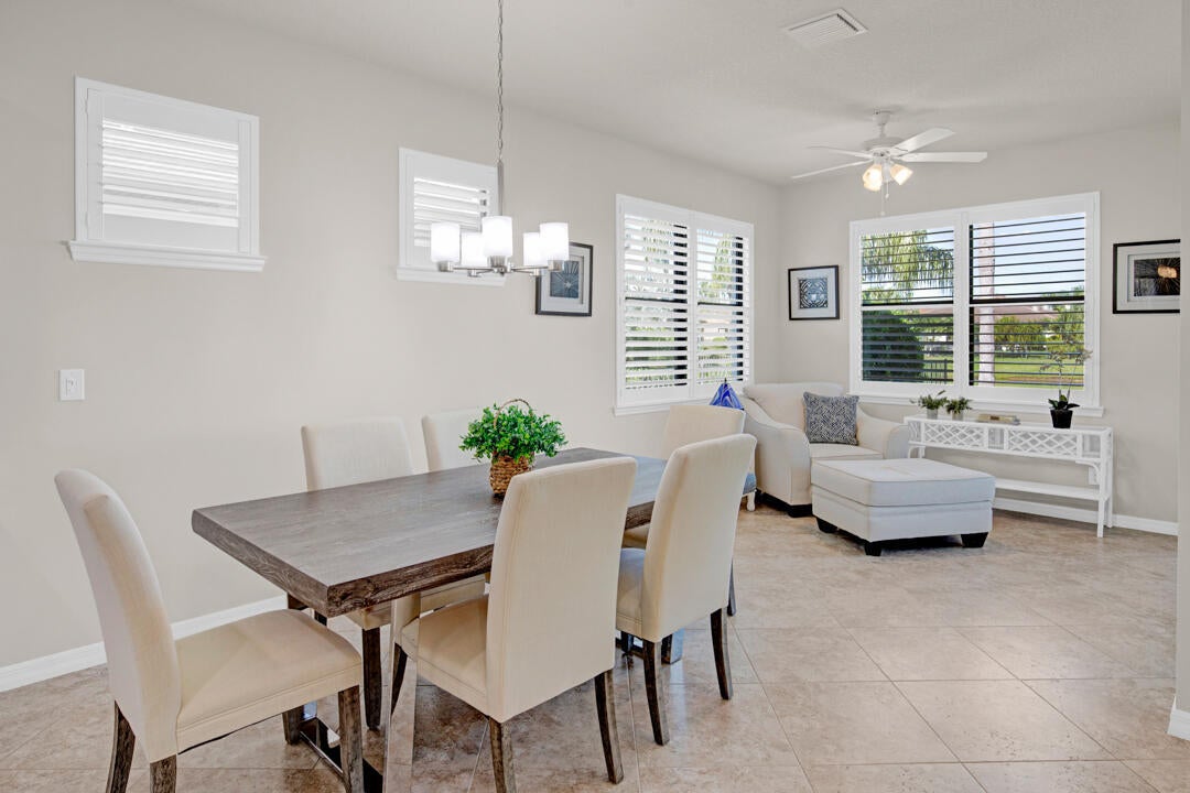 Move in Ready with a beautiful lake view! 2 bedrooms, 2 bathrooms, plus den/office with French doors in gated, pet friendly, Veranda Gardens. Gourmet kitchen features a large island, GAS range with hood, SS appliances, stylish backsplash, and designer lighting. Open-concept layout seamlessly connects the kitchen, dining, and living areas with tile flooring throughout. A spacious sunroom leads to the extended screened lanai, where you'll enjoy sparkling lake views. Large primary suite is a true retreat with spa-like bath, walk-in shower, dual sinks, walk-in closet with built-in shelving. Additional highlights: laundry room w/storage, 9' ceilings, plantation shutters, remote blinds, 8-ft doors, ceiling fans, smooth-finish walls, IMPACT windows, New A/C and water heater.Located in the sought-after gated community of Veranda Gardens renowned for its warmth and hospitality. Living in Veranda Gardens means access to fantastic amenities including a Clubhouse, resort-like heated pool, spa, lap pool, cabanas, tennis, pickleball, basketball, bocce ball, fitness center, community room, catering kitchen, barefoot bar, BBQ grills, fire pit, grills, playground, dog park, sidewalks, street lights, lawn maintenance and all with a LOW HOA fee. Conveniently located with easy access to the FL Turnpike, I-95, shopping, dining, golf, baseball and the beach, this home offers the complete package. Schedule your showing today!