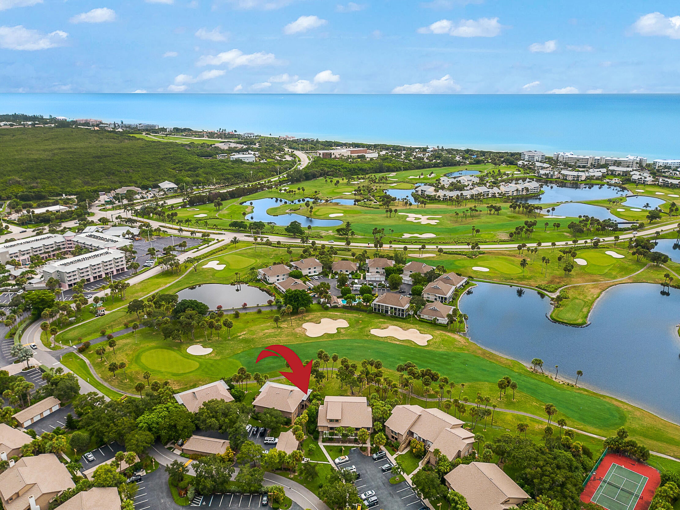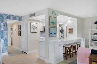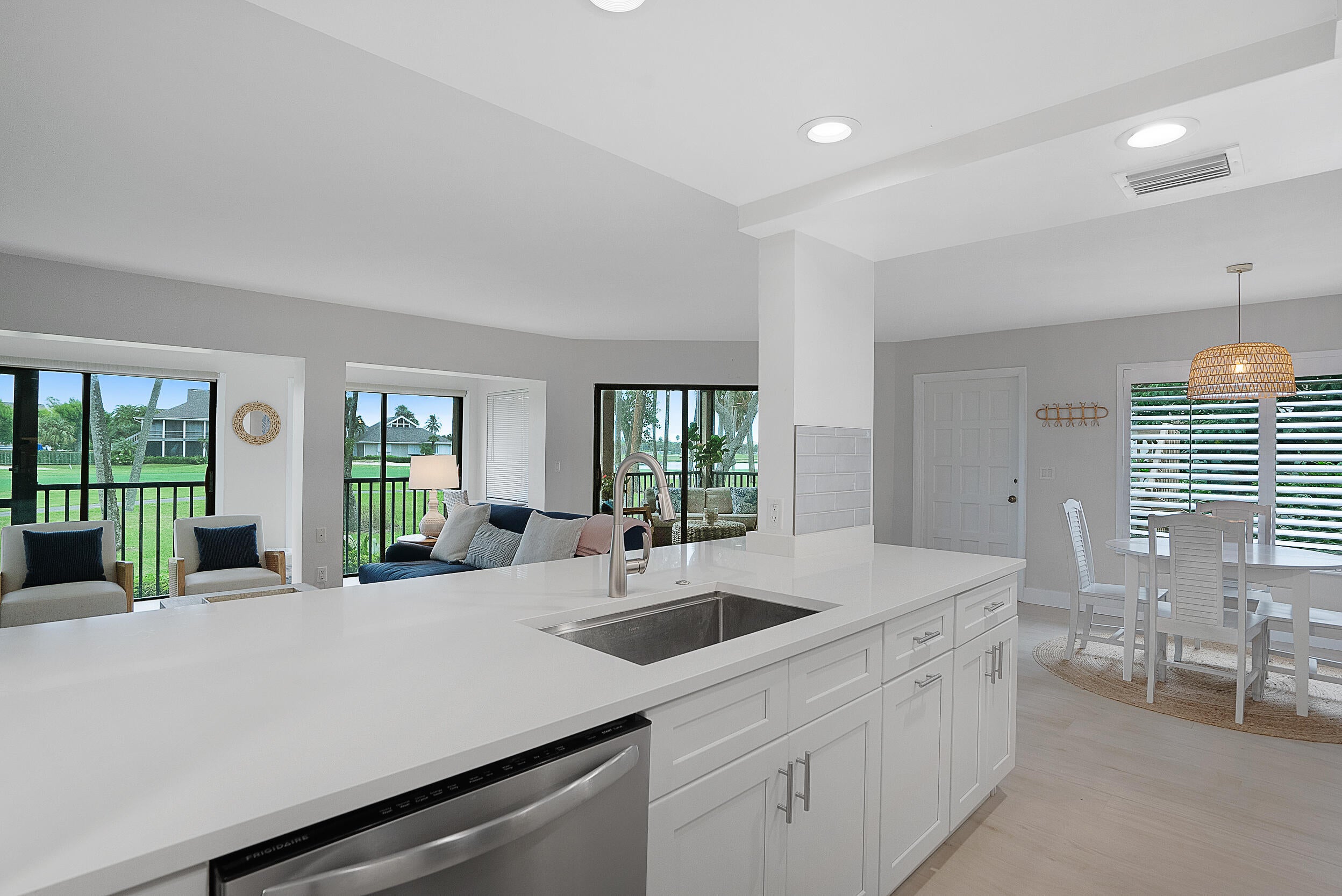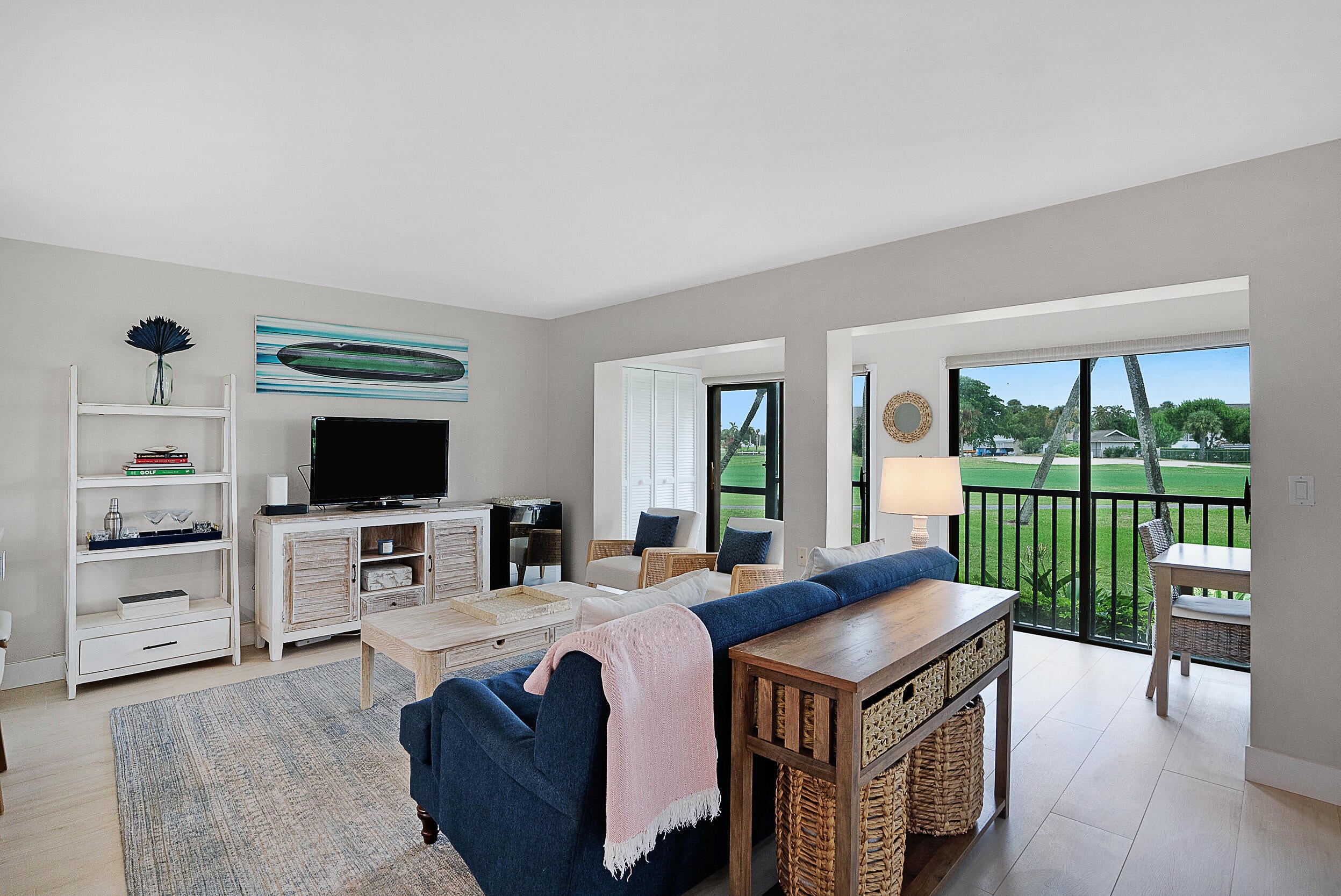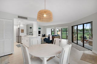 Prime location with beautiful views of the golf course and lake, just a short stroll to the beach! This bright and airy first-floor end unit, fully redone last year, offers two spacious bedrooms and two full baths. The updated white kitchen features Quartzite countertops, stainless steel appliances, and a breakfast bar, opening to a light-filled living area. New vinyl flooring and fresh interior paint give a modern touch. The master bedroom opens to a private patio, perfect for relaxation. Enjoy dining indoors or out on the covered, screened patio, perfect for catching the cool breezes. A rare 1-car garage provides extra storage. Amenities include a heated pool, tennis courts, and BBQ area, with optional membership available.