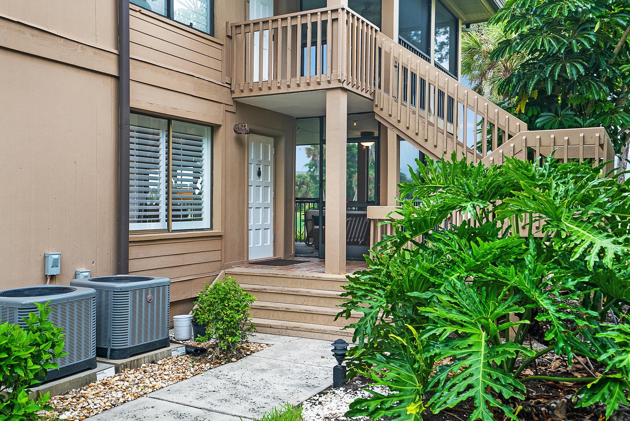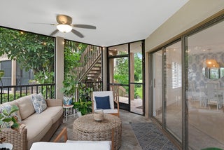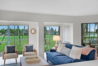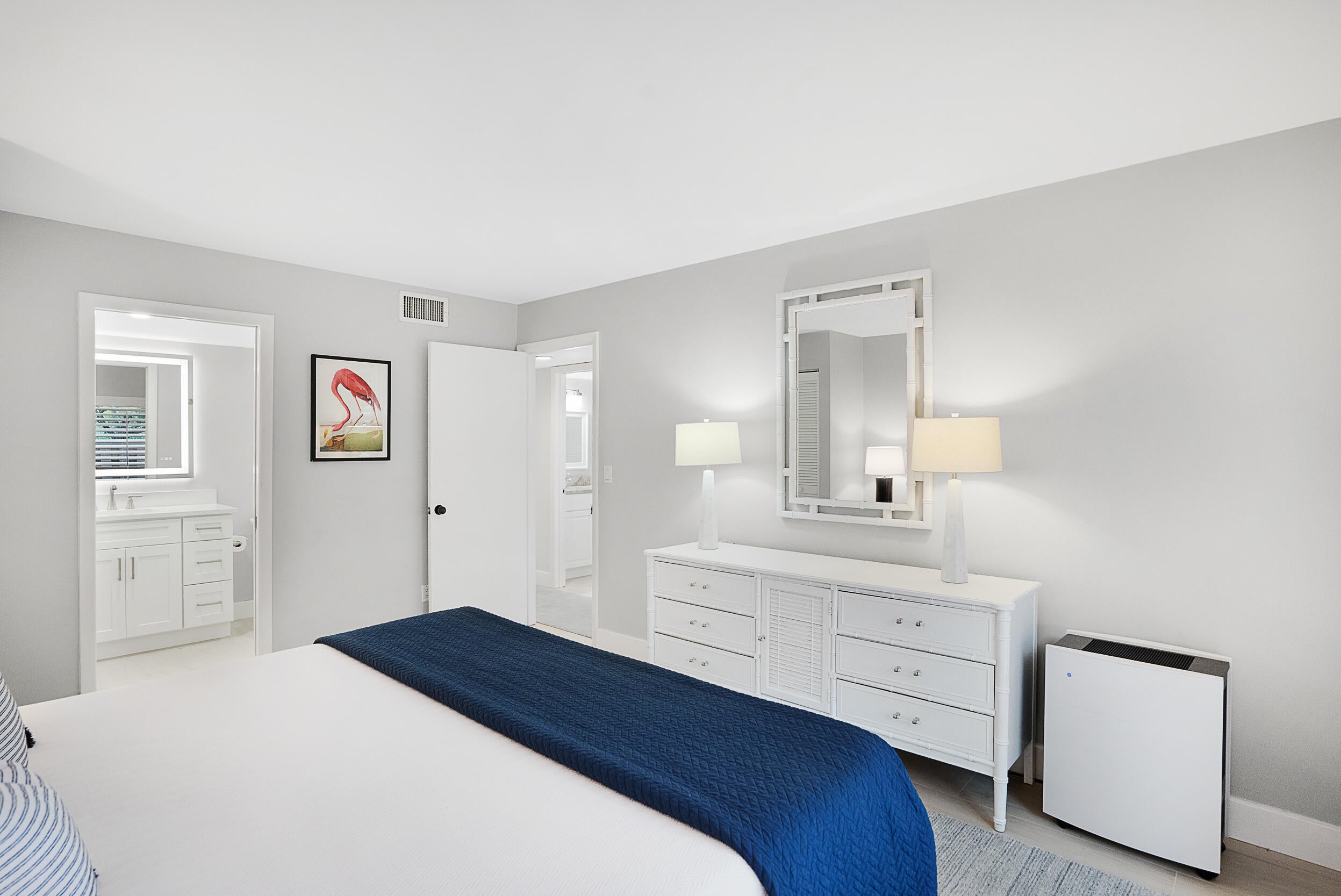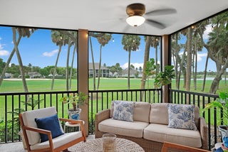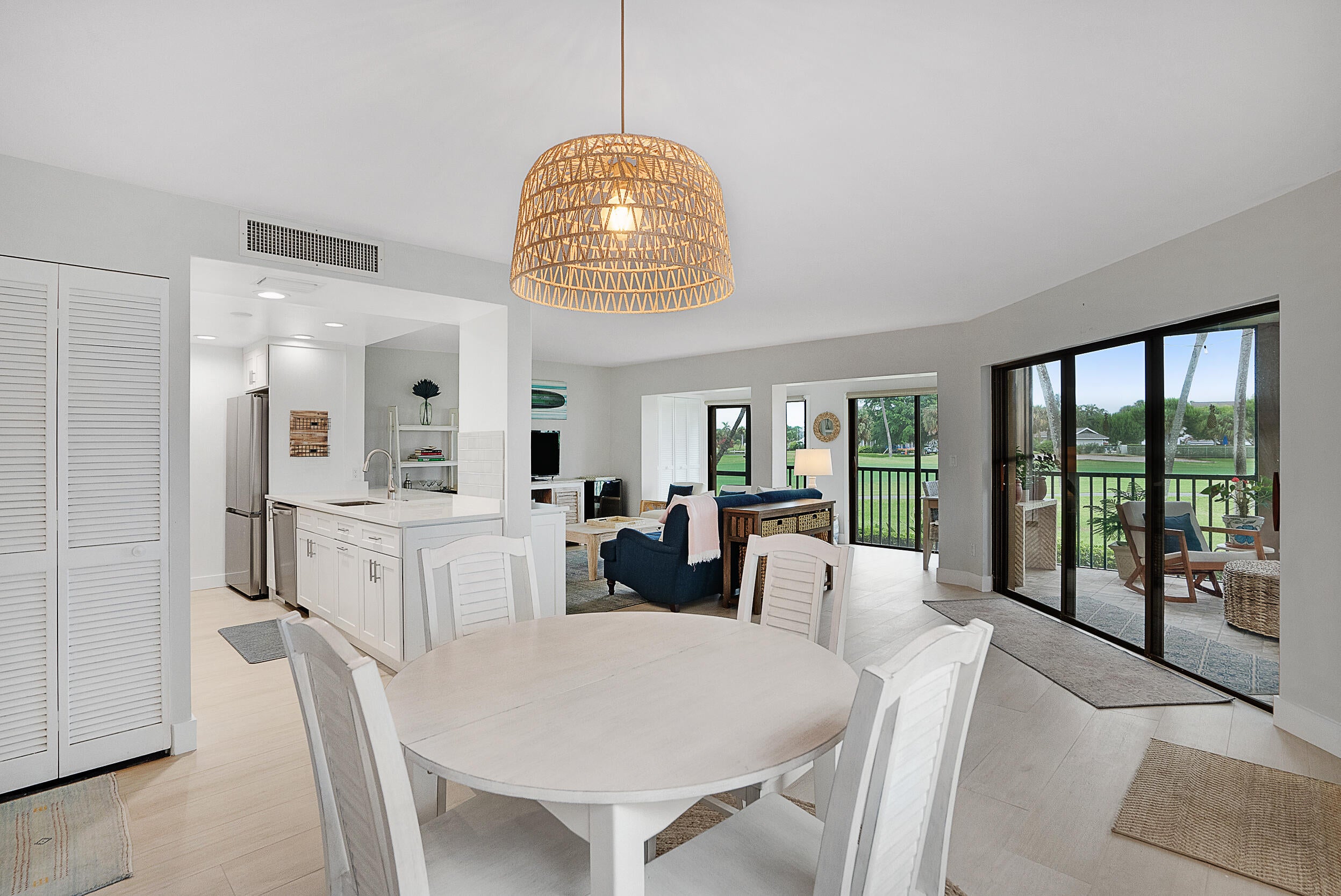 Prime location with beautiful views of the golf course and lake, just a short stroll to the beach! This bright and airy first-floor end unit, fully redone last year, offers two spacious bedrooms and two full baths. The updated white kitchen features Quartzite countertops, stainless steel appliances, and a breakfast bar, opening to a light-filled living area. New vinyl flooring and fresh interior paint give a modern touch. The master bedroom opens to a private patio, perfect for relaxation. Enjoy dining indoors or out on the covered, screened patio, perfect for catching the cool breezes. A rare 1-car garage provides extra storage. Amenities include a heated pool, tennis courts, and BBQ area, with optional membership available.