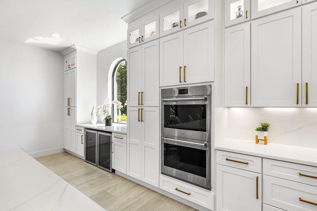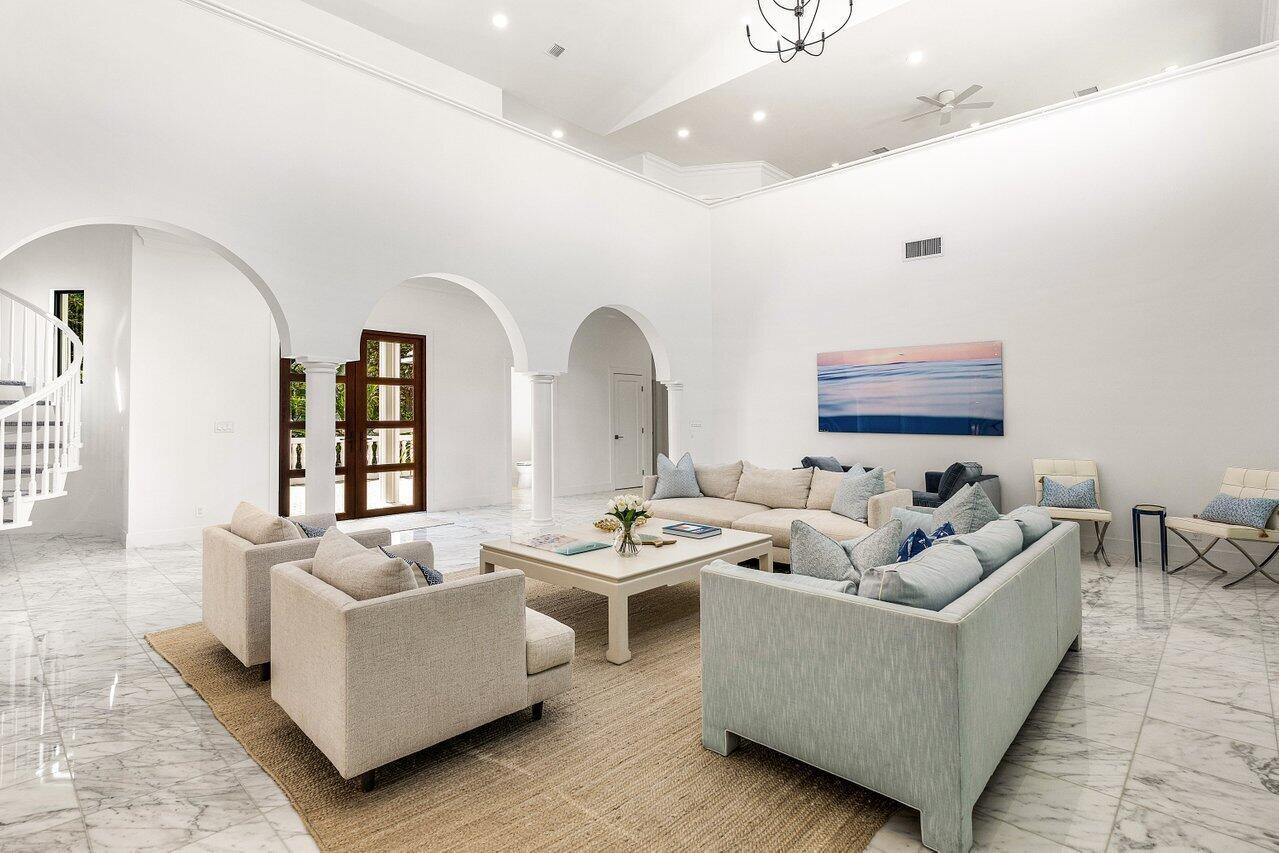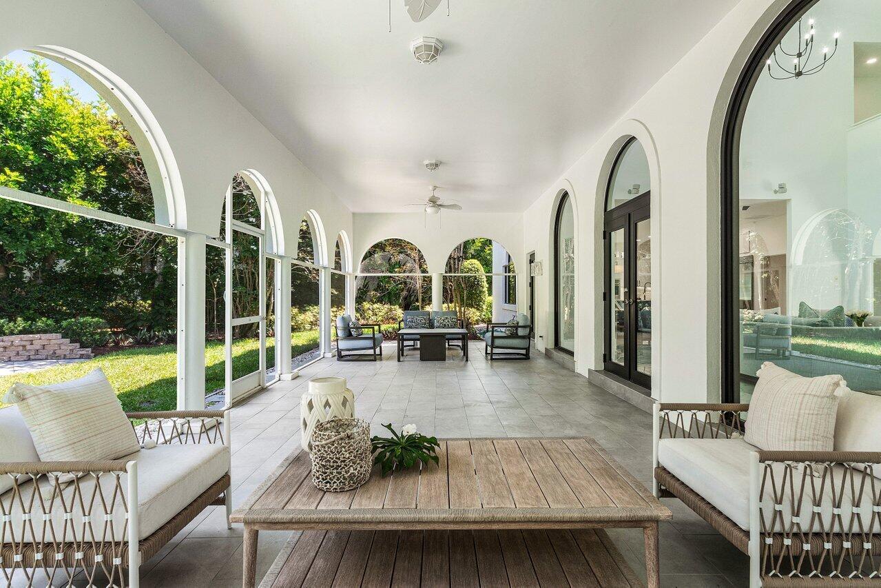 A rare opportunity awaits to own a fully renovated single-family home in the exclusive, private, gated golf community of Jupiter Hills--with no membership required (though optional). Situated on a beautifully landscaped half-acre lot with highly desirable southwestern exposure, this impeccably updated residence overlooks the scenic fairways of one of Florida's most prestigious golf courses. Designed with a sophisticated blend of modern luxury and timeless elegance, the home welcomes you with a dramatic two-story foyer featuring gleaming white marble floors and custom arched impact-rated windows and doors throughout.The main living space is spacious and refined, flowing seamlessly into a gourmet kitchen outfitted with chef-grade WOLF appliances, double ovens, an oversized Sub-Zerorefrigerator, custom wood cabinetry, and a stunning quartz islandperfect for entertaining or family gatherings. The first floor offers two luxurious primary bedroom suites, each with spa-inspired bathrooms, stone detailing, backlit mirrors, and custom walk-in closets with smart built-ins. This layout allows for a private Owner's Wing, with the second suite serving as an ideal office, gym, or media room. Upstairs, two additional guest bedroomsone with balcony accessare accompanied by a generous loft area with a built-in bar and private balcony, ideal for large-scale entertaining. Throughout the home, you'll find marble and porcelain flooring, designer lighting by Serena & Lily, and a whole-home mesh WiFi system. Outdoor living is effortless with a spacious screened lanai and a grand pillared balcony on the second floor, all surrounded by lush, tropical landscaping and serene golf course views. Exterior features include a brand-new slate tile roof, stone patios, and new gutters. Jupiter Hills, founded by Bob Hope and George Fazio, is nestled among two world-class golf coursesThe Hills Course and The Village Course, both ranked among Florida's best. The community boasts the highest elevation in South Florida and a rich natural landscape. Just beyond the gates, residents enjoy quick access to marinas, fine dining, and pristine beaches. Jupiter's shoreline, located along the Gulf Stream, is a haven for sport fishing and provides convenient boating access to the Bahamas. This exceptional home offers not only refined living, but also a coveted lifestyle in one of Florida's most celebrated golf communitieswith no membership required to enjoy it.