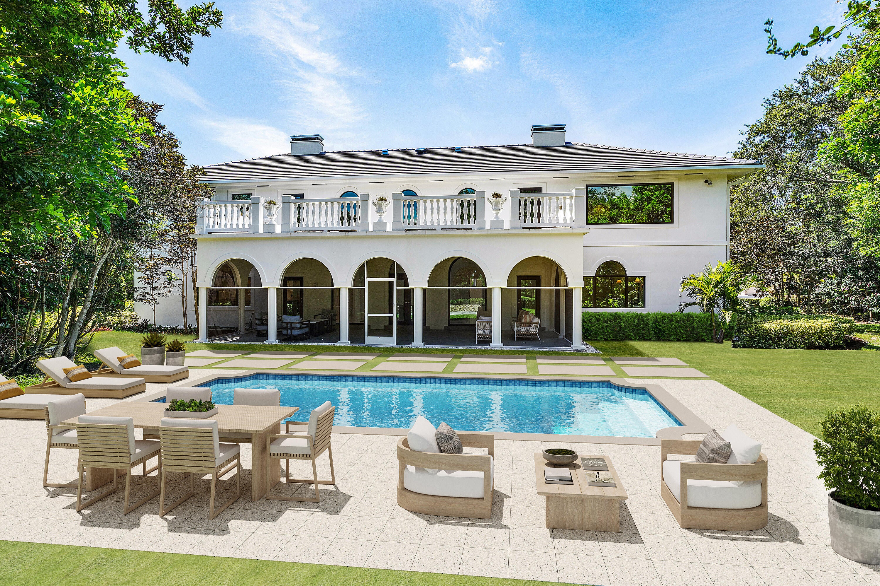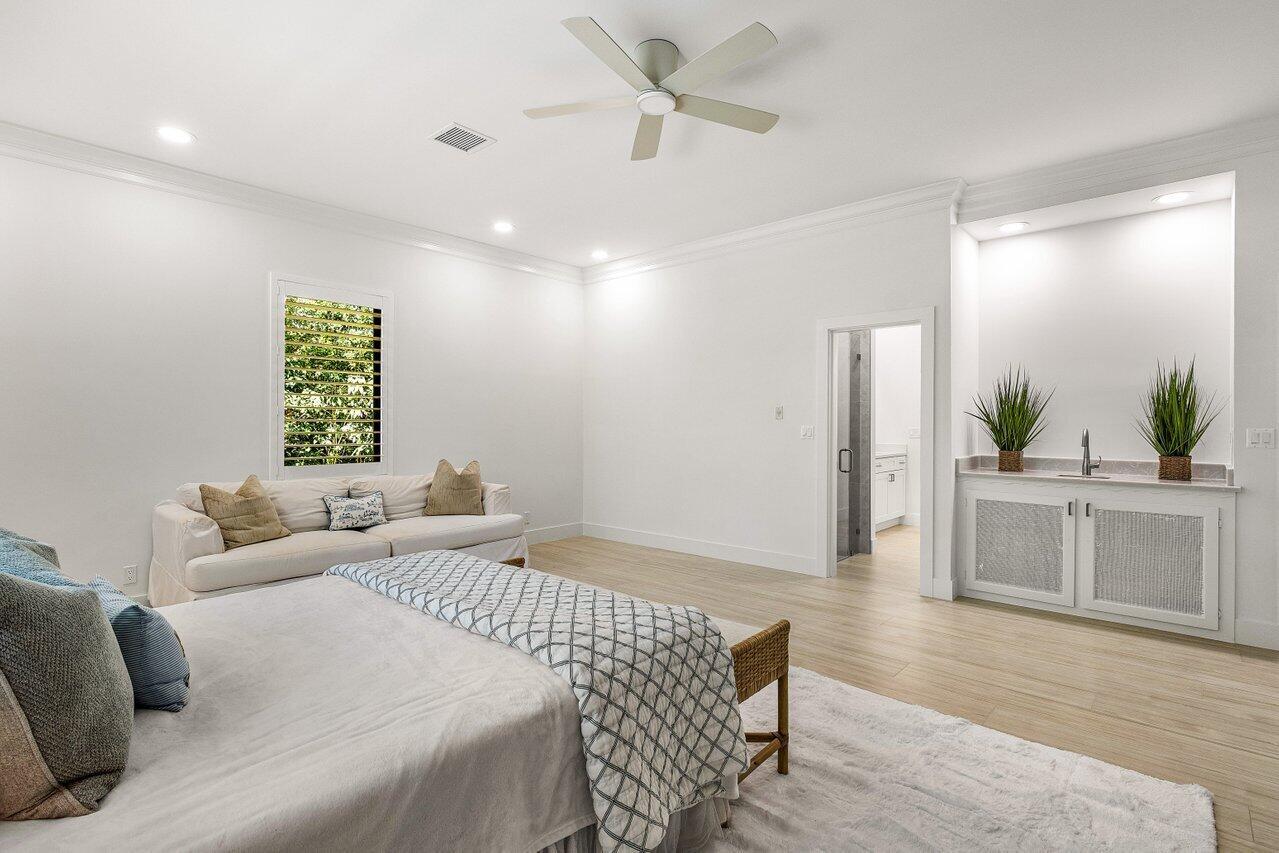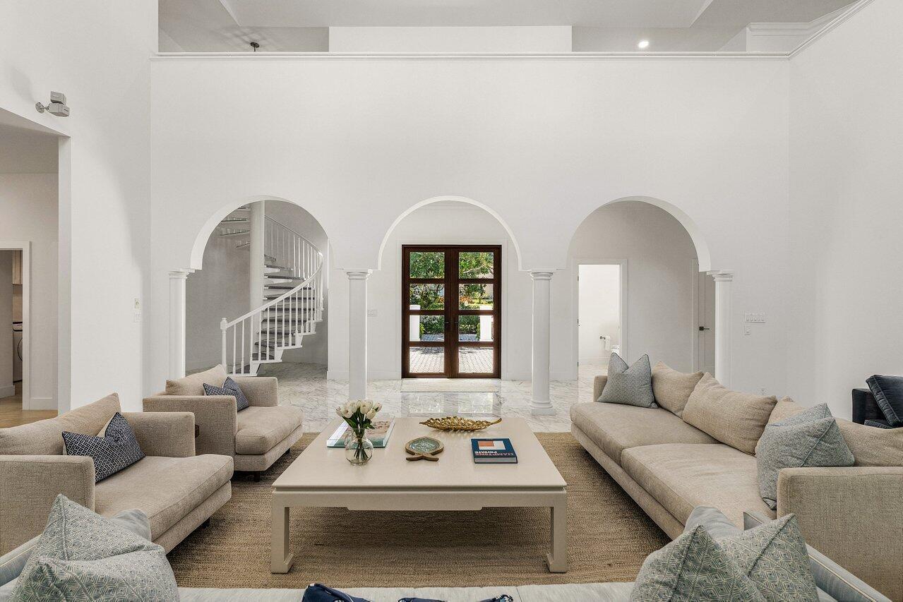 A rare opportunity awaits to own a fully renovated single-family home in the exclusive, private, gated golf community of Jupiter Hills--with no membership required (though optional). Situated on a beautifully landscaped half-acre lot with highly desirable southwestern exposure, this impeccably updated residence overlooks the scenic fairways of one of Florida's most prestigious golf courses. Designed with a sophisticated blend of modern luxury and timeless elegance, the home welcomes you with a dramatic two-story foyer featuring gleaming white marble floors and custom arched impact-rated windows and doors throughout.The main living space is spacious and refined, flowing seamlessly into a gourmet kitchen outfitted with chef-grade WOLF appliances, double ovens, an oversized Sub-Zerorefrigerator, custom wood cabinetry, and a stunning quartz islandperfect for entertaining or family gatherings. The first floor offers two luxurious primary bedroom suites, each with spa-inspired bathrooms, stone detailing, backlit mirrors, and custom walk-in closets with smart built-ins. This layout allows for a private Owner's Wing, with the second suite serving as an ideal office, gym, or media room. Upstairs, two additional guest bedroomsone with balcony accessare accompanied by a generous loft area with a built-in bar and private balcony, ideal for large-scale entertaining. Throughout the home, you'll find marble and porcelain flooring, designer lighting by Serena & Lily, and a whole-home mesh WiFi system. Outdoor living is effortless with a spacious screened lanai and a grand pillared balcony on the second floor, all surrounded by lush, tropical landscaping and serene golf course views. Exterior features include a brand-new slate tile roof, stone patios, and new gutters. Jupiter Hills, founded by Bob Hope and George Fazio, is nestled among two world-class golf coursesThe Hills Course and The Village Course, both ranked among Florida's best. The community boasts the highest elevation in South Florida and a rich natural landscape. Just beyond the gates, residents enjoy quick access to marinas, fine dining, and pristine beaches. Jupiter's shoreline, located along the Gulf Stream, is a haven for sport fishing and provides convenient boating access to the Bahamas. This exceptional home offers not only refined living, but also a coveted lifestyle in one of Florida's most celebrated golf communitieswith no membership required to enjoy it.