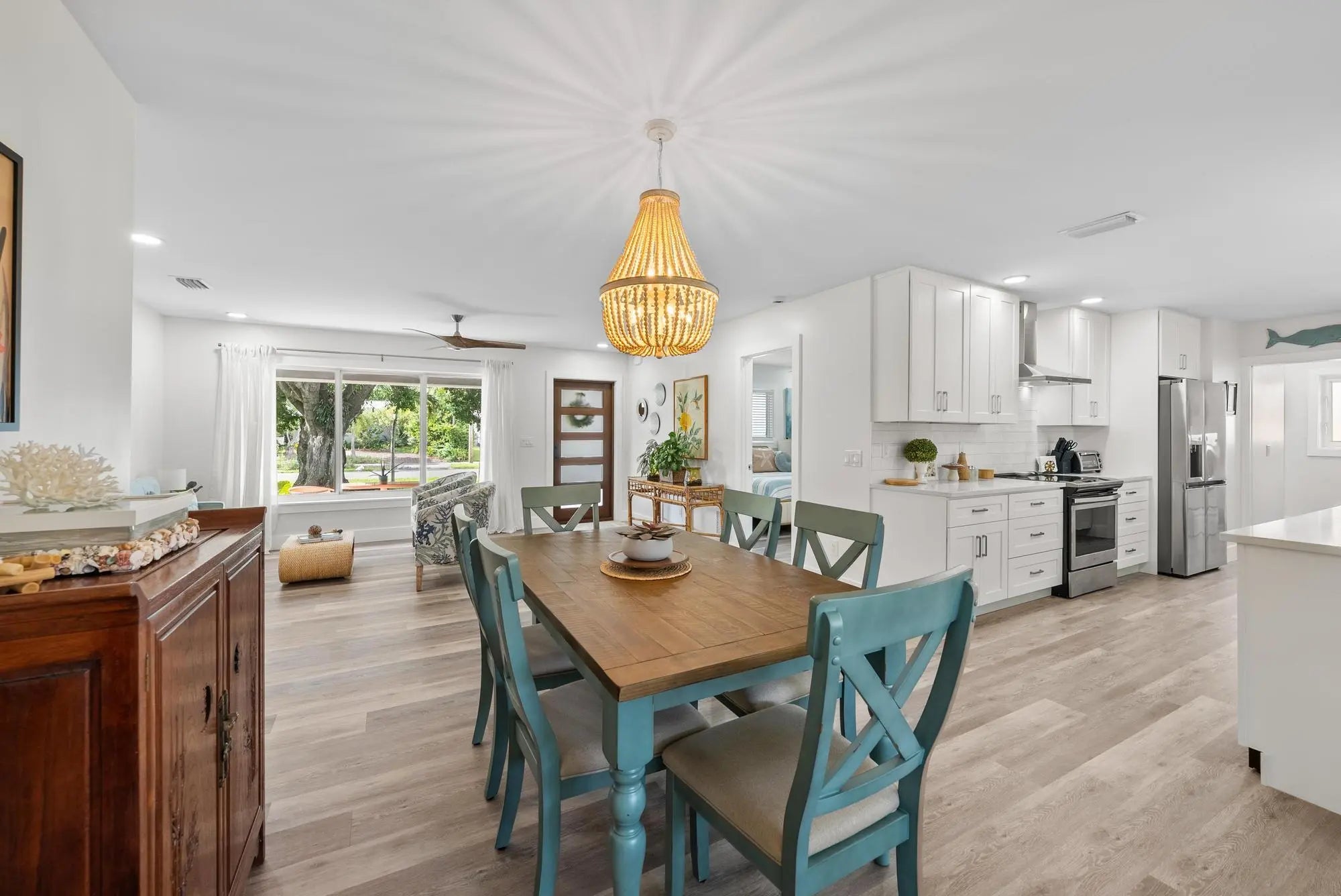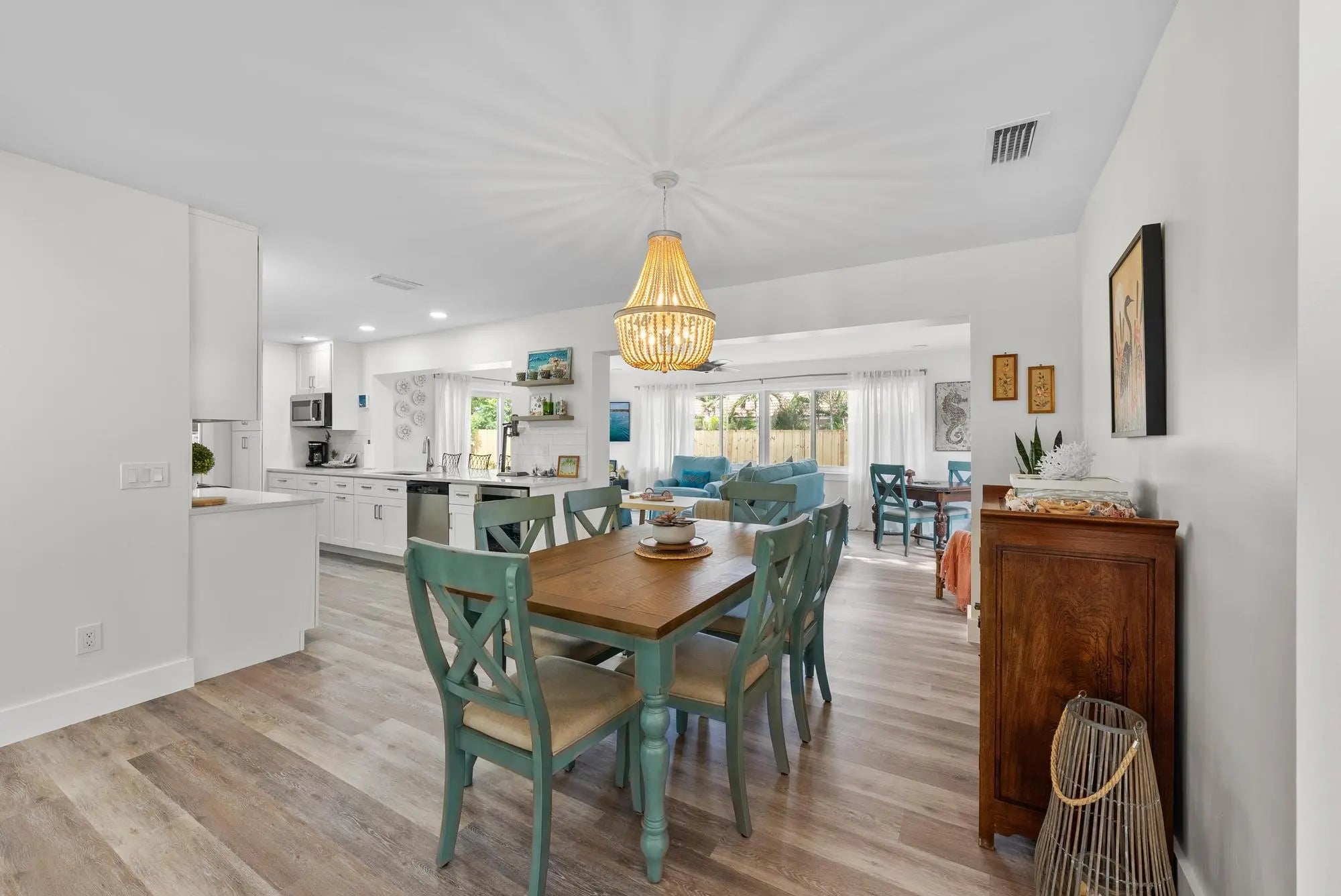 FULLY FURNISHED and TURNKEY. Available January 1 - February 10th, then available April 2026. Welcome to the PERFECT North Palm Beach Getaway! This stunning seasonal rental offers the ideal blend of luxury, comfort, & convenience in a serene neighborhood. Situated in a peaceful & picturesque street, this home is designed for relaxation. Enter & you'll appreciate the open floor plan with clean, coastal accents. The kitchen features elegant white quartz counters, a countertop bar with four bar stools & stainless steel appliances, including a beverage fridge. The dining room table comfortably seats six. Three spacious & beautifully appointed bedrooms offer queen-size beds, flat-screen TVs & fans.