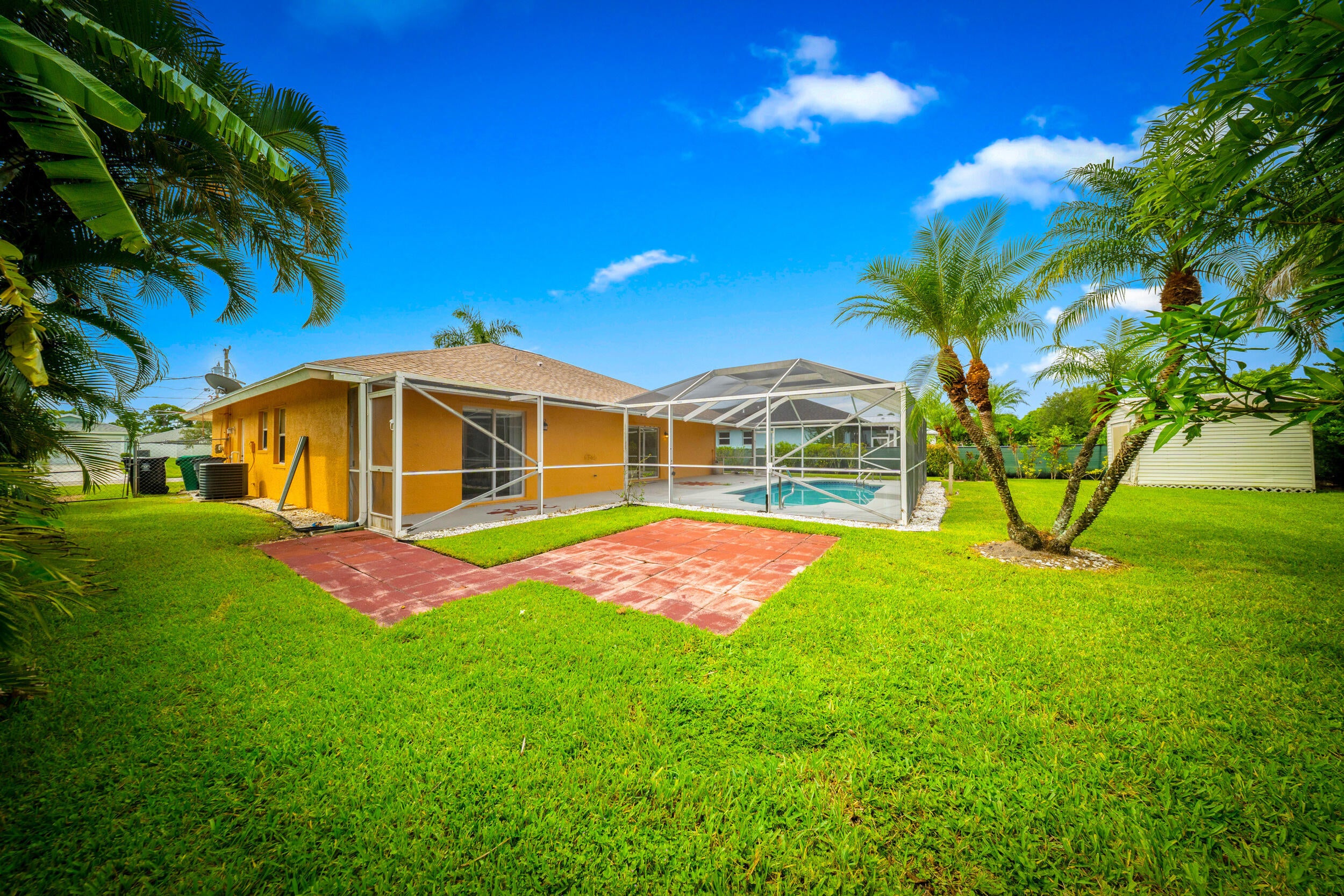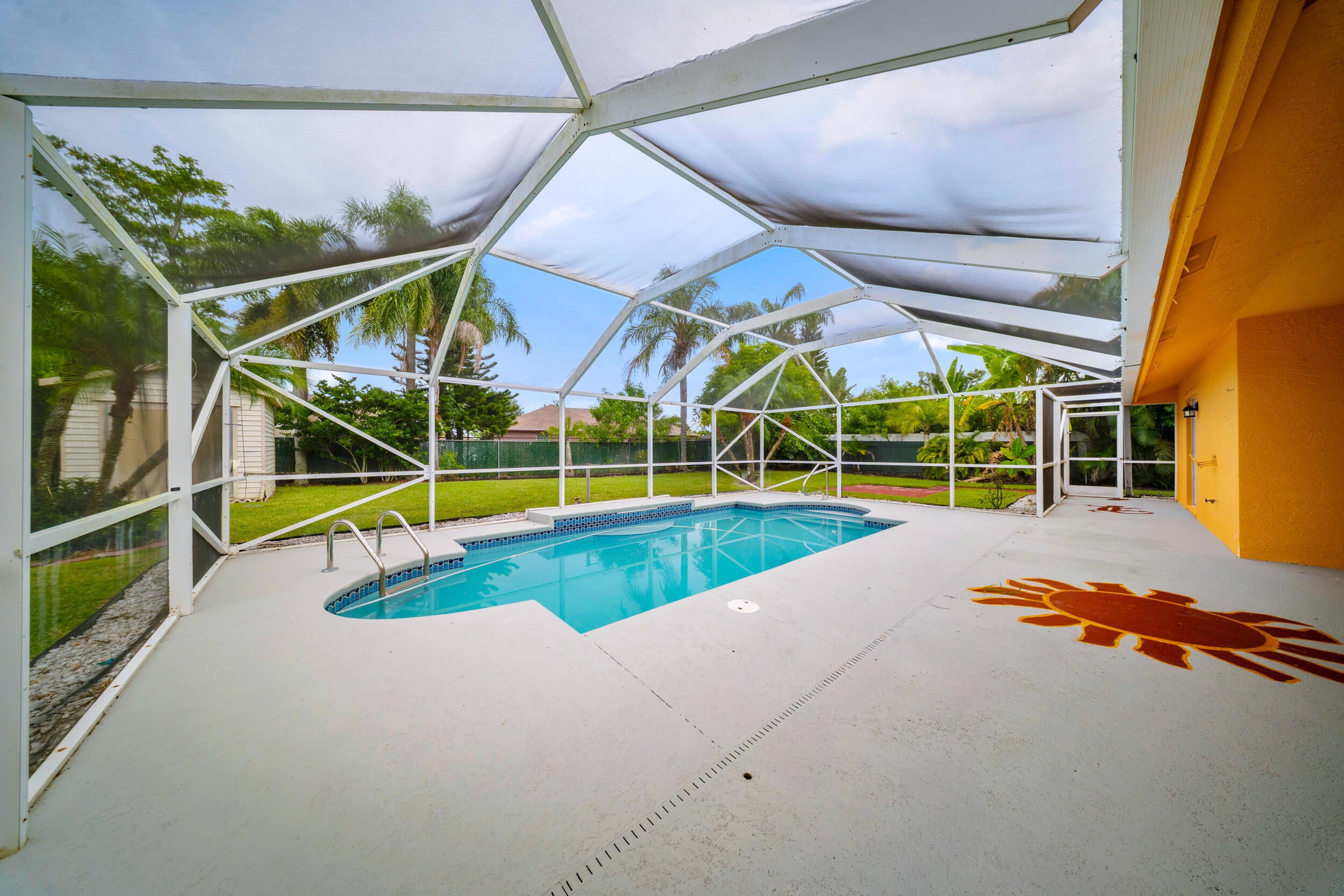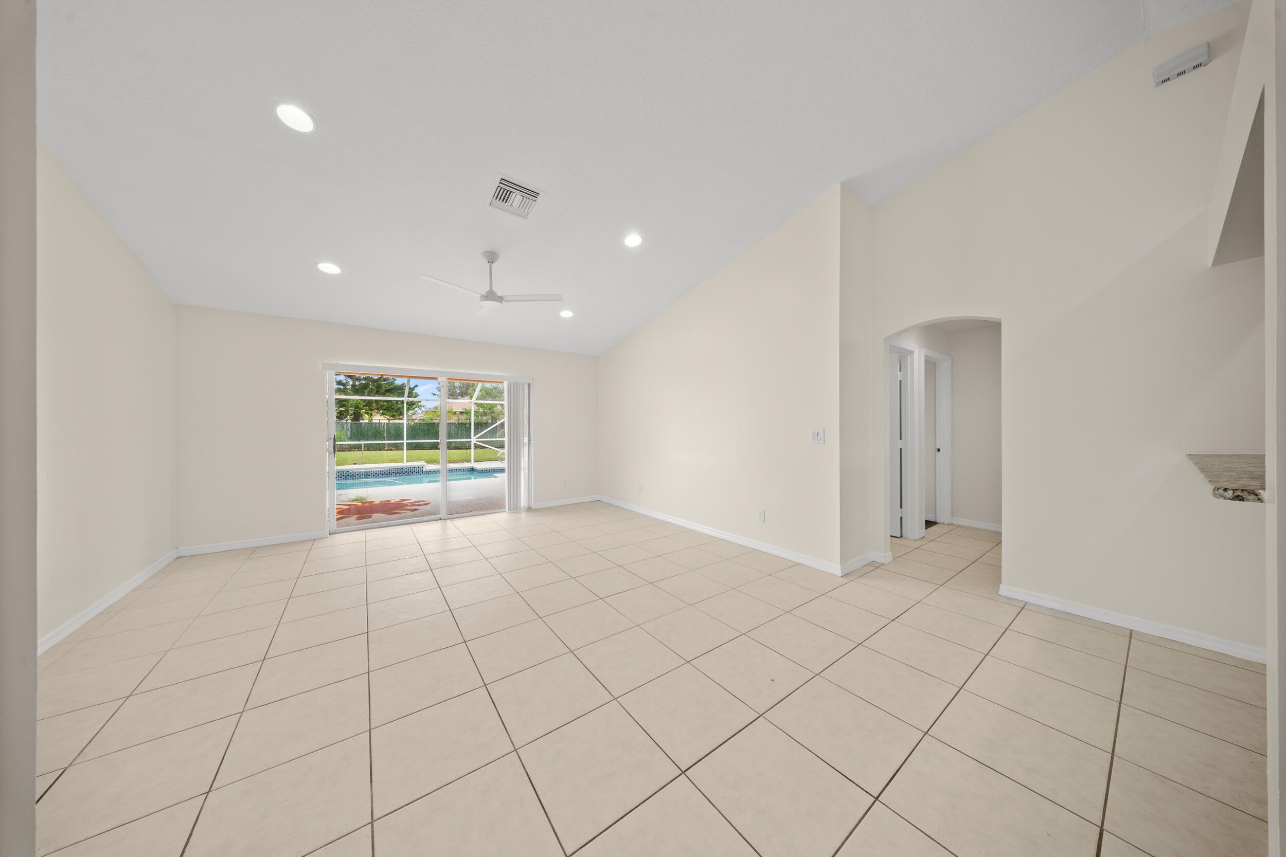 This cozy, well-maintained home features a convenient floor plan, vaulted ceilings, and a spacious kitchen with granite countertops and stainless steel appliances. The split-bedroom layout offers a private primary suite with a large walk-in closet. Enjoy Florida living with a screened-in pool and fenced backyard--perfect for relaxing or entertaining. Located in a quiet, no-HOA neighborhood close to schools, parks, and shopping. Don't miss this Torino gem!