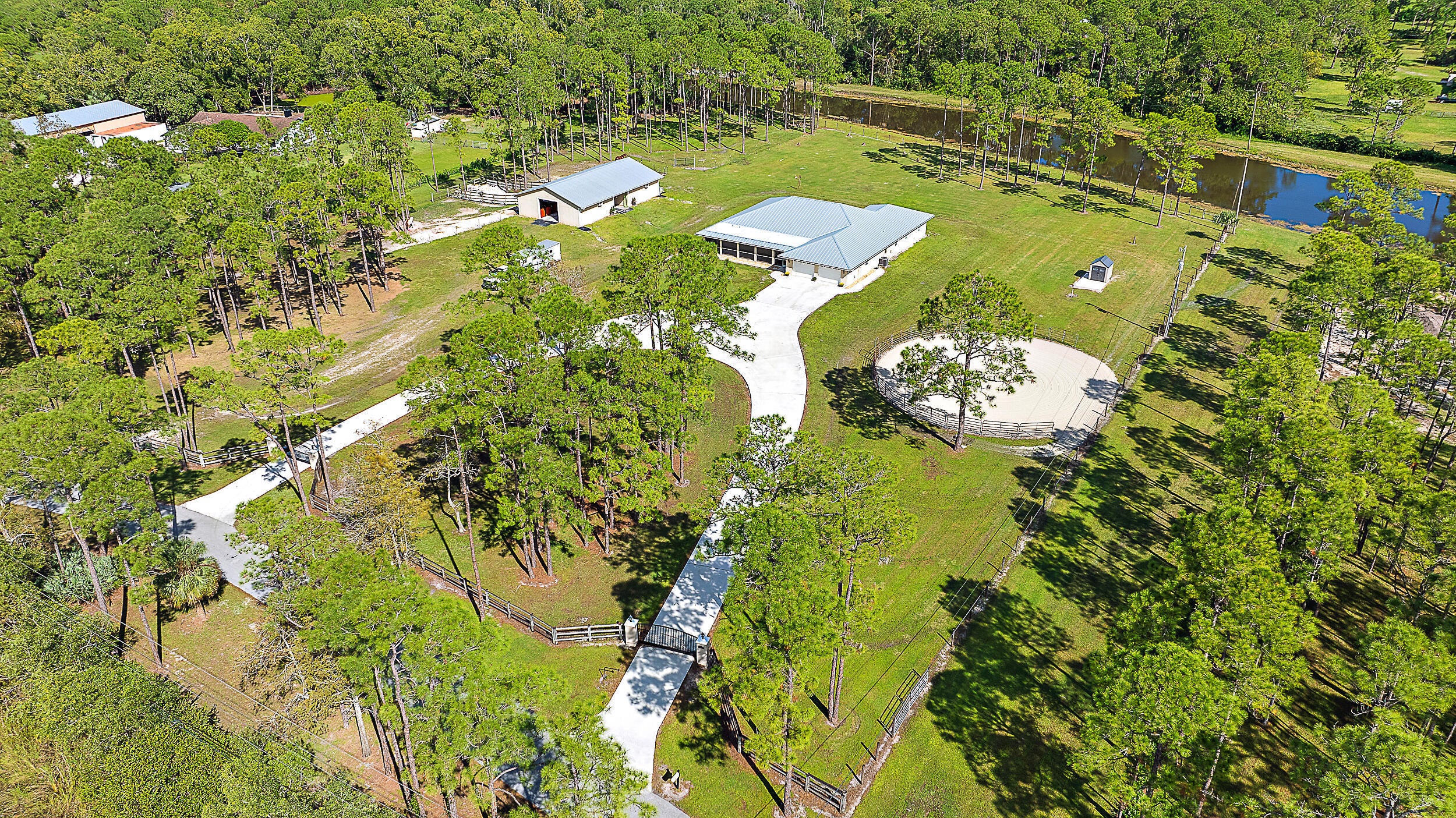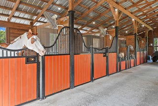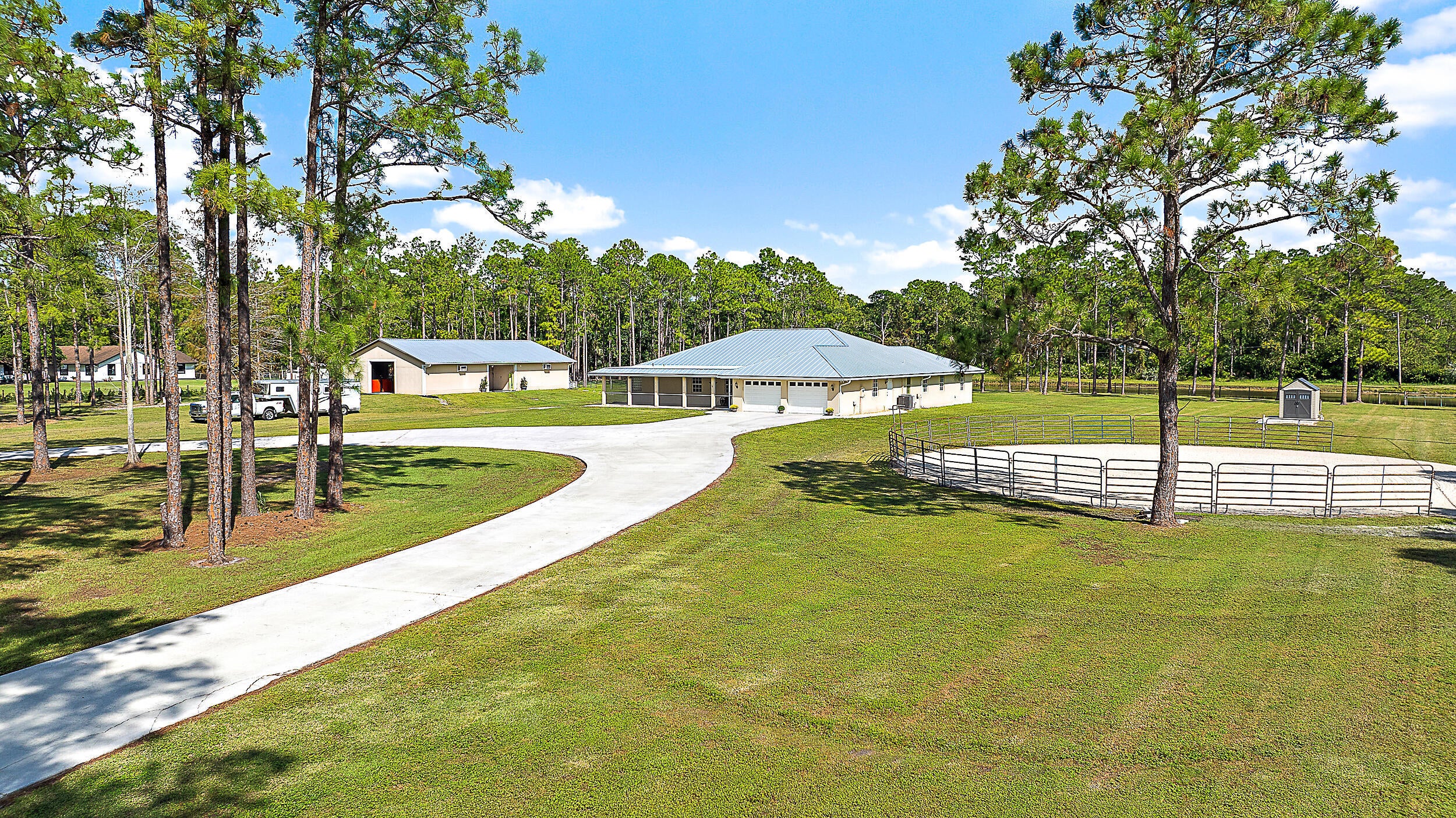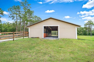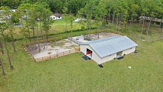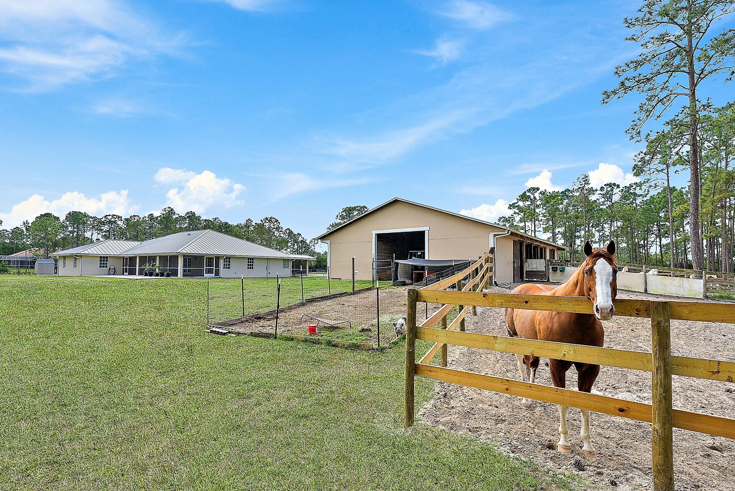A compelling value on 5 acres, this CBS-built home offers nearly 3,000 sqft under air, a metal roof (2022), and a 2,000+ sqft center-aisle barn (2018). The fully fenced property provides ample opportunity to customize - add an arena, expand outdoor spaces, or incorporate amenities to suit your lifestyle. The home features a split floor plan, a 702 sqft garage, and front & back screened-in porches. The 2018-barn has 5 stalls, climate-controlled feed & tack rooms, and multiple turnouts & paddocks.Caloosa community amenities include miles of riding trails, a 32-acre horse park, pickleball courts, playground, and picnic areas, all with low HOA dues. Conveniently located minutes from shopping, dining, and top-rated schools. Metal Roof (2022), Barn (2018), HVAC (2018), Water Heater (2015).