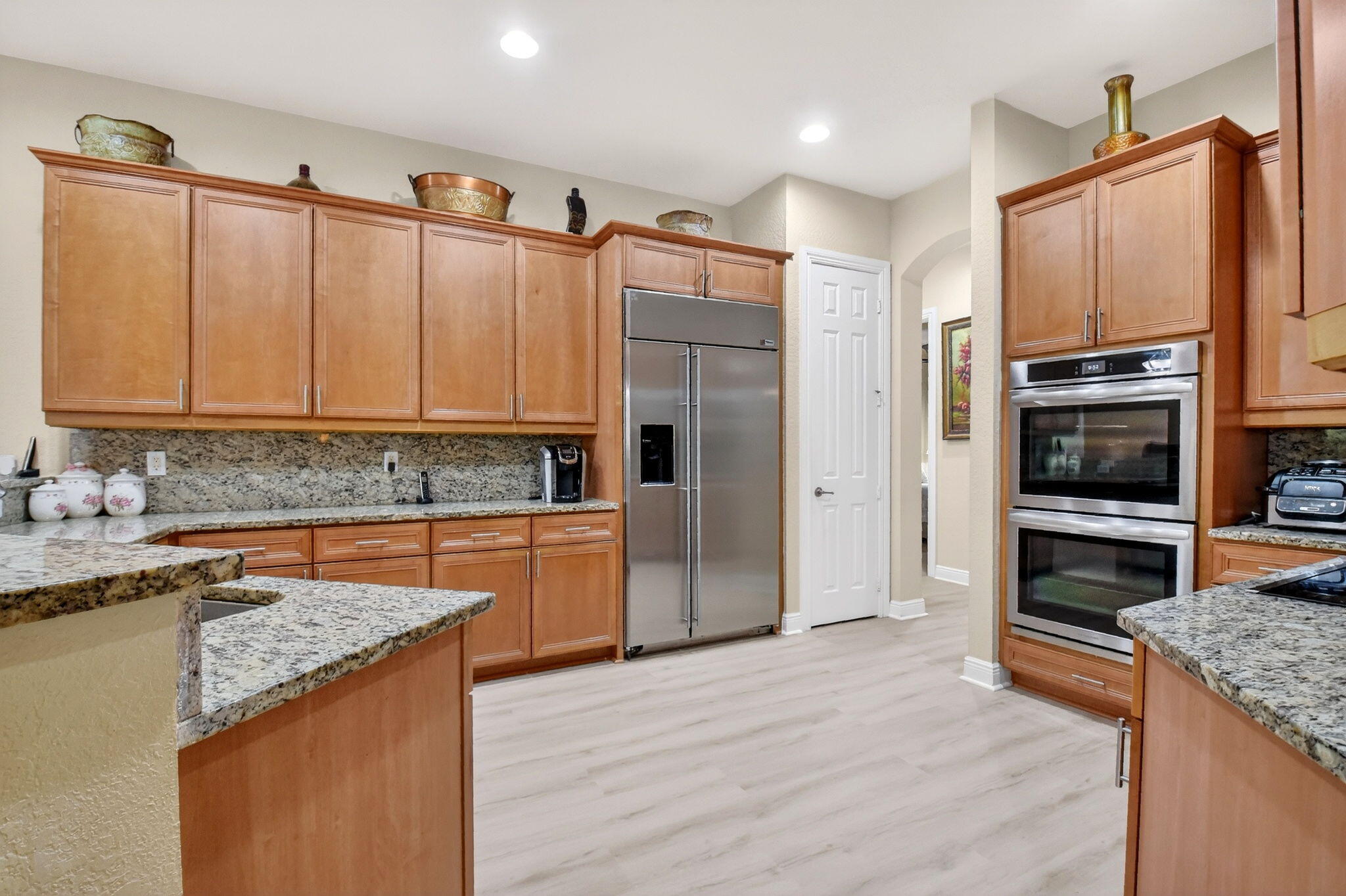 Luxury abounds in this single family pool home, in all-ages, gated Case Bella. A chef's kitchen overlooks the expansive family room. Finished with granite, wood cabinetry, dual wall ovens, a cooktop and a countertop bar. The tall ceilings and abundance of natural light provide a tremendous sense of space.The grand primary bathroom features dual vanities, a separate walk-in shower, a jacuzzi tub and 2 walk-in closets. Retreat to the large back patio with your favorite drink and take a dip in the just resurfaced pool. Many extras include brand new luxury vinyl plank tile throughout, a whole-house generator, natural gas available, accordion shutters, high-hat lighting, coffered ceilings, central vacuum and partially upgraded plumbing.The monthly maintenance fee includes lawn maintenance, landscaping and irrigation. The Casa Bella community is located in an A+ rated school district for elementary, middle and high-schools (Calusa Elementary, Omni Middle, and Spanish River High). The community is on a straight line to the restaurants, cafes, bars and shopping of East Delray Beach. Also in close proximity is the Turnpike and the Delray Market Place. Amenities of Casa Bella include a clubhouse, community pool, a basketball court and a playground. The house exudes a sense of luxury that needs to be felt in person. Arrange a showing to experience it.
