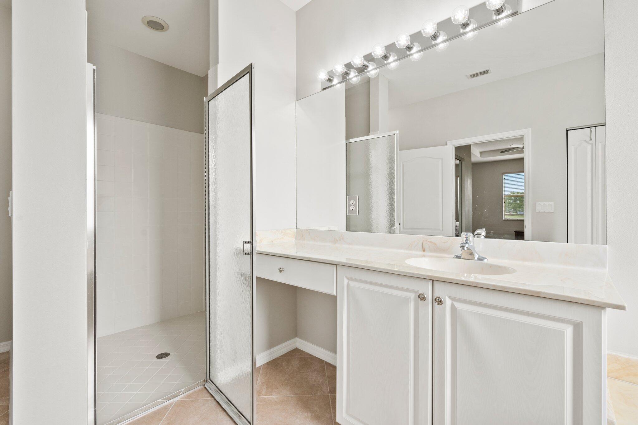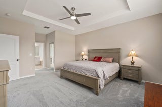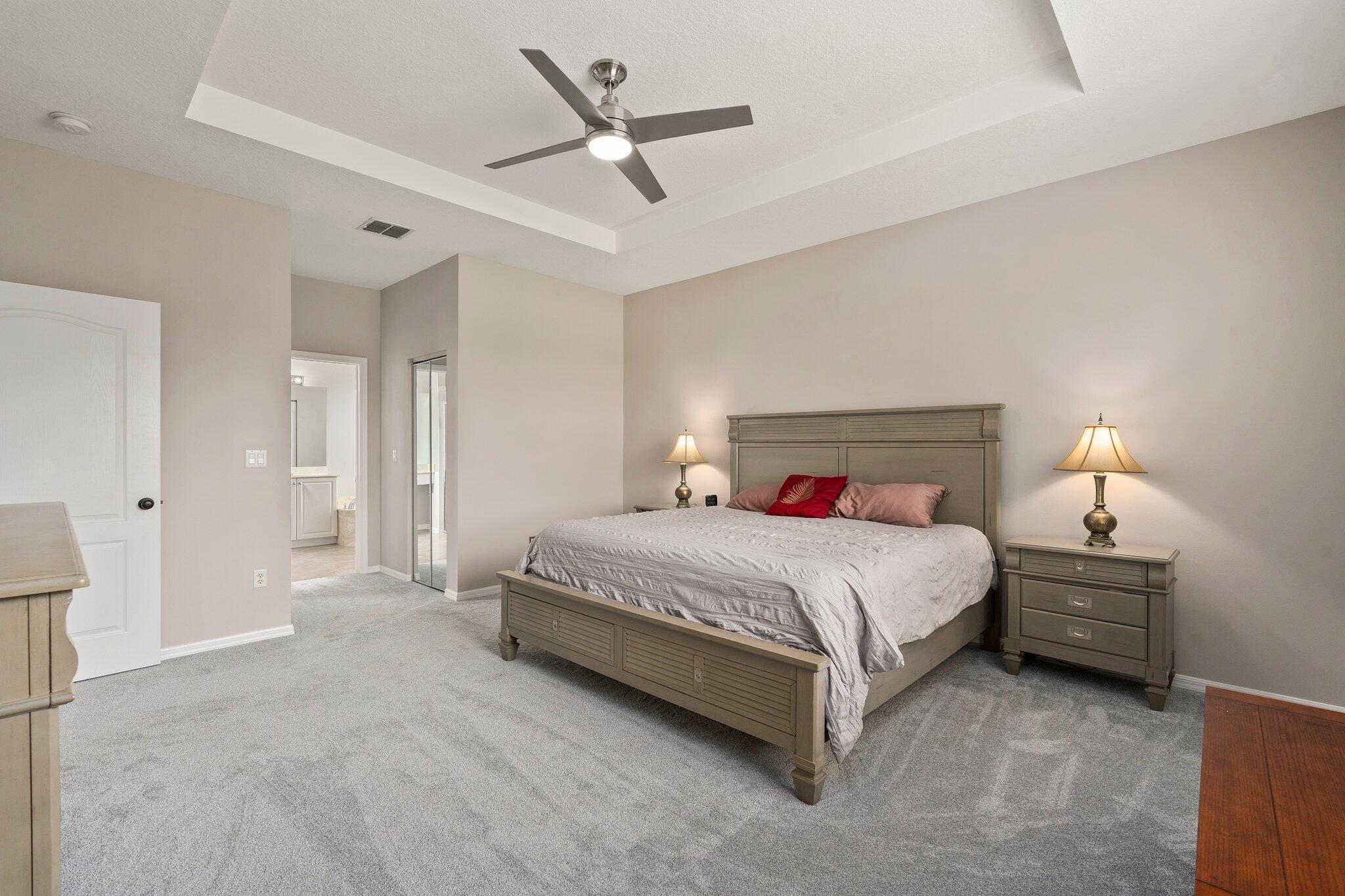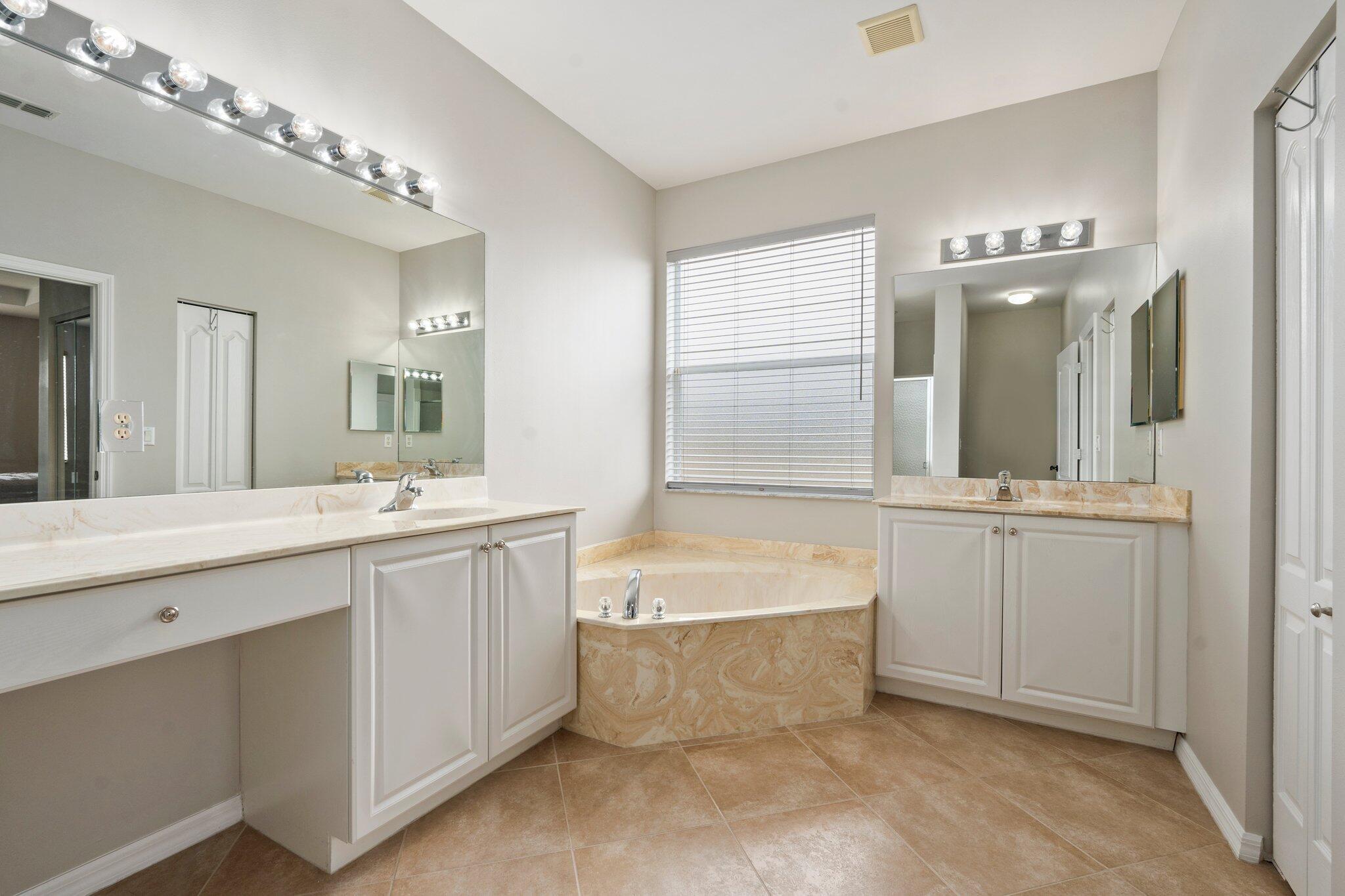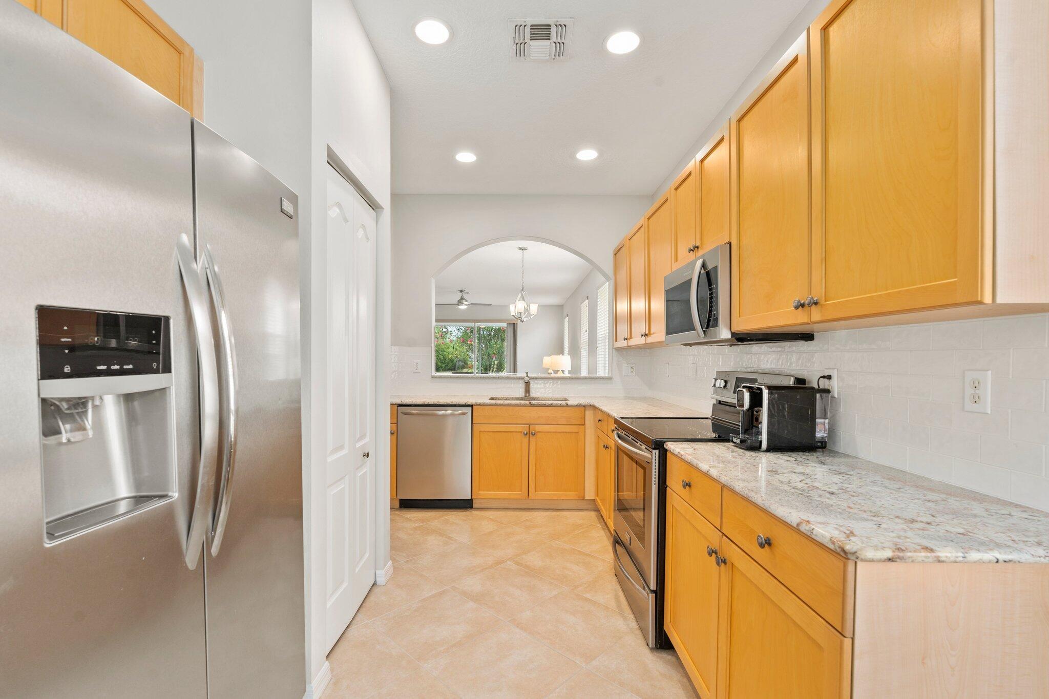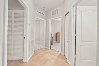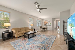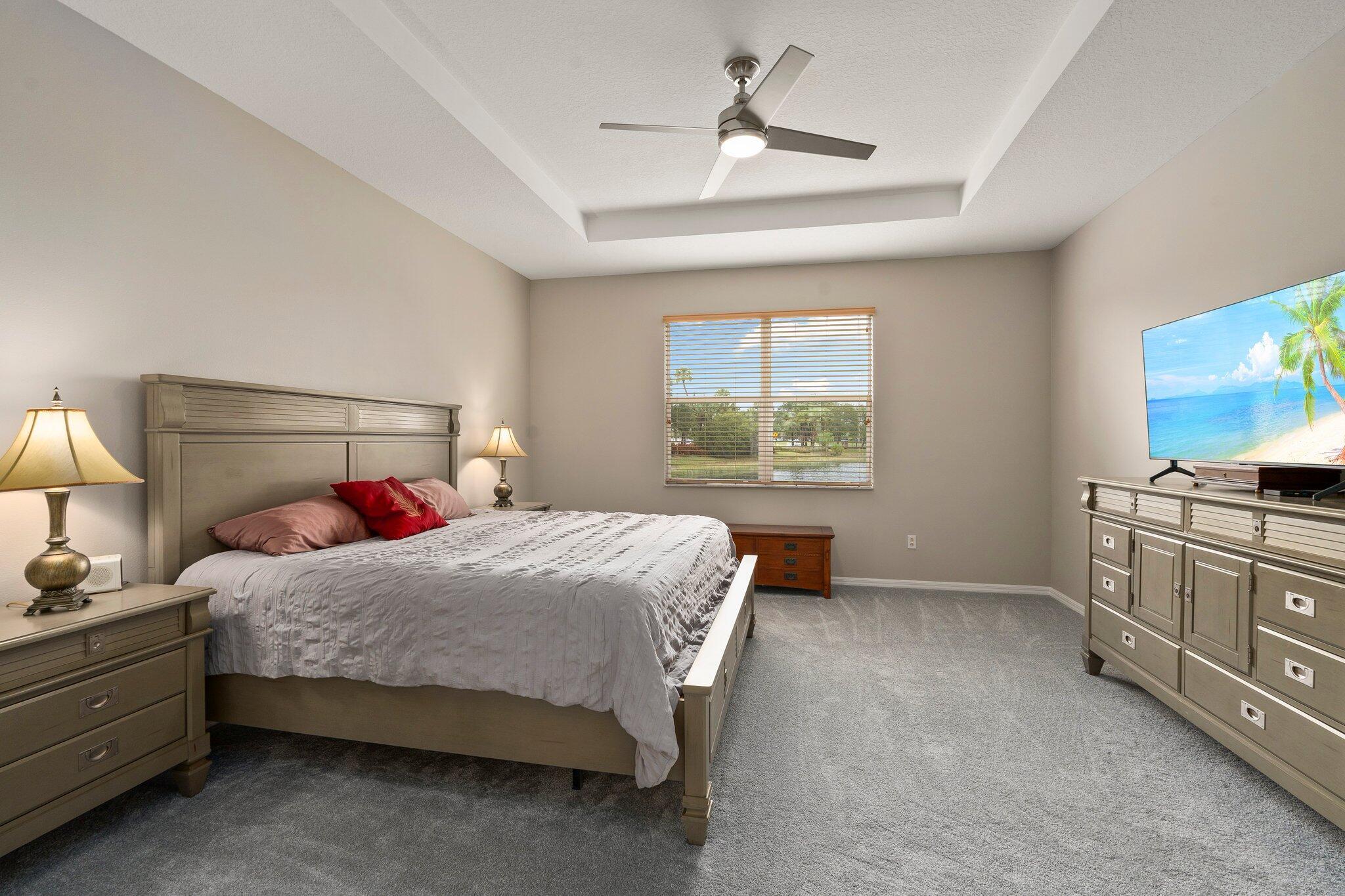 Move-in ready Victorian model in the gated Heritage Oaks community of Tradition, offering serene lake views and ultimate privacy. Situated on a pie-shaped, premium lot with no rear neighbors and an empty lot next door, this well-maintained 3-bedroom, 2-bathroom home features a bright, open floor plan with fresh interior and exterior paint, new carpet in the bedrooms, and tile throughout the main living areas. The spacious living and dining areas include a kitchen pass-through and an archway that leads to a breakfast nook with garden views. The updated kitchen showcases granite countertops, stainless steel appliances, a pantry, and recessed lighting. The generous master suite offers two walk-in closets, a tray ceiling, and an ensuite bath with dual vanities, a separate soaking tub, and alarge walk-in shower. Two guest bedrooms and a full bath are located at the front of the home, providing ideal separation for privacy. Enjoy outdoor living on the covered, screened-in patio overlooking the tranquil lake. Additional features include a laundry room, epoxy-coated 2-car garage floor, new hot water heater, and vibrant landscaping. Heritage Oaks amenities include a clubhouse, resort-style pool, hot tub, fitness center, and social room. HOA fees cover lawn maintenance, basic cable, and internet. Conveniently located minutes from I-95, Cleveland Clinic, and all the shopping, dining, and entertainment that Tradition has to offer.