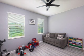 Welcome to this stunning Brilliance model smart home in the desirable Copper Creek community, showcasing an upgraded stone elevation and breathtaking lake views from nearly every room. Enjoy gorgeous sunsets from your extended patio or relax in the fully fenced backyard with extended pavers and lush hedging that provide both privacy and unobstructed views. Step inside to wood-paneled accent walls in the foyer, a gourmet kitchen overlooking the dining and great room, and a cozy stone-accent wall with a built-in fireplace. Custom closets, stylish fixtures, and thoughtful upgrades complete this home. Conveniently located near a K-8 school, this family-friendly community offers everything you've been looking for.