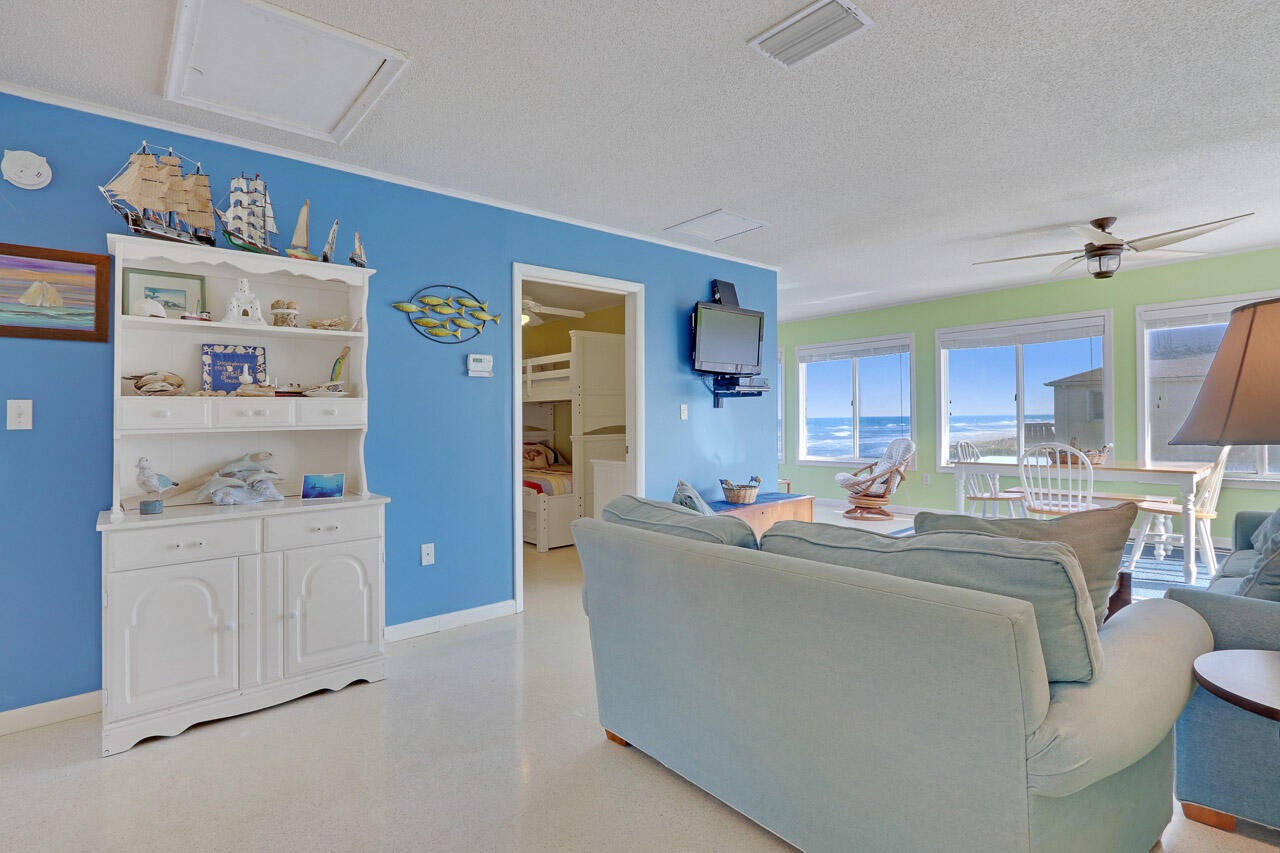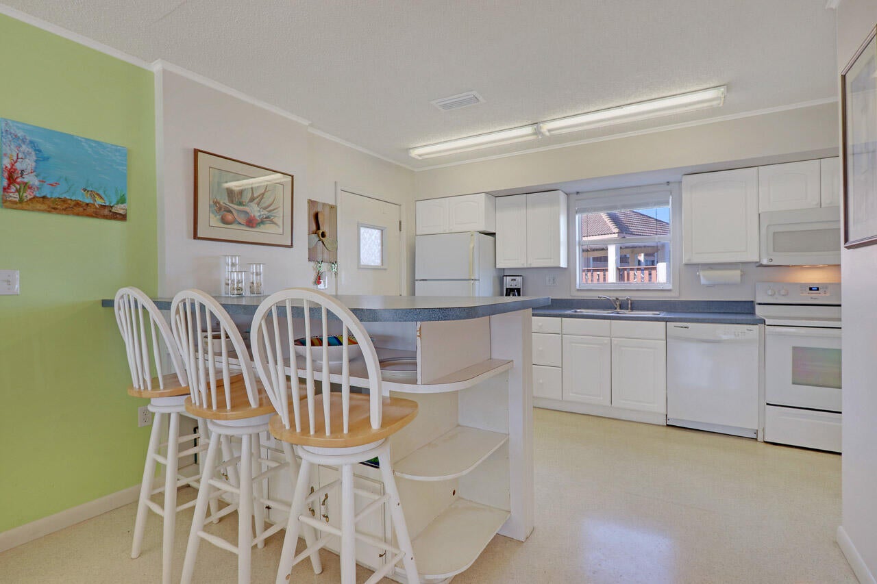 AVAILABLE DECEMBER 2025 AND APRIL 2026! Most desirable END unit in Little Ocean Place with amazing ocean views on the second floor! A few steps to the beach! Lovely 2 bedroom condo with beachy decor, comfortable furniture, washer/dryer, community pool. All utilities included. Just adorable! One parking space only, no trucks and no pets. Don't miss out on this beauty!