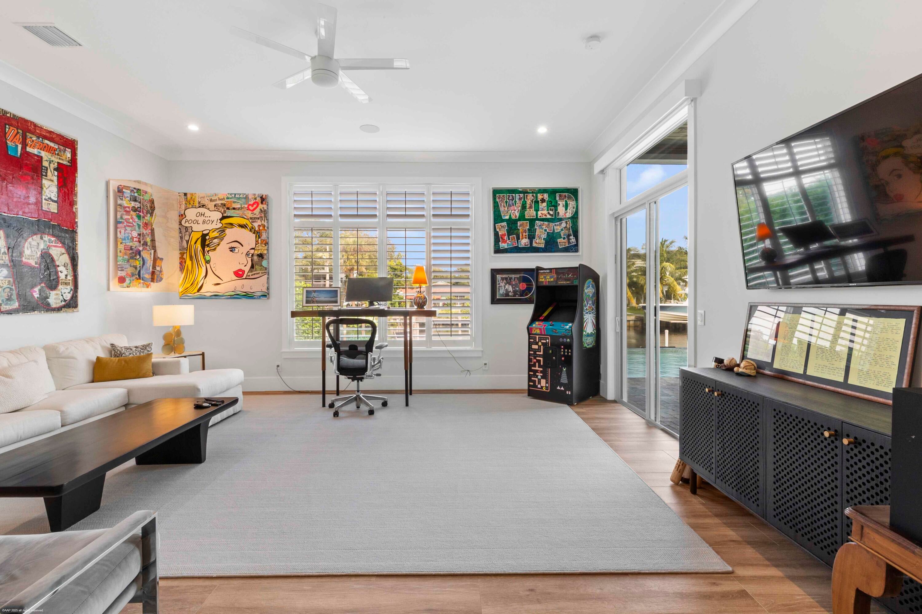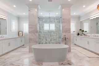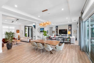 Built new in 2020, this fabulous Palm Beach Gardens Modern Island Smart Home boasts 5 bedrooms and 5.5 baths and over 7900 of total sq ft! The open floor plan includes a Gourmet Chef's kitchen with 2 large islands and a huge pantry! A wall of French Doors all open to a massive covered and screened patio with a summer kitchen and a beautiful heated infinity pool/spa and 100' of waterfront including a boat dock!The primary suite is stunning with a massive bath and huge closets. All the bedrooms upstairs access a large open balcony to capture the water views or to watch a sunrise or sunset. The home has high ceilings with recessed lighting, Plantation Shutters, an elevator and a whole house generator. It's a boaters paradise yet just minutes away from everything.