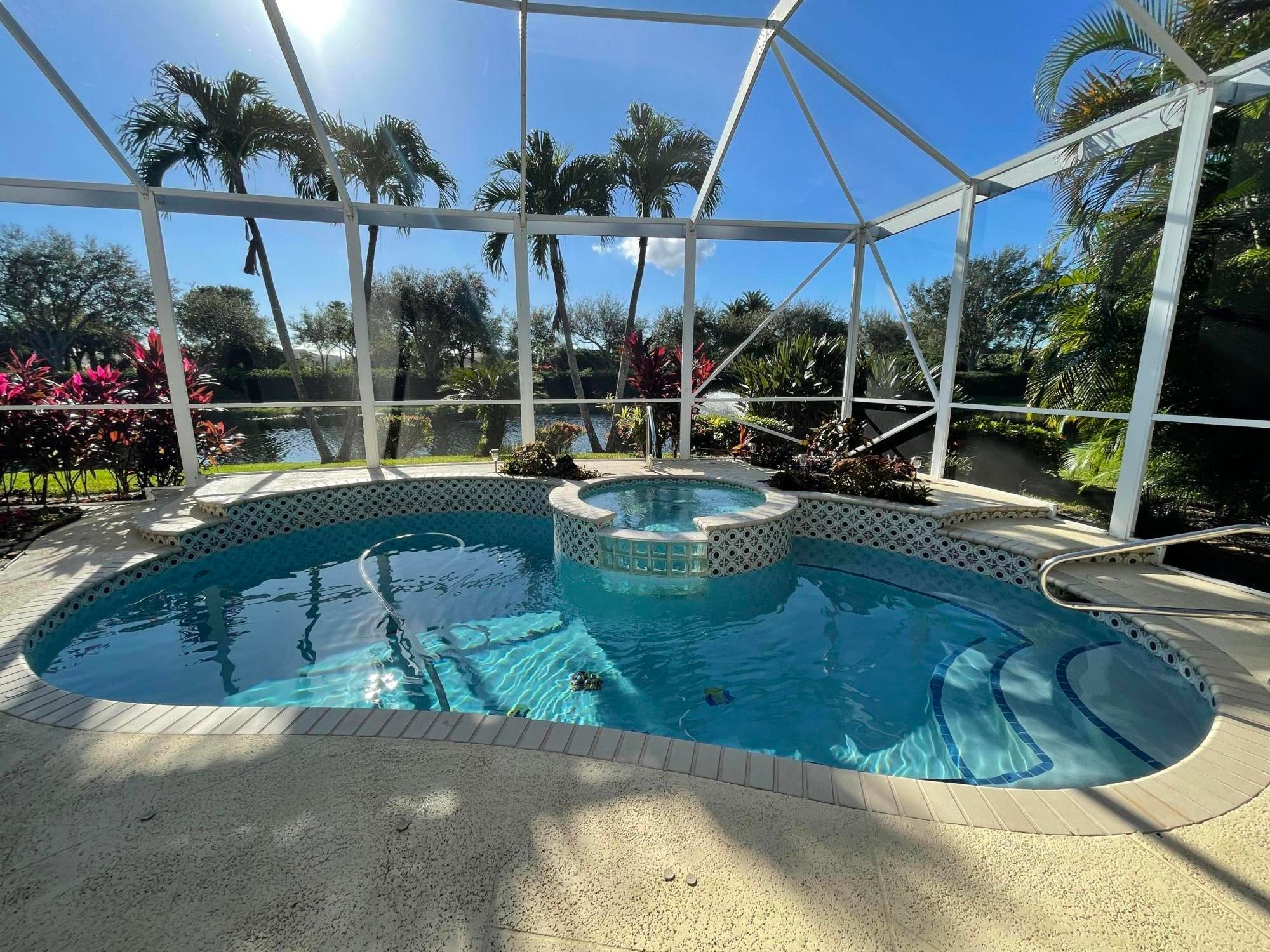Fabulous OFF SEASON rental available for 2026! Immaculate single-family home with peaceful lakefront view located inside the private gated community of Eagleton. Exceptional spacious backyard with private pool, spa, dining area with grill and outdoor tv. Three bedrooms plus dedicated den/office. 3 full baths. Large great room with 12' ceilings. Updated kitchen with granite counters, S/S appliances - a chef's delight! Tastefully decorated & meticulous! Newer roof and hurricane impact glass throughout helps to make for a stress-free spring and summer! Sit back, relax and enjoy this very special home! $3950/month for a six-month rental starting on April 16, 2026. Shorter term rates can be discussed, and dates are flexible. NO PETS, NO SMOKING. Home has been rented for 2026 season.