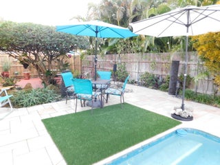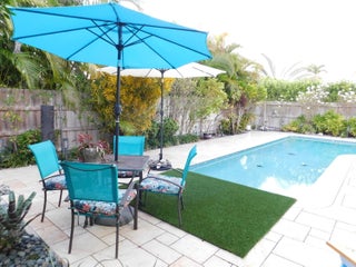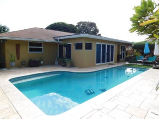 Move right in to this beautiful pool home with no HOA, all impact windows and doors. No rental restrictions- use as an AIRBNB, or you can bring boat, RV, (buyer to confirm w any city restrictions). Large 1/4 acre lot with private, tropical backyard that features covered sitting area, 15x30 pool w travertine deck, & custom landscaping. Kitchen updated w/ granite counters, full granite backsplash, recessed lighting w/ stainless steel natural gas appliances. Huge family room with vaulted ceiling, and Split floorplan for privacy. Beautifully remodeled baths, with granite counter in master bath, large walk in shower with upgraded spray features and glass divider. Guest bath has jetted tub and nicely updated. Single family home in the heart of Palm Beach Gardens with no HOA is rare.Roof redone 2013. Glass cooktop with downdraft vent over the Natural gas cooktop. Natural gas fireplace and water heater. Electric panel and pool was updated in 2015. Marble countertops in both bathrooms- Master bath features touch light LED lighting. The home has a newer garage door 9/2025, newer fencing around the backyard and authentic key west shell rocks throughout the garden. Detailed landscaping with Mature mango trees that produce magnificent fruit throughout the summer. All sizes are approximate and deemed to be correct. Buyer to confirm on their own.