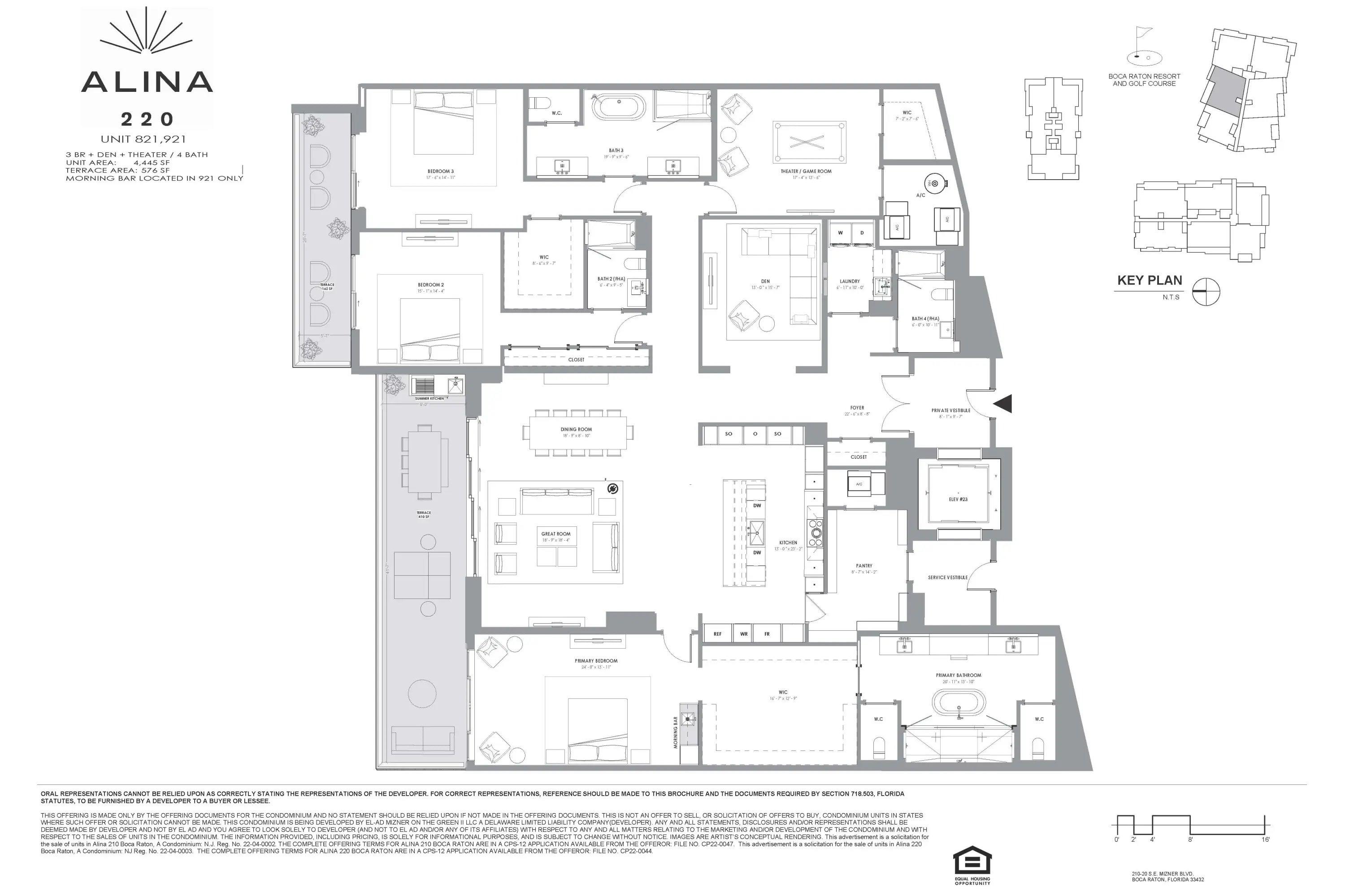 One of the last remaining Developer residences available! Brand-new and move-in ready, this North-East facing Penthouse at ALINA tower3 offers ocean, golf, and city views from every room. Featuring 3 bedrooms + media room + office, 4 full baths, and soaring 11' ceilings with floor-to-ceiling glass, this residence is the epitome of modern luxury. Enjoy three spacious terraces--including one with a Summer Kitchen--and a serene Primary Suite with Morning Bar. Perfectly positioned in Downtown Boca Raton, ALINA's award-winning amenities include resort-style pools, dog park, spa, fitness, valet, guard gate and concierge services. Schedule your private tour with the in-house sales team today! Developer Residence.