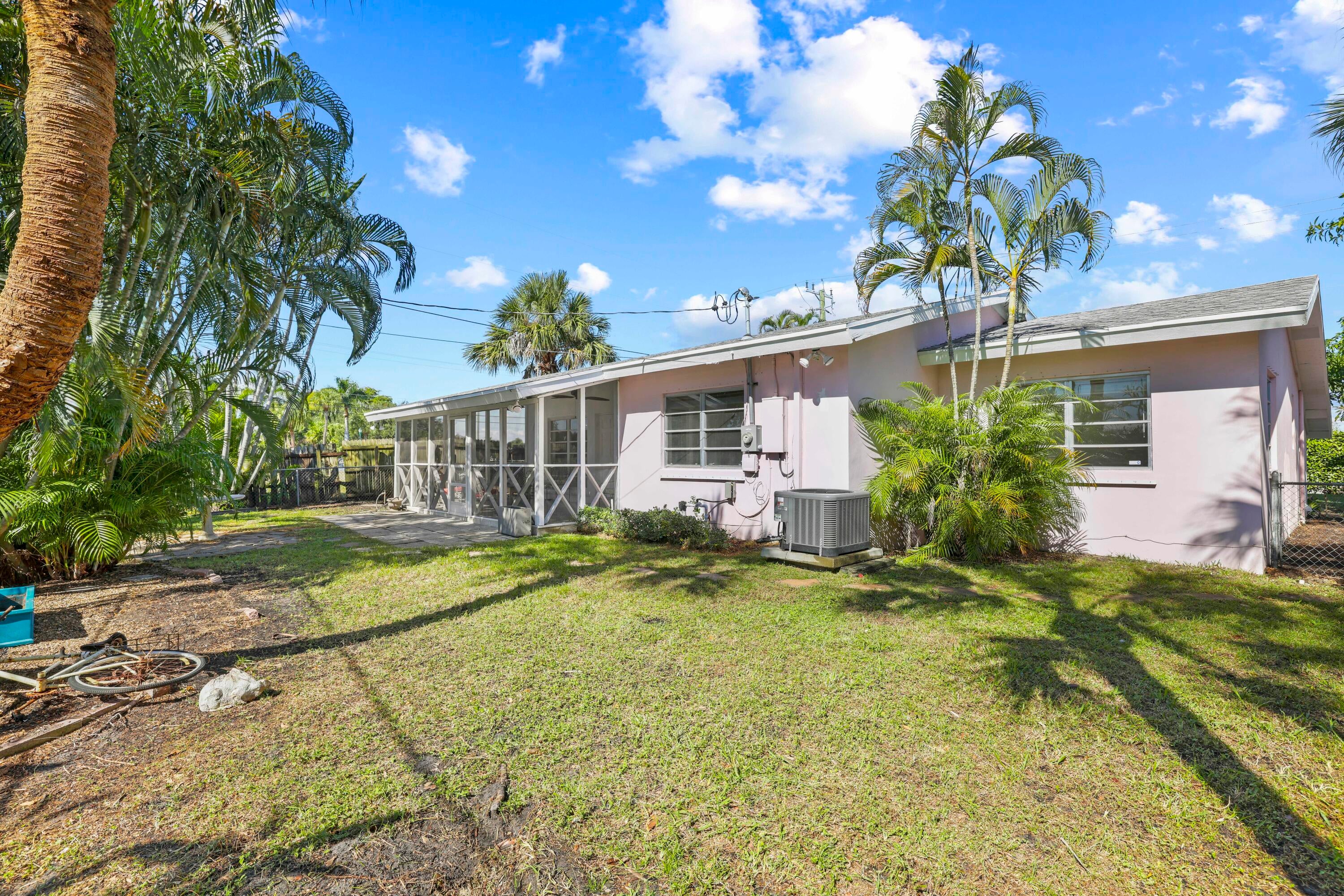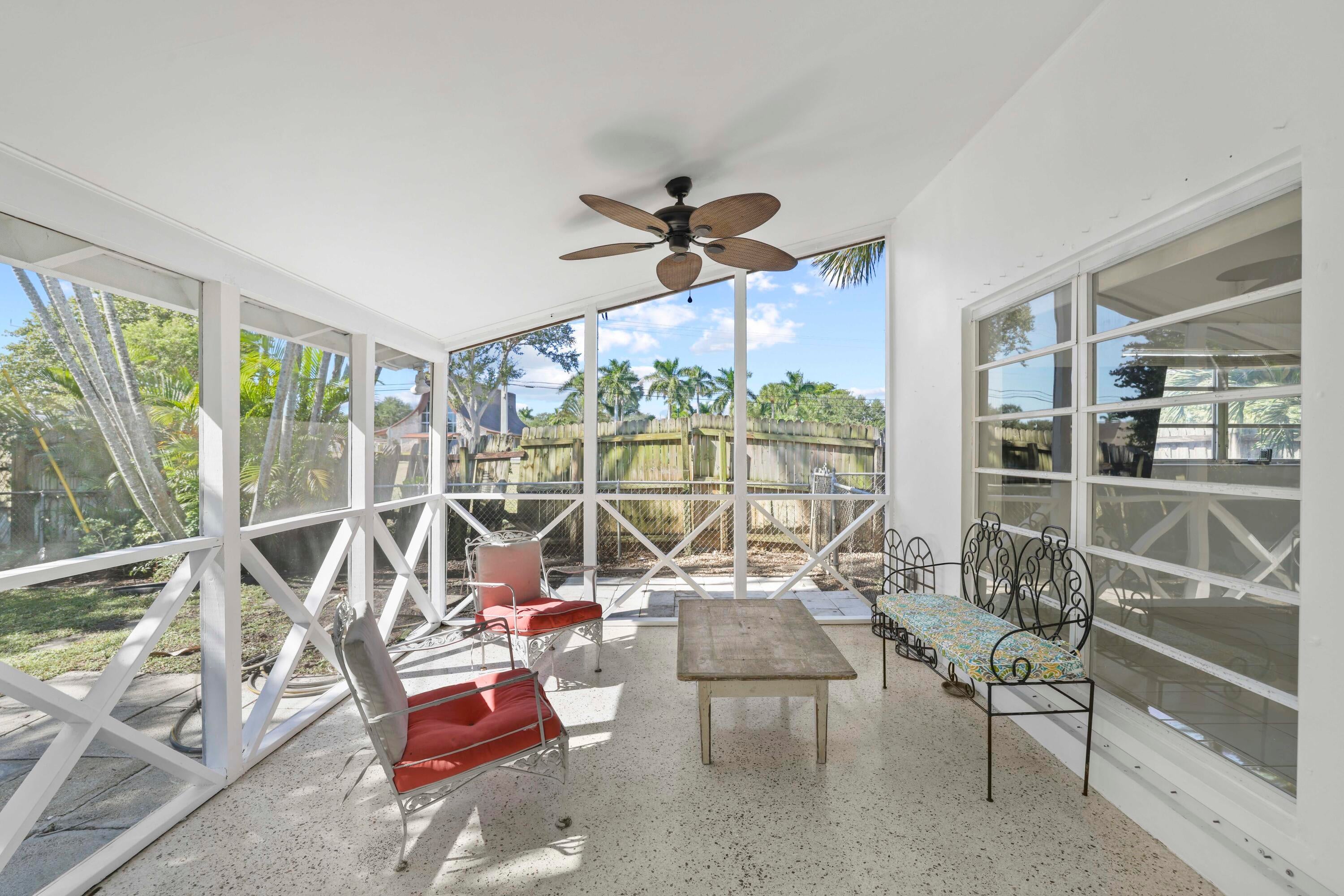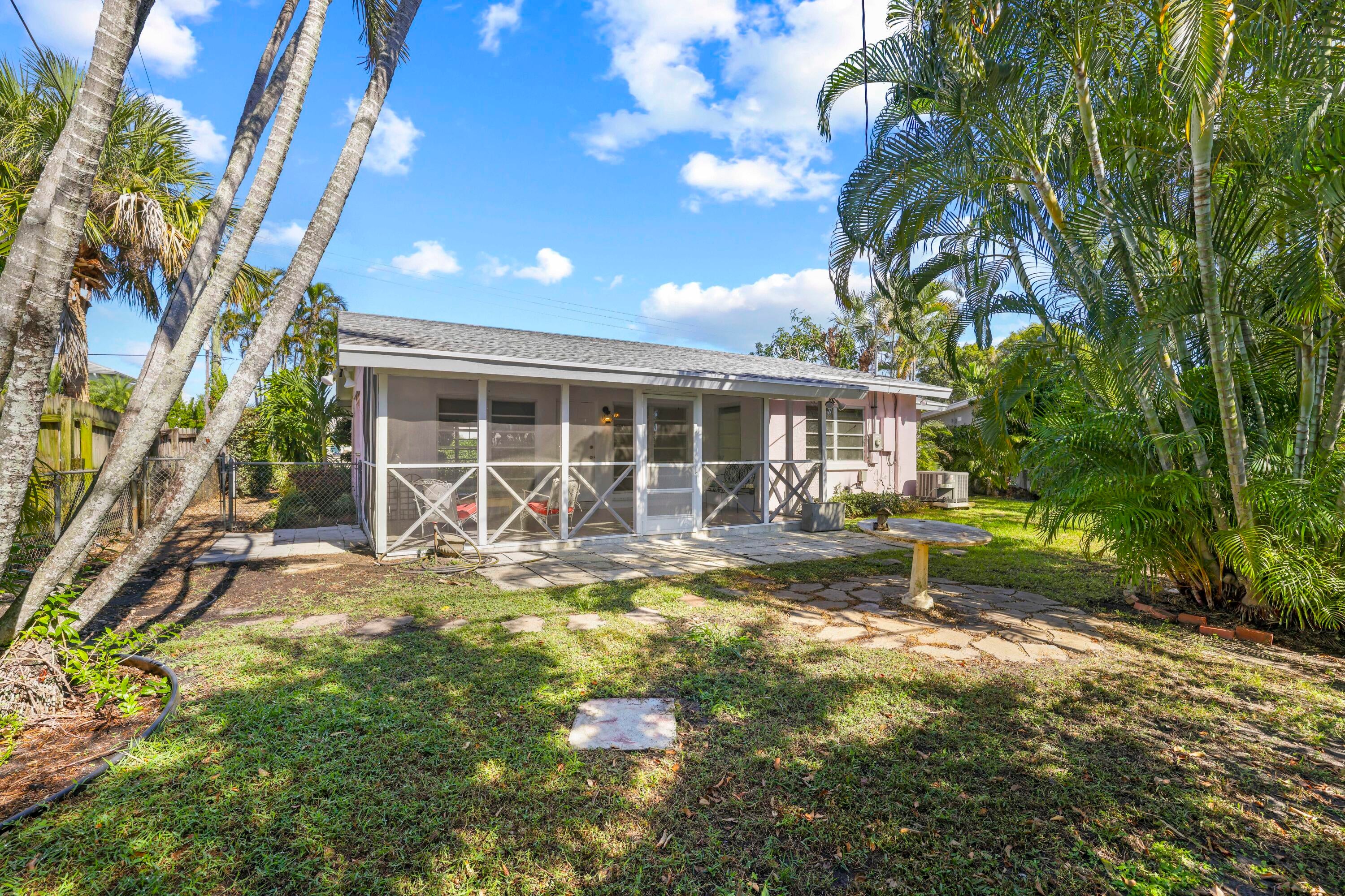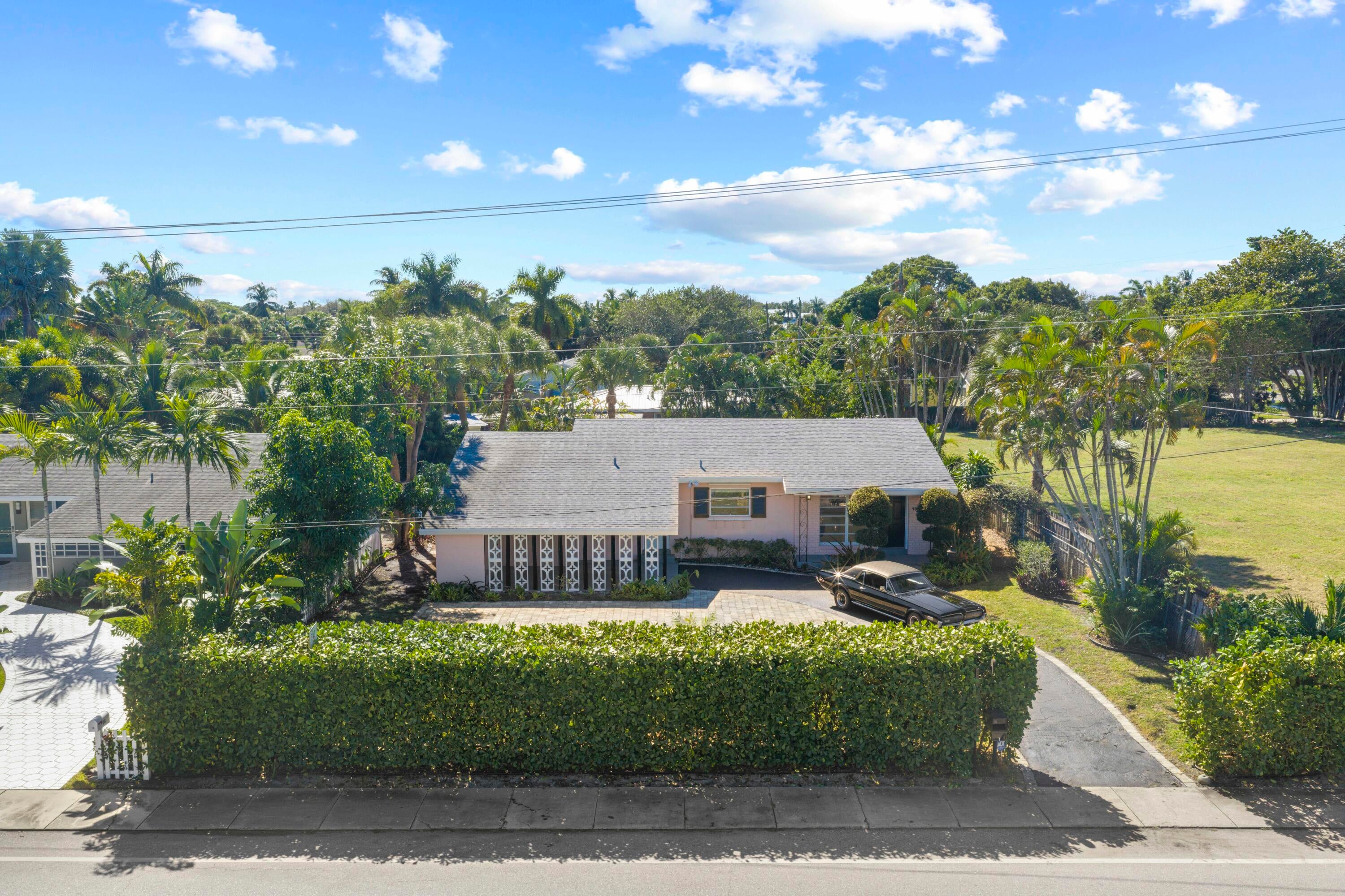 Step into true ''Old Florida cool'' with this charming mid-century modern gem in the heart of East Delray. Walk to the beach, Pineapple Grove, and Atlantic Avenues' shopping, dining and nightlife! Also a short walk to the area's best private schools, truly the location is unbeatable.Inside, soaring ceilings and a wide-open living space set the stage, while the iconic retro carport featuring a breeze block wall brings all the vintage vibes. The spacious screened terrazzo porch is the ultimate hangout: your morning coffee, midday break, or sunset unwind spot overlooking a south-facing backyard drenched in sunshine.The original kitchen and baths have been beautifully preserved and are ready for your modern touch.Plenty of room for a pool or an addition. Lot features green fauna a mango tree and mature palms. Situated directly across from the new multi-million-dollar Delray Ridge community, this home offers unbeatable charm, location, and potential, an opportunity rarely found in today's market. Roof Replaced in 2018, updated electrical and AC in 2019