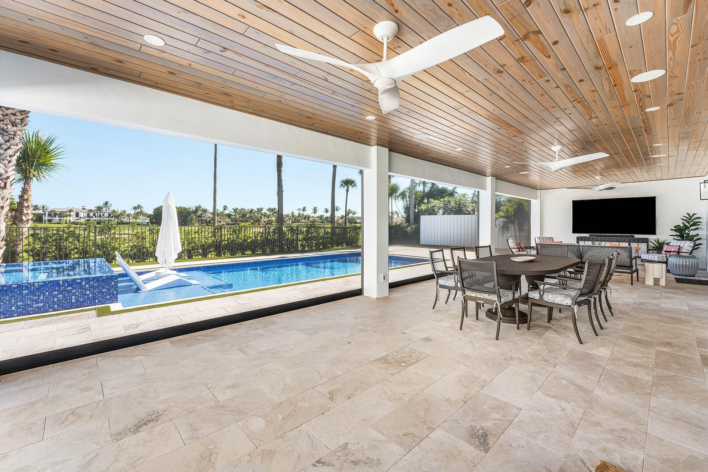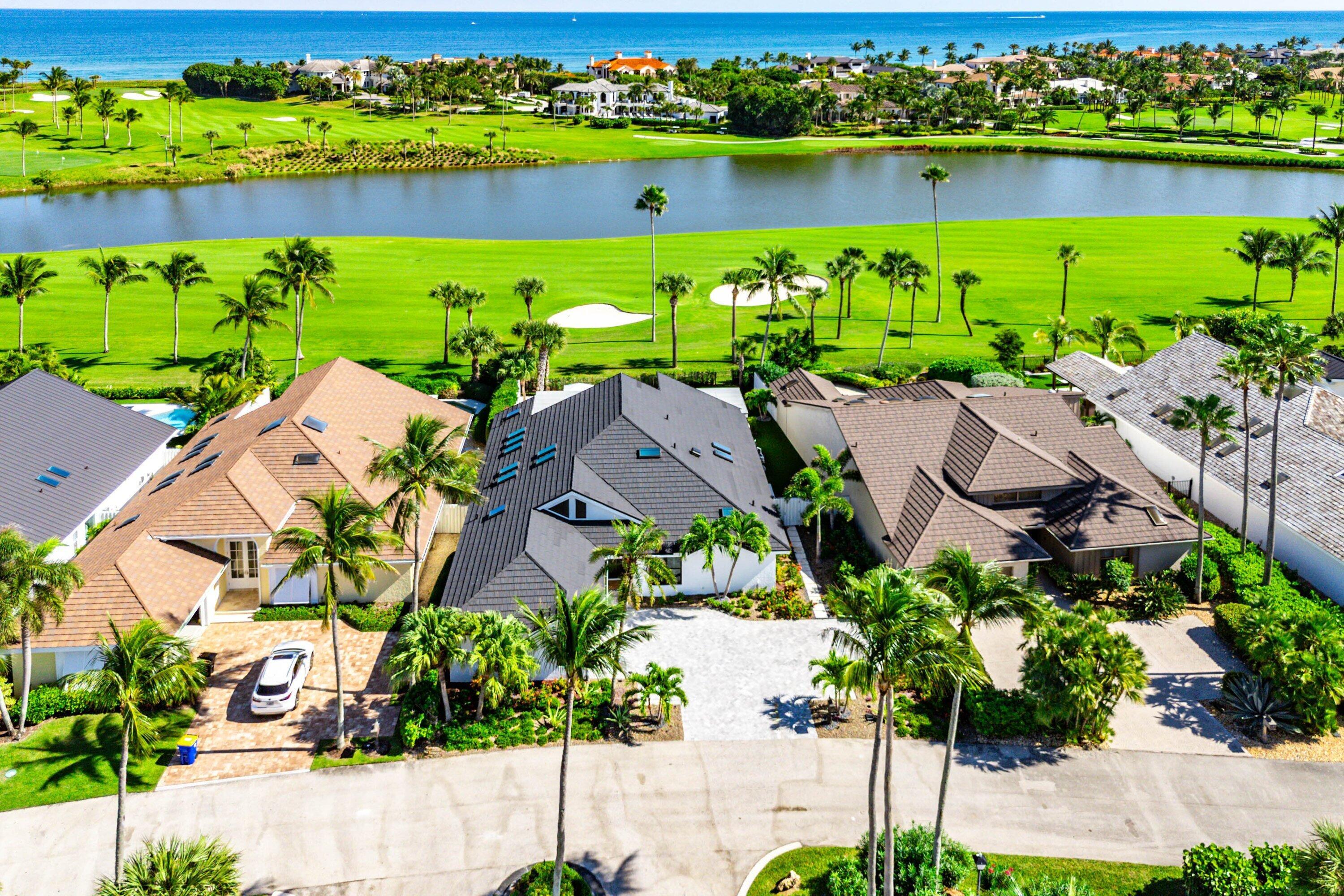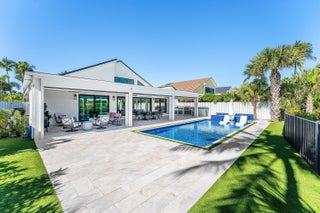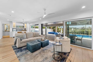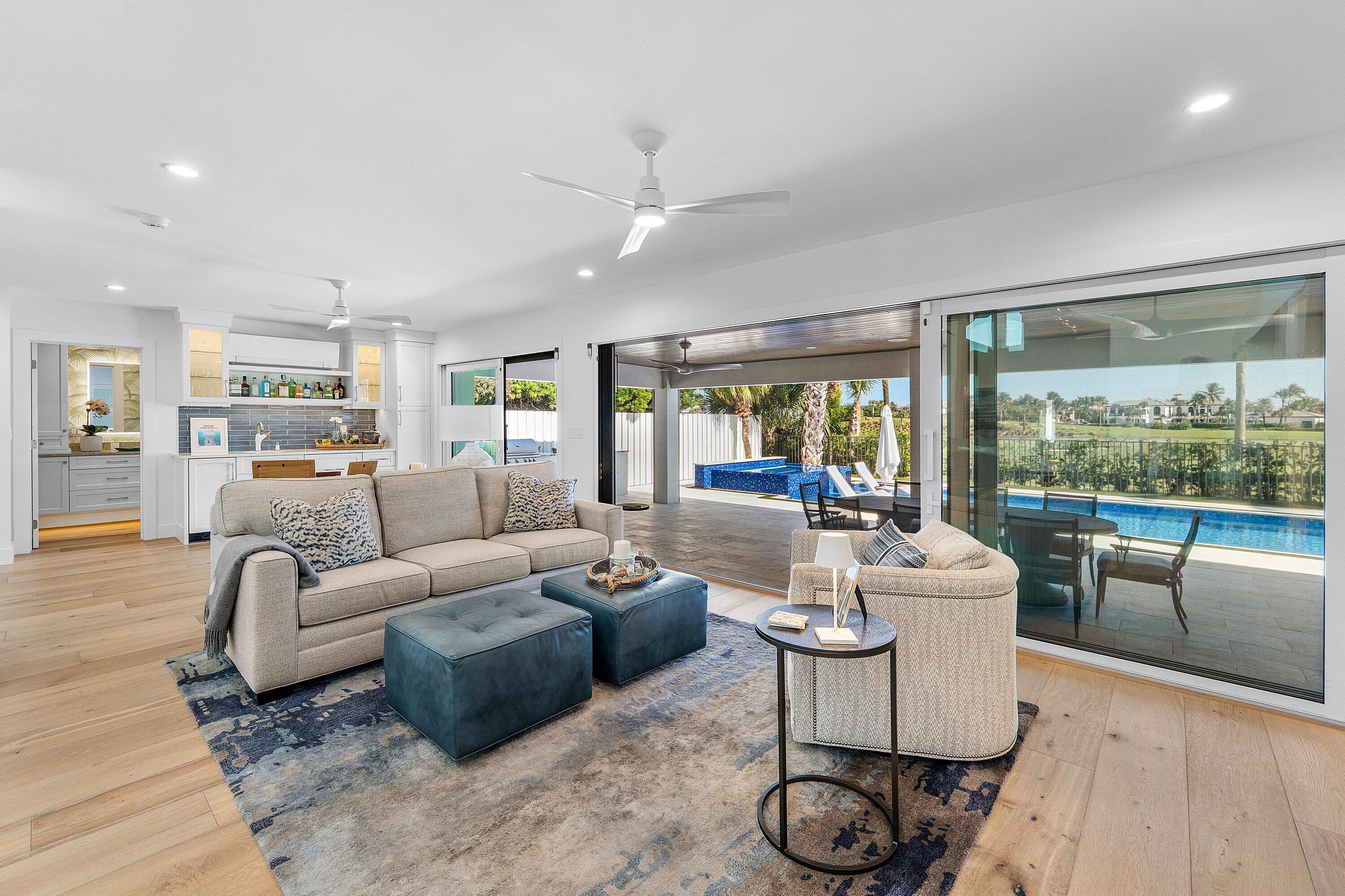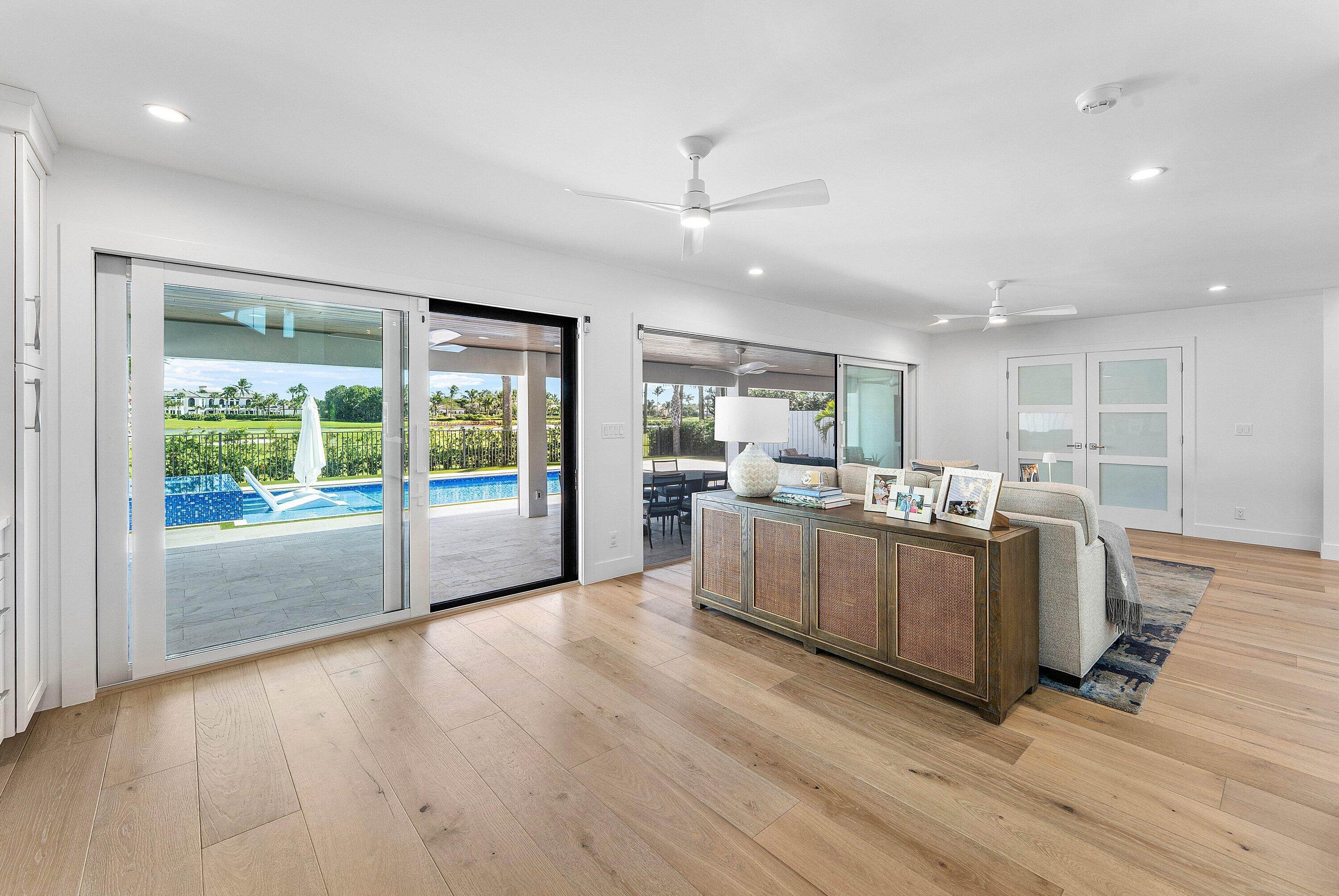 Completely gut-renovated three-bedroom, four-bathroom golf course home featuring a brand-new kitchen, new bathrooms, new flooring throughout, a new roof, new generator, and a newly built pool with an expansive deck.