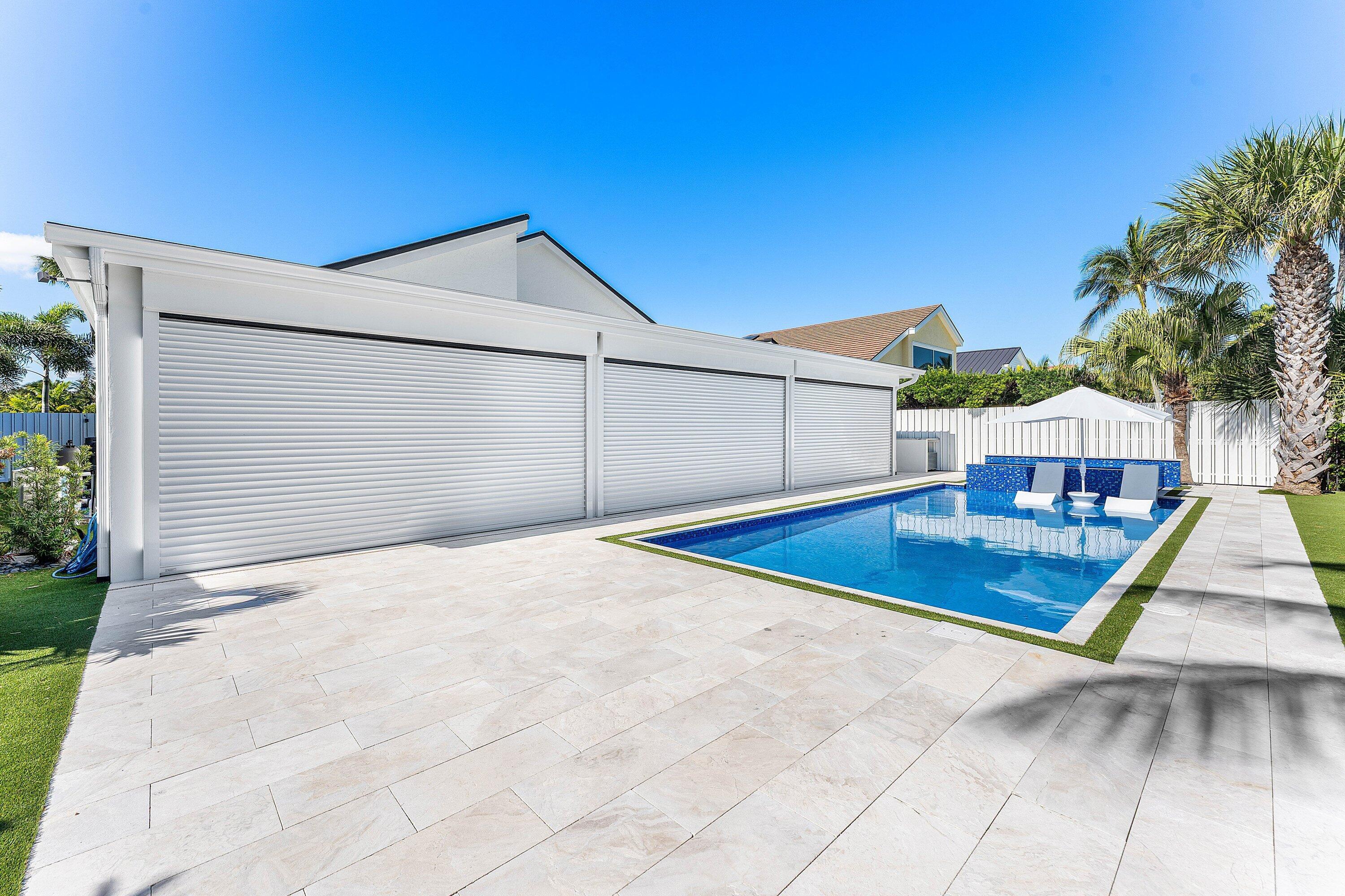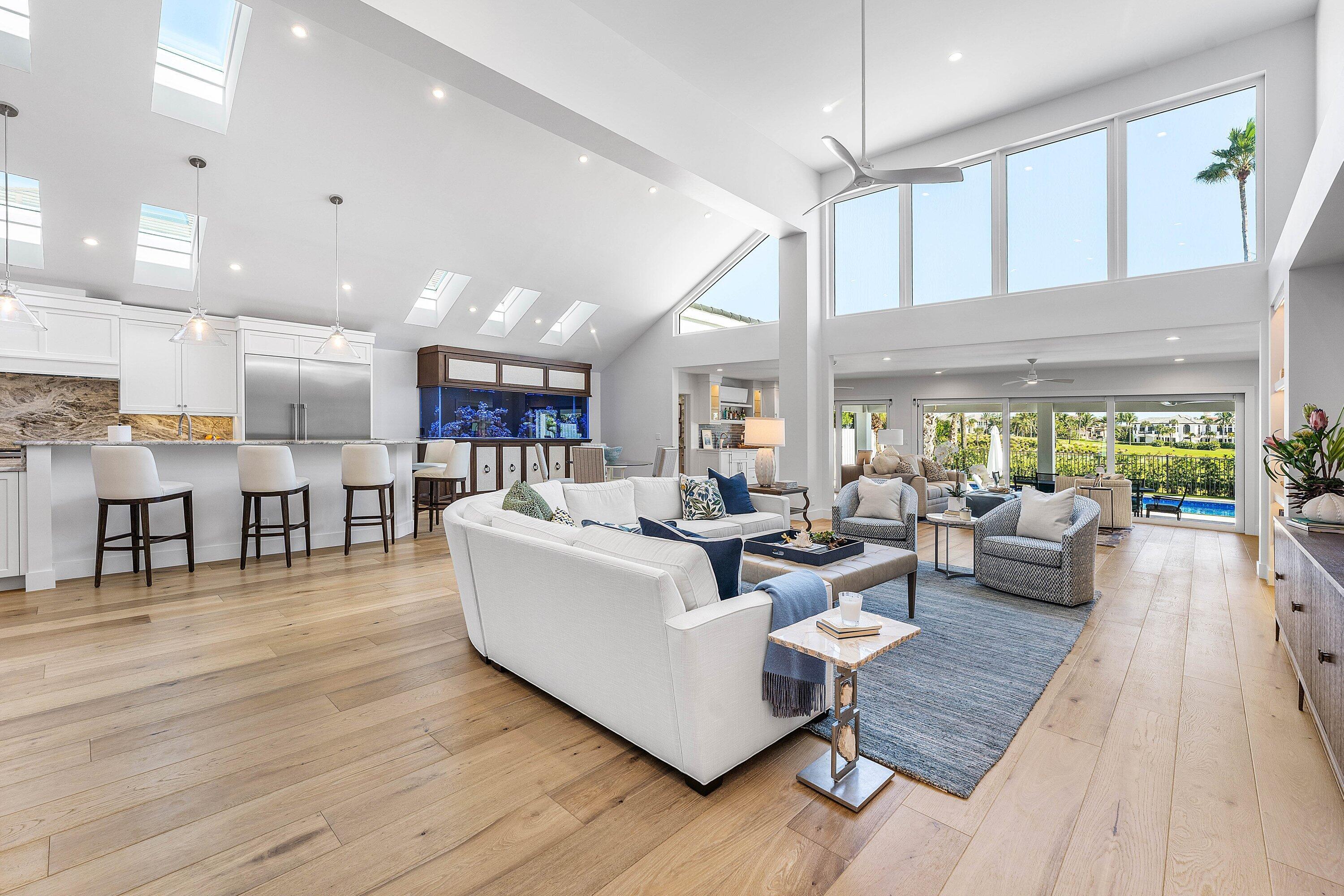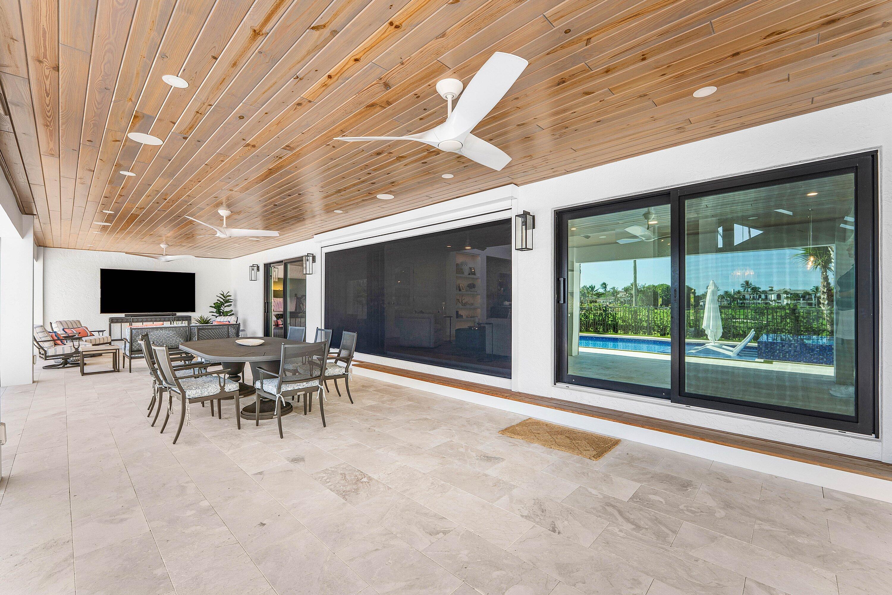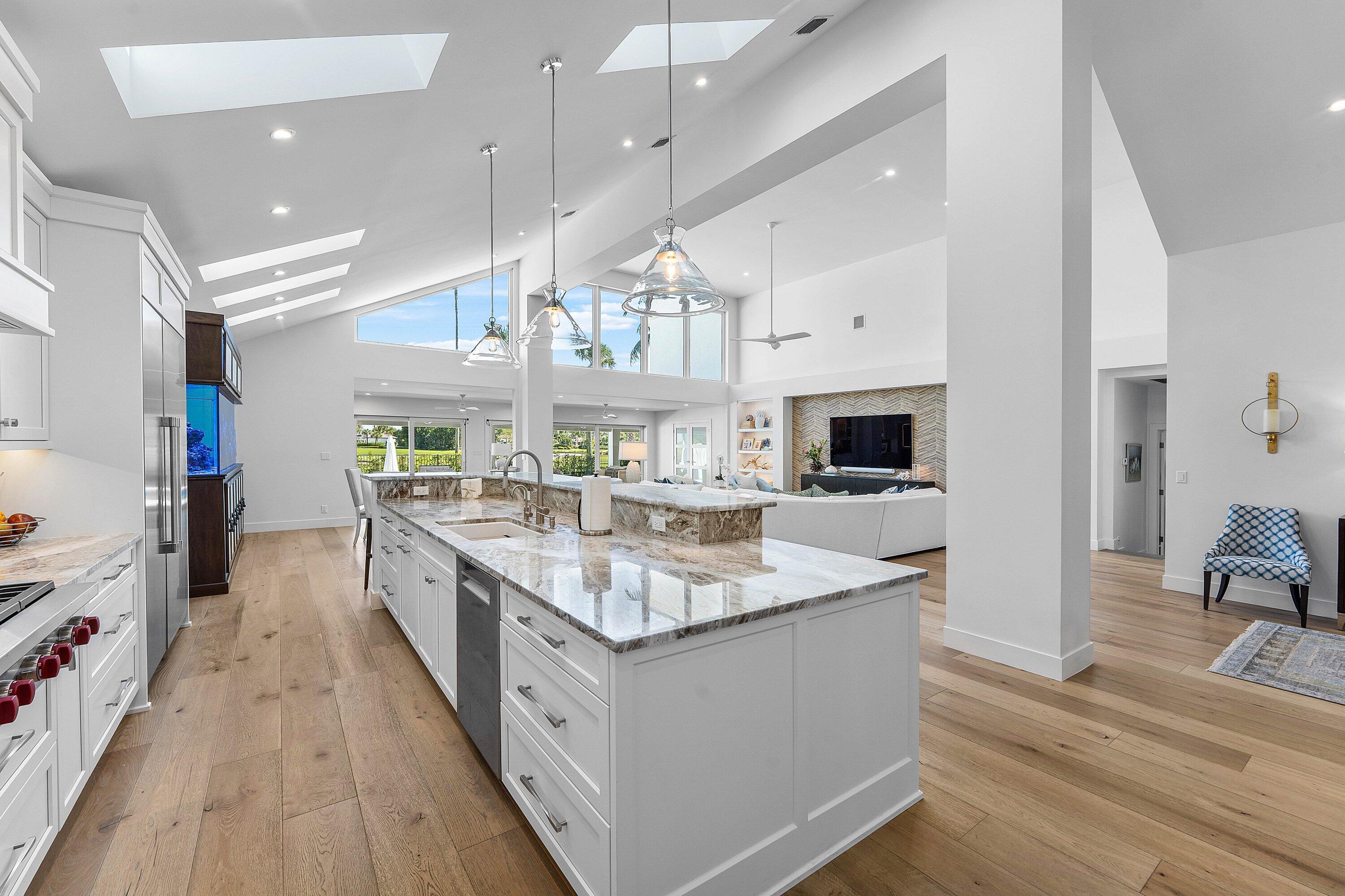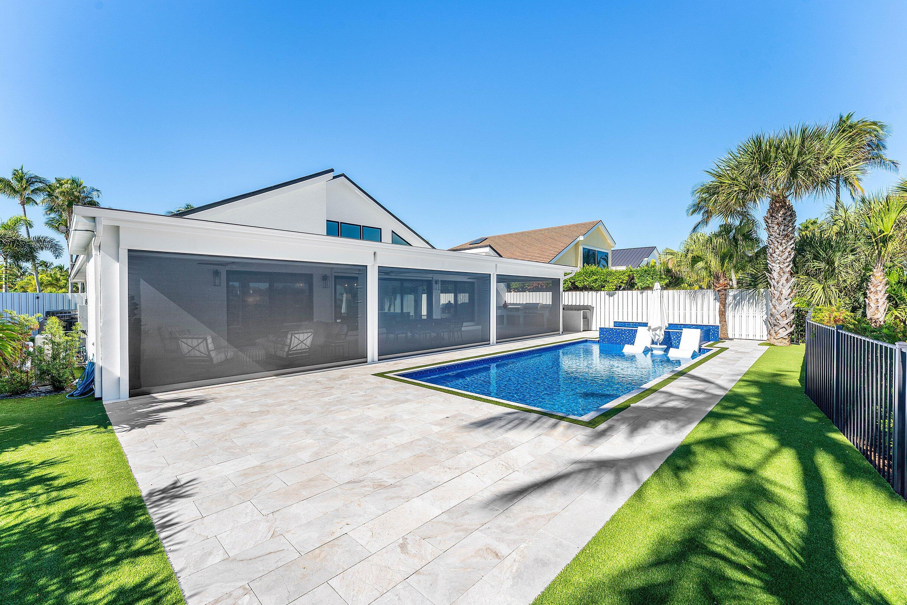 Completely gut-renovated three-bedroom, four-bathroom golf course home featuring a brand-new kitchen, new bathrooms, new flooring throughout, a new roof, new generator, and a newly built pool with an expansive deck.