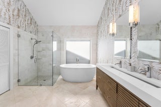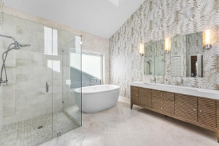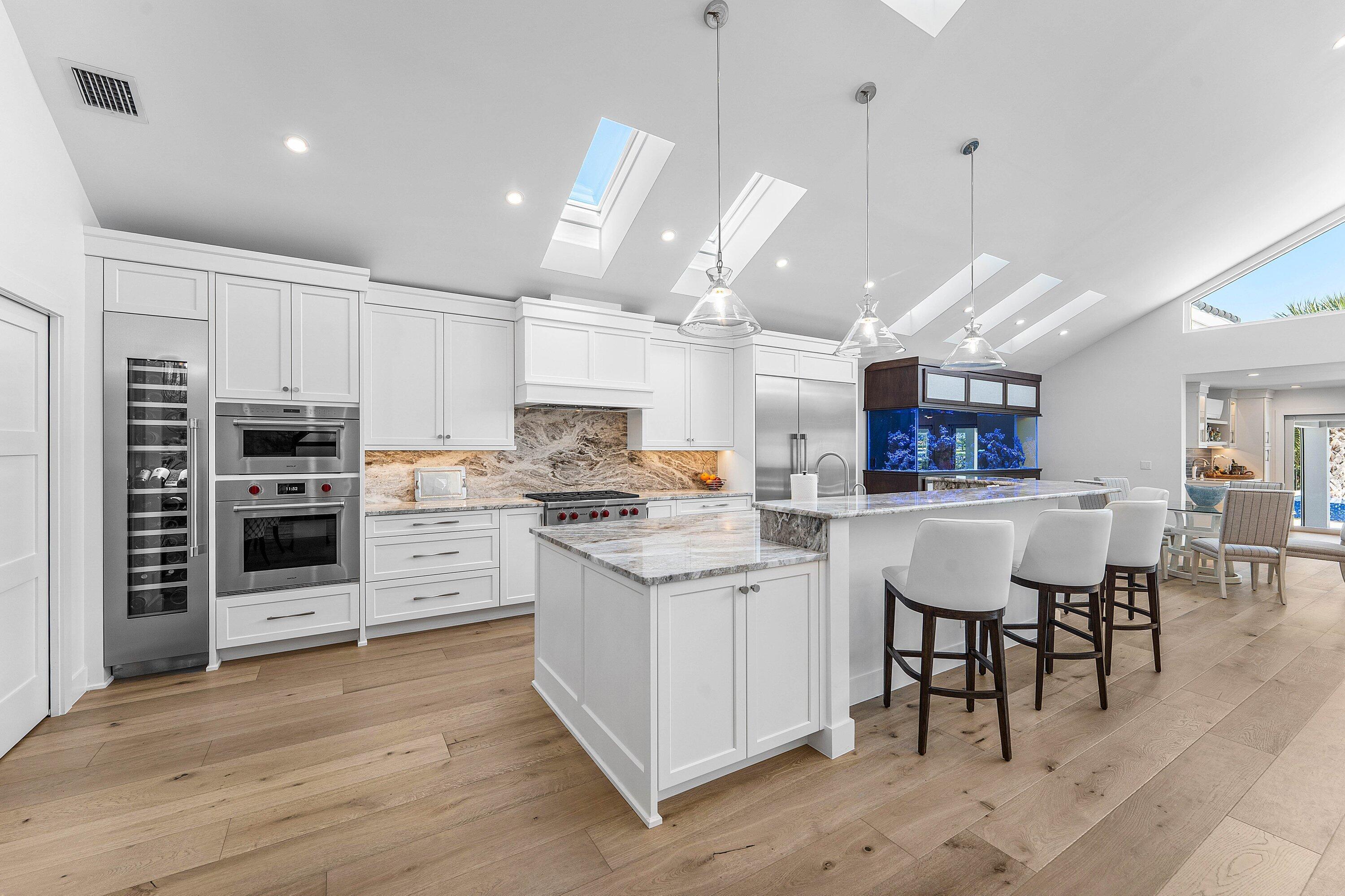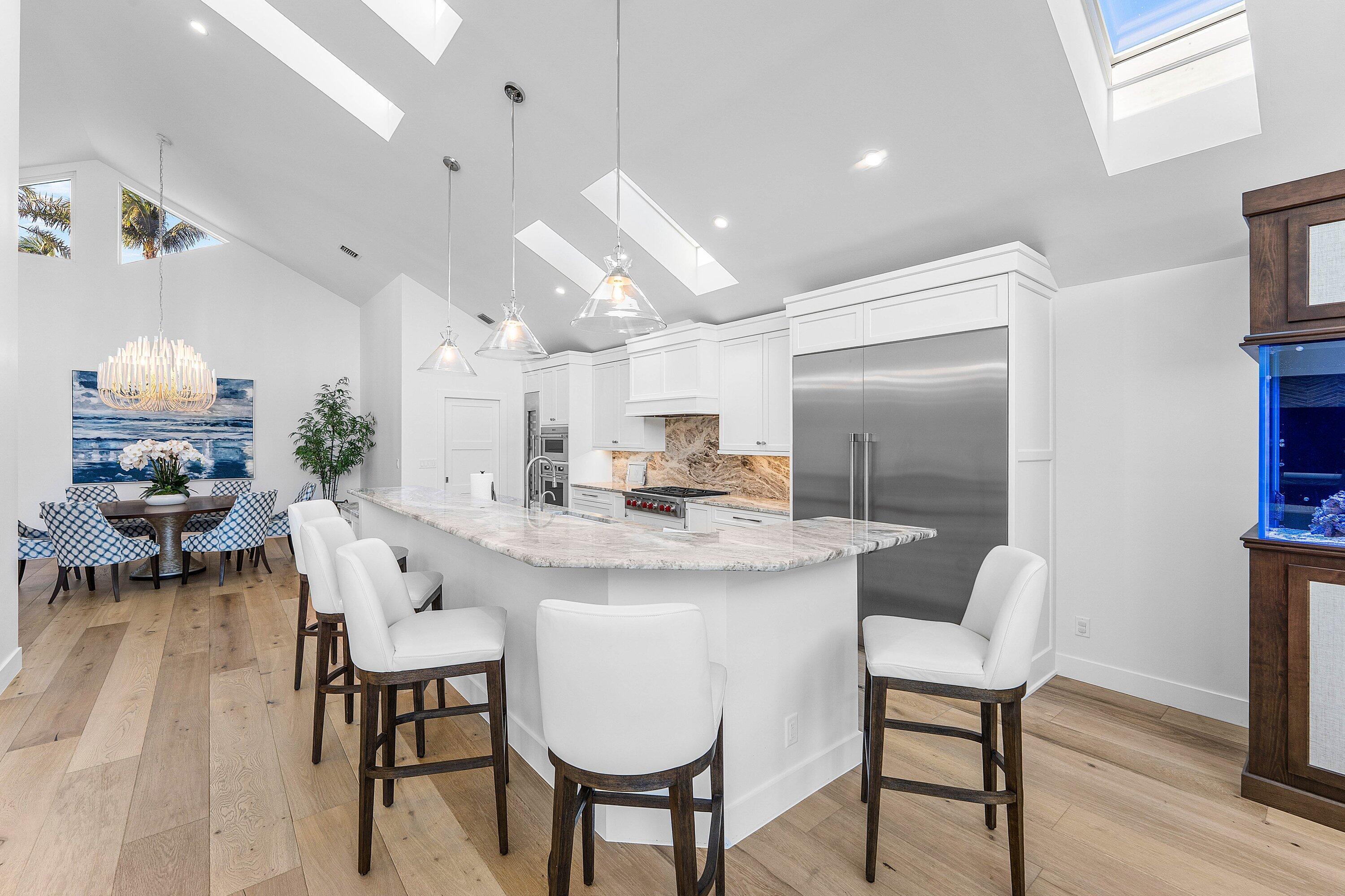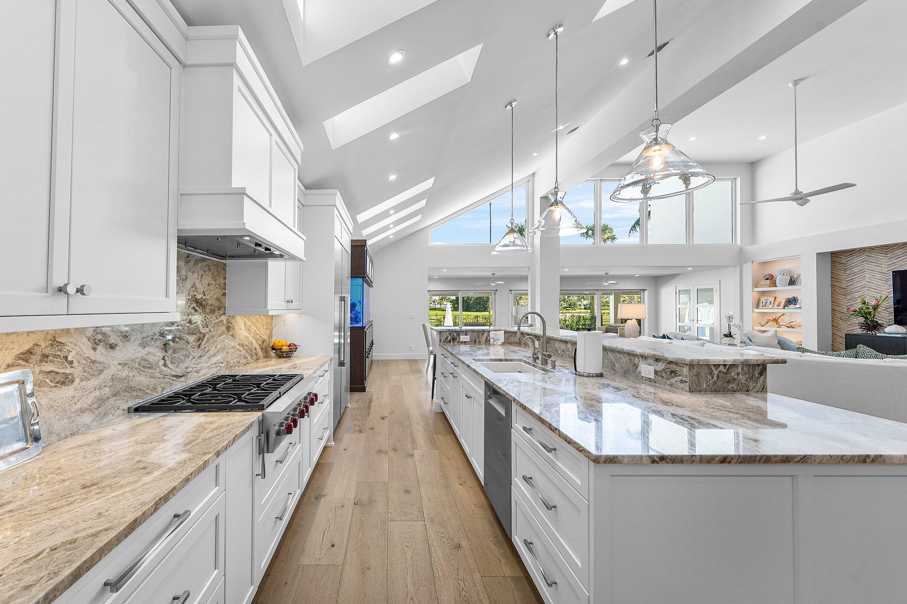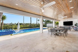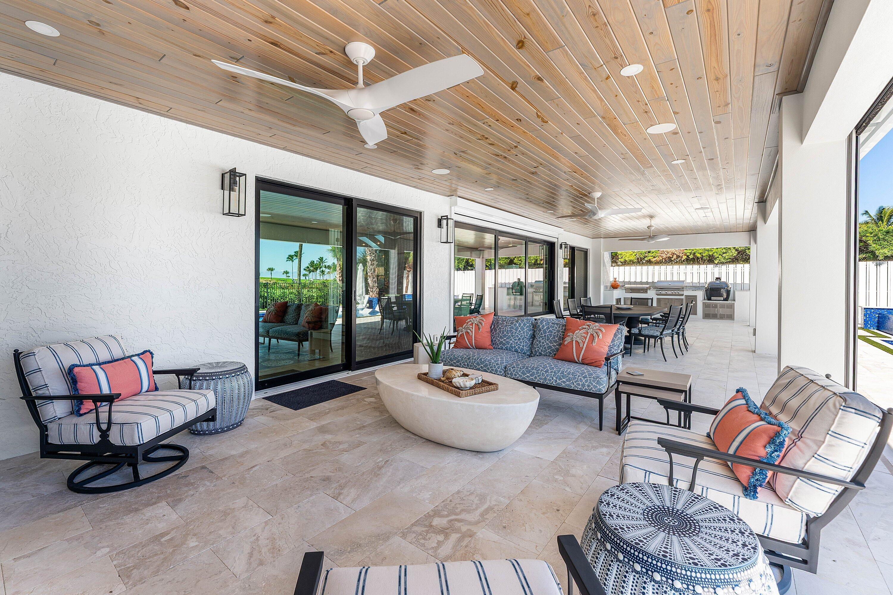 Completely gut-renovated three-bedroom, four-bathroom golf course home featuring a brand-new kitchen, new bathrooms, new flooring throughout, a new roof, new generator, and a newly built pool with an expansive deck.