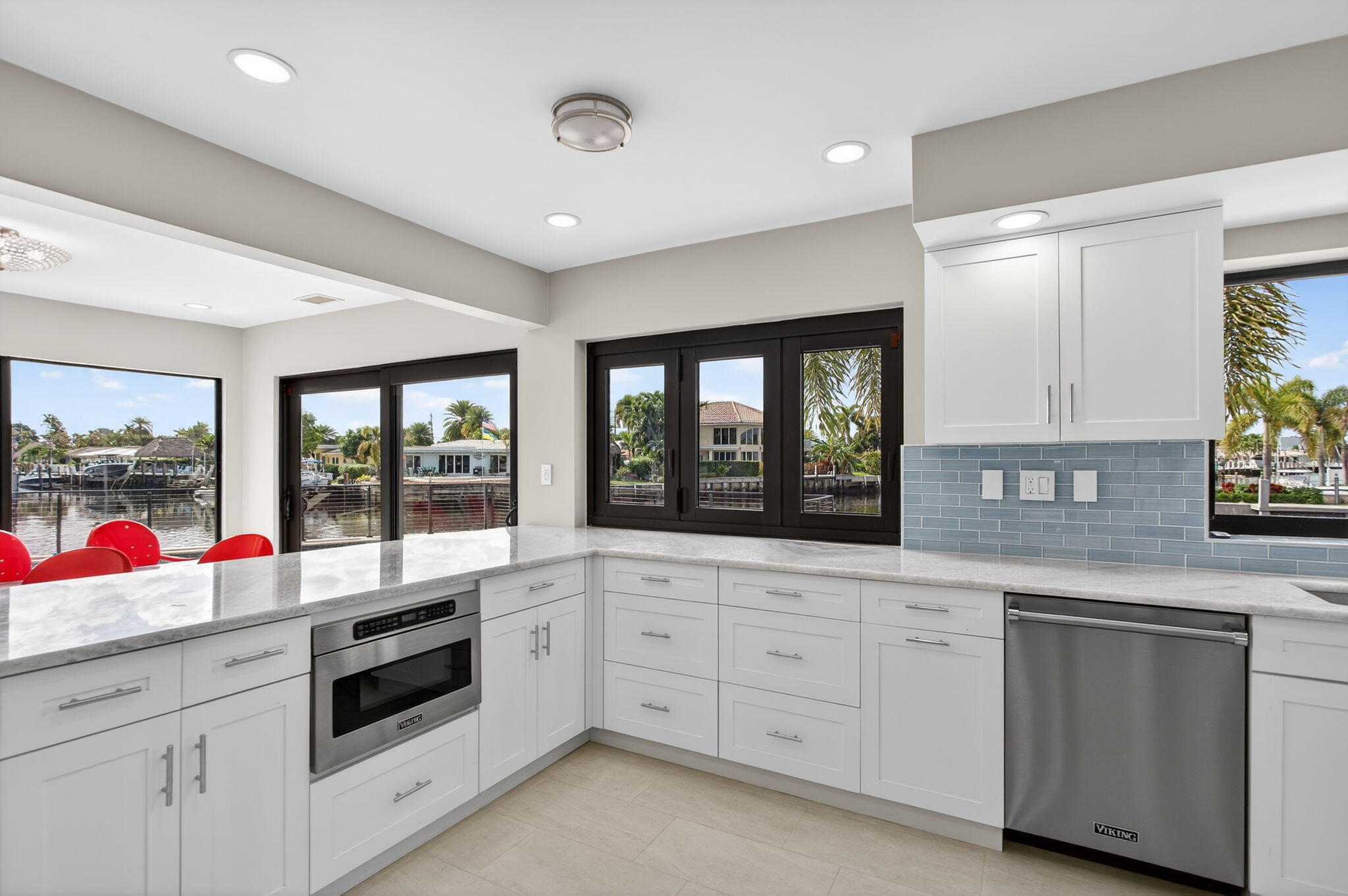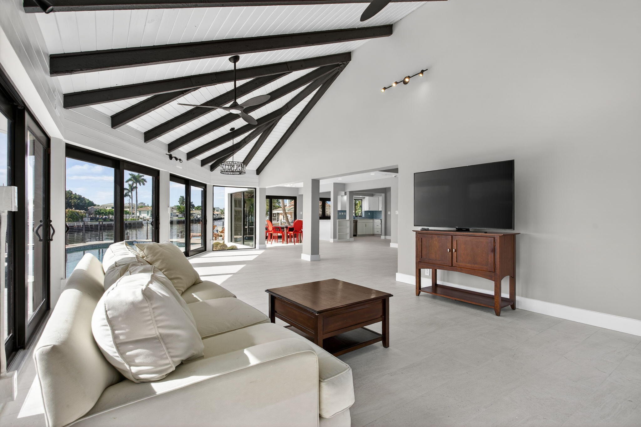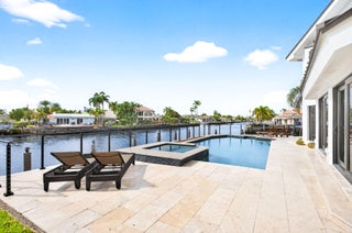Rare point lot with almost 200 feet of waterfront and dock less than two miles from the beach! Discover stunning vistas and captivating sunsets from this meticulously renovated home. The residence includes 4 BRs and 3.5 baths, with one BR designed as an entry-level mother-in-law suite featuring private entrance and full bath. Upstairs features a huge master bedroom suite, all BRs with water views and a loft area. The kitchen features all new Viking appliances and a convenient pass-through window to the outdoor bar. Additional highlights include three new AC units, new impact windows, luxury front door, heated pool, security system, standing seam metal roof, and a two-car garage with a workstation and epoxy flooring. Only one fixed bridge between you and the ocean! More details to come