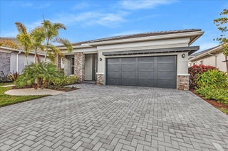 Welcome to resort-style living in Regency at Avenir, an exclusive 55+ community designed for comfort, connection, and elegance. This brand-new Samantha model has never been lived in and offers three bedrooms and two bathrooms, perfectly positioned on a premium lot with long, unobstructed lake and fountain views. The exterior is enhanced by an upgraded fenced yard with lush landscaping and palm trees which is ideal for relaxing or entertaining outdoors and there is plenty of space for a pool. Inside, you'll find soaring 12-foot vaulted ceilings and a bright open-concept floor plan that creates a spacious, airy feel throughout the home. The gourmet kitchen is appointed with 42-inch wall cabinets, sleek Silestone countertops, and Energy Star appliances by Whirlpool, making it ultra efficientThe primary suite is a true retreat, featuring a spa-like bathroom with Kohler fixtures, a separate soaking tub and shower, and an upgraded rain shower head for ultimate relaxation. Additional highlights include impact doors and windows throughout, EV car charging port in the two-car garage, and Smart home features including keyless front entry, Wi-Fi thermostat, and Wi-Fi garage control access. Residents of Regency at Avenir enjoy an exceptional clubhouse lifestyle with a resort-style pool and spa, tennis and pickleball courts, indoor golf simulator, lounge, yoga studio, state-of-the-art fitness center, and so much more. This is a rare opportunity to own a new construction, never-lived-in home with premium upgrades, stunning water views, and world-class amenities perfectly tailored for active 55+ living at an excepional price.