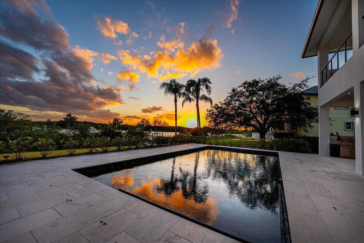 An Absolute Stunning Ocean Access Waterfront Estate sitting on a Sprawling 1.5 Acres! This Practically New 4BR 3.5BA Modern Contemporary Gem Backs up to a Bay on The North Fork of the St Lucie River with absolute stunning views of the water! Located in Beautiful River Vista, this is An Excellent Opportunity to have your Custom Dock Installed and have your boat waiting for you in your backyard. Walking in you will instantly notice the Architecturally Clean Lines throughout. This Estate home features Two Master Suits, a Home Gym, Movie Room, Custom Closets, Heated Salt Pool and Spa, Sleek Kitchen with Thermador Appliances. So many Possibilities for this oversized property, Including multi-car garage, tennis Court or In-Law suite. This Home is absolute Must See!