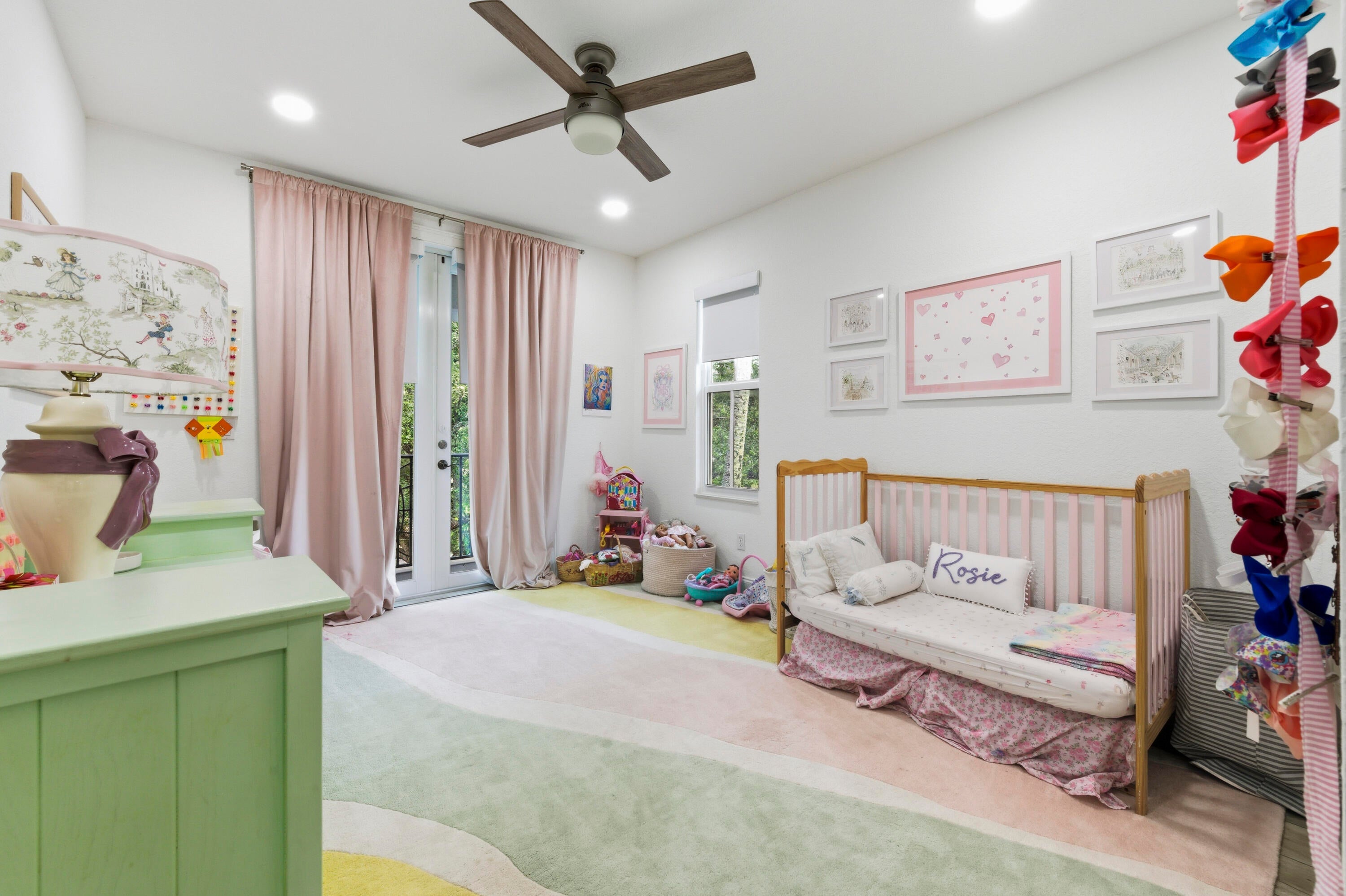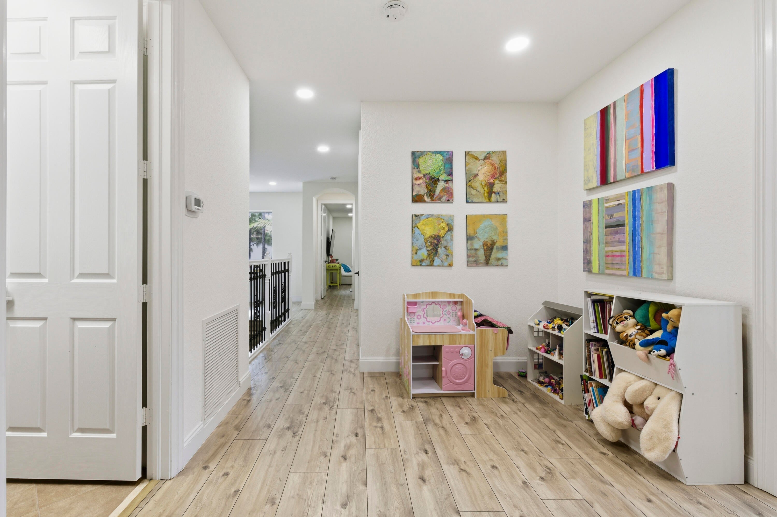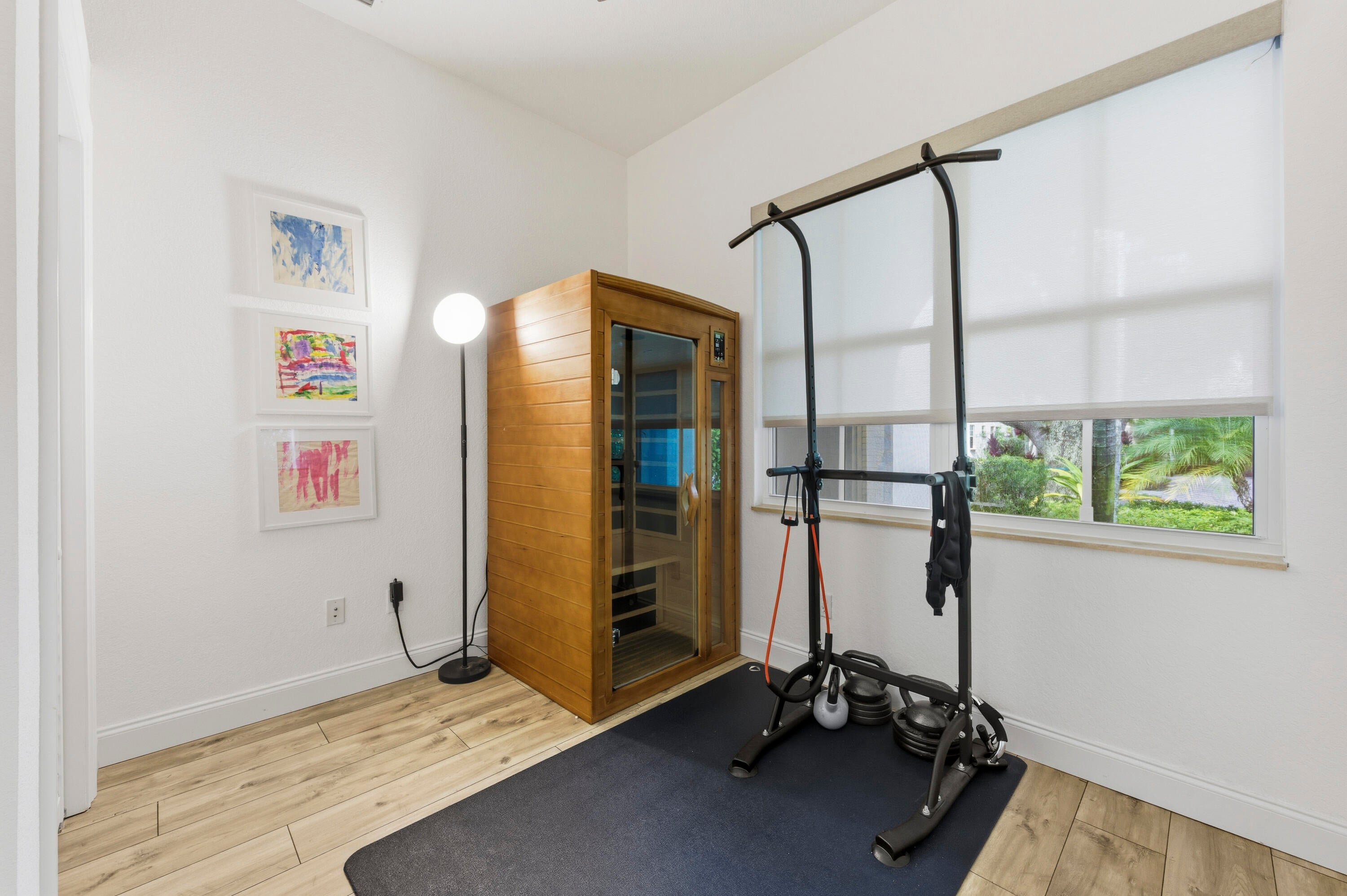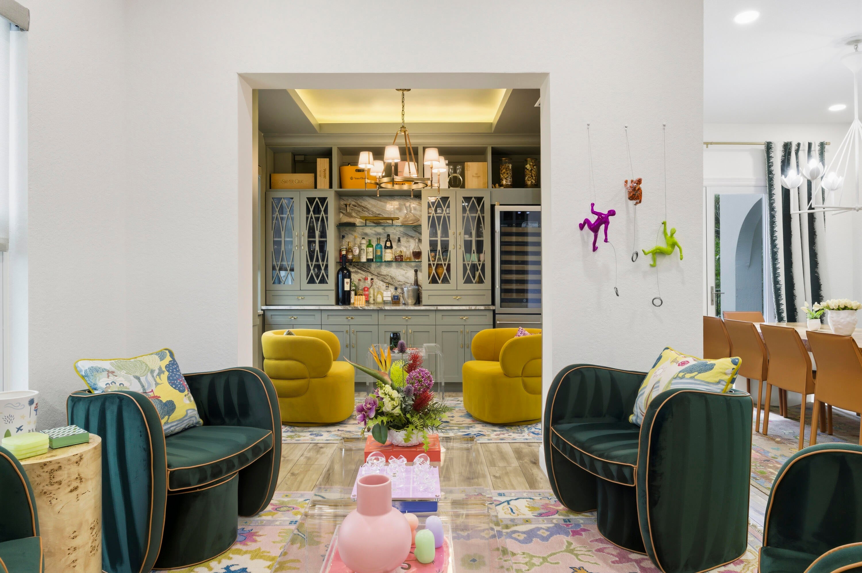 Welcome to this stunning two-story Mediterranean residence that perfectly blends warmth, elegance, and joy. From the moment you enter, you're greeted by light-filled spaces designed to make you feel happy and right at home. The interior is decorated with fun, vibrant touches that bring life to every room while maintaining a sense of sophistication.All new laminate flooring flows throughout the homes first and second floor, accented by recessed lighting, crown molding, and impact windows with custom motorized shades. Additional wellness enhancements include whole house water filtration, reverse osmosis drinking system, and Reme Halo air purifiers.The formal sitting area is a cozy conversation space that leads to a stylish custom "Martini Room" with built-ins, bar, seating, wine storage and cooler, perfect for entertaining, highlighted with a chandelier and rope lighting to create ambiance. The dining room opens to the backyard through double doors. The updated kitchen offers painted cabinetry, new quartz countertops, stainless steel GE appliances including double wall ovens, and a sleek stainless sink with disposal. A walk-in pantry under the staircase adds charm and storage. The first floor also features a guest bedroom and full bath with quartz vanity, custom Missoni wallpaper, and frameless shower. Upstairs, a versatile loft connects to four bedrooms. The spacious primary suite includes a private foyer, dual custom closets, and an updated bath with soaking tub, shower, painted cabinetry, and quartz counters. Additional bedrooms feature recessed lighting and built-in closets, one even offers its own private balcony. The laundry room, equipped with Electrolux washer/dryer and storage, adds convenience. Step through impact sliders to a cheerful backyard oasis featuring a covered lanai with fan and mounted lighting, all surrounded by lush Clusia hedges and turf for easy maintenance. Thoughtfully painted inside and out, this home radiates personality, comfort, and happinessevery detail curated to make you smile.