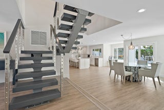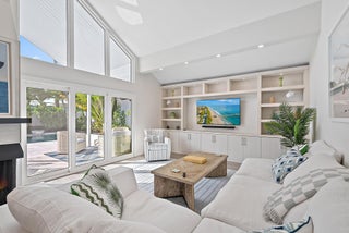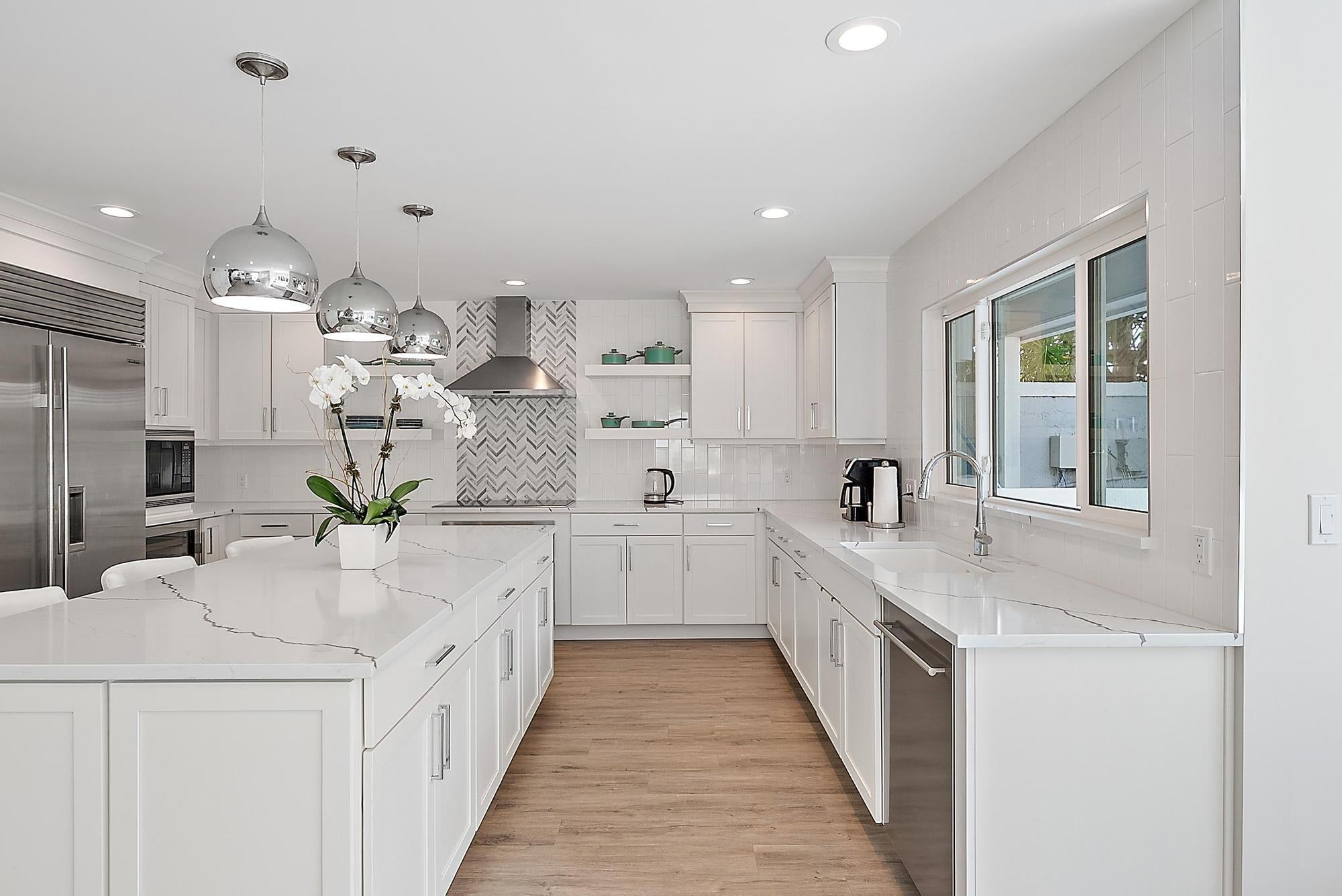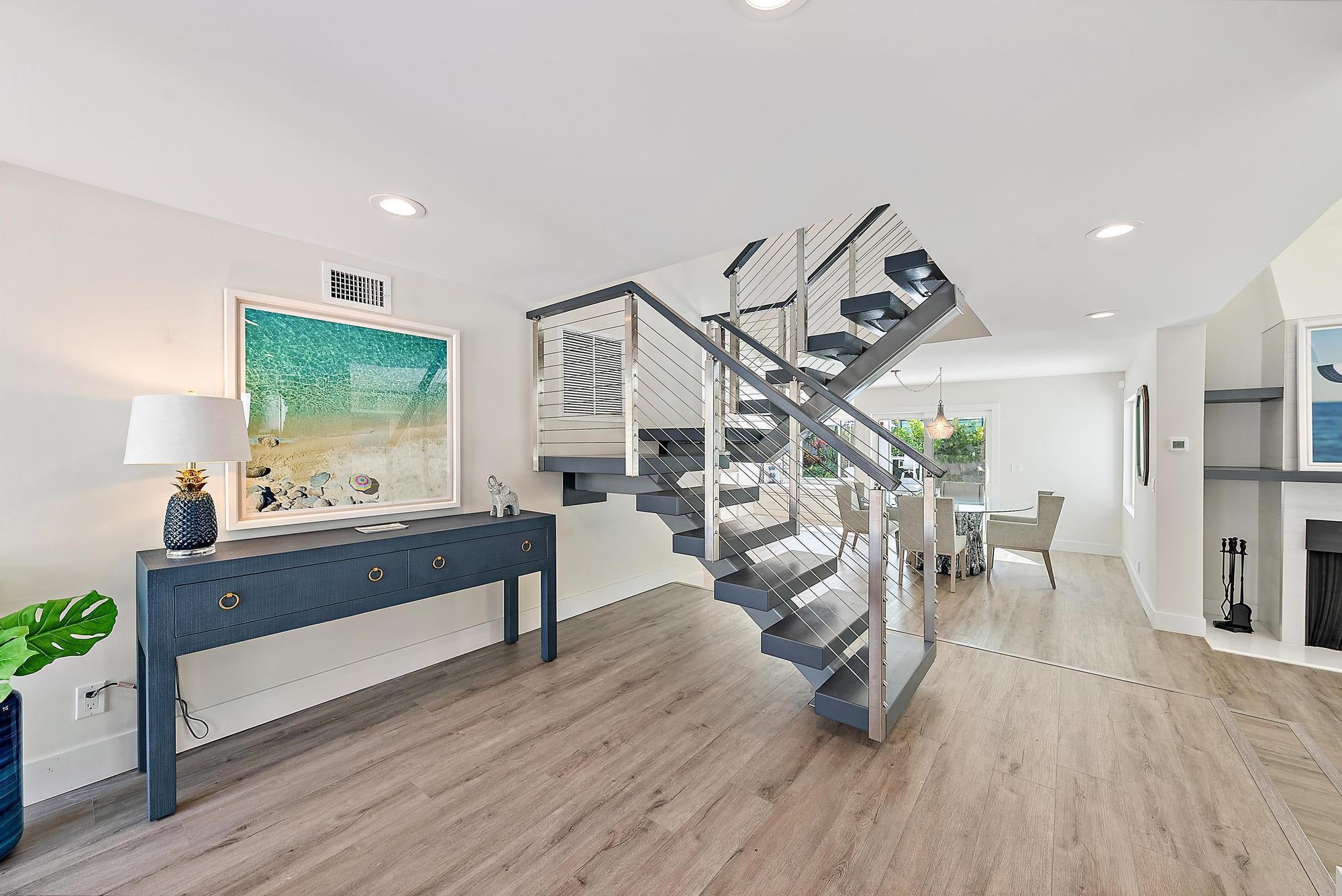 Easy walk to the beach from your front door! Experience luxury coastal living in one of Palm Beach County's most coveted communities. This fully renovated, turnkey residence is ideally situated on a quiet cul-de-sac with desirable southeast exposure and a beautifully landscaped backyard oasis. Boasting 2,642 square feet, the home features 3 bedrooms, 3 baths, and a bright open floor plan enhanced by soaring redone ceilings, a floating staircase, new flooring. Renovated in 2020 by a top designer and high-end remodeling firm, no detail was overlooked-from new Hardie board siding and impact windows to a spacious laundry room and 2-car garage. The custom kitchen is a chef's dream with designer quartz surfaces, custom cabinetry, and premium Wolf, Sub-Zero, and wine refrigeration.The expanded primary suite includes a sitting area, dual balconies, a massive custom closet with island, and a spa-inspired bath with soaking tub and frameless shower. Step outside to your private retreat featuring a renovated pool with waterfall bowls and color lighting, slip-resistant porcelain patio, tropical landscaping, and a custom walkway. All just moments from Jupiter's pristine beaches, world-class dining and shopping!
