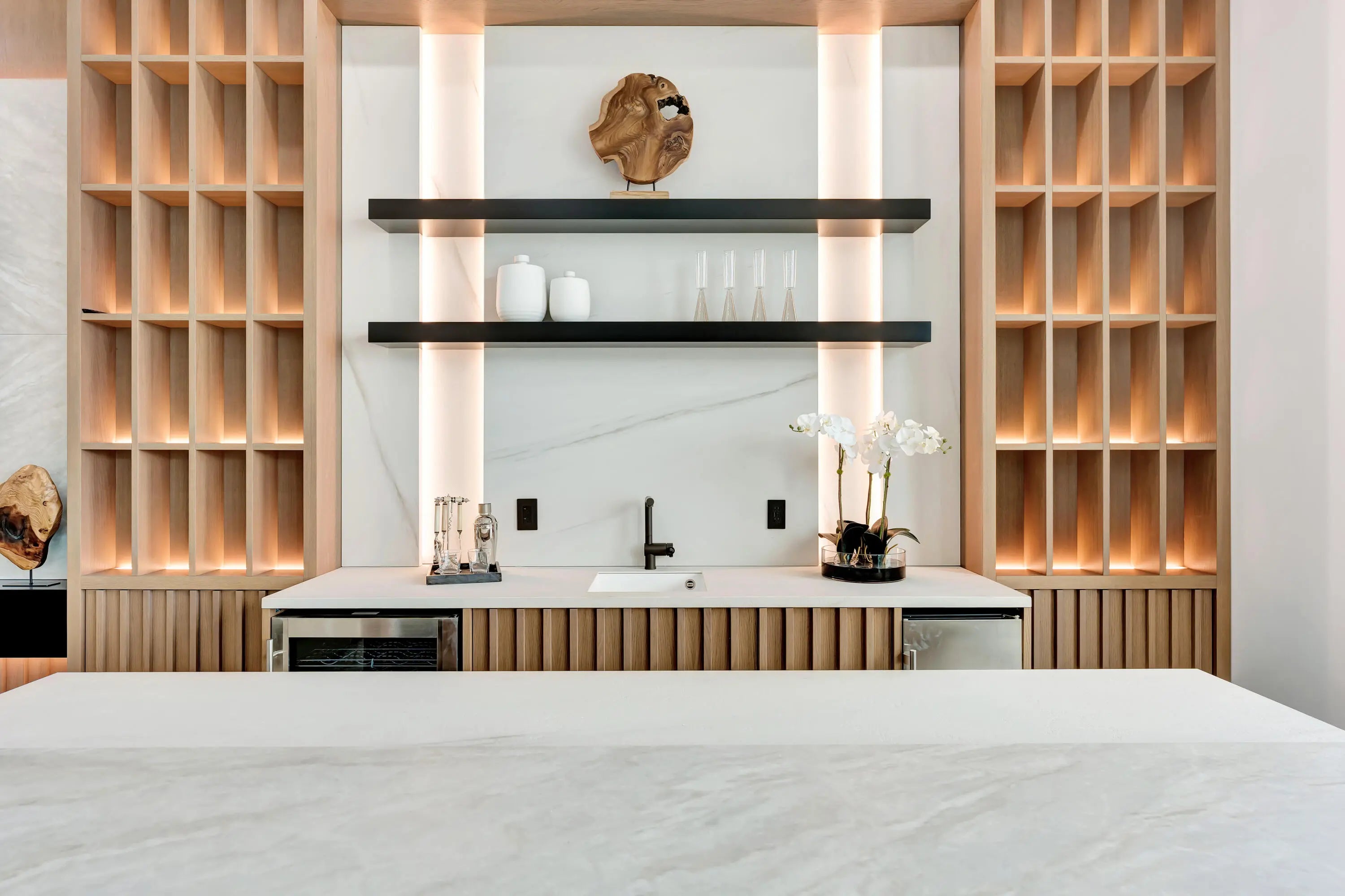 Bar, Built-in Shelves, Closet Cabinets, Custom Mirror, Elevator, Fireplace(s), Kitchen Island, Pantry, Upstairs Living Area, Walk-in Closet, Wet Bar