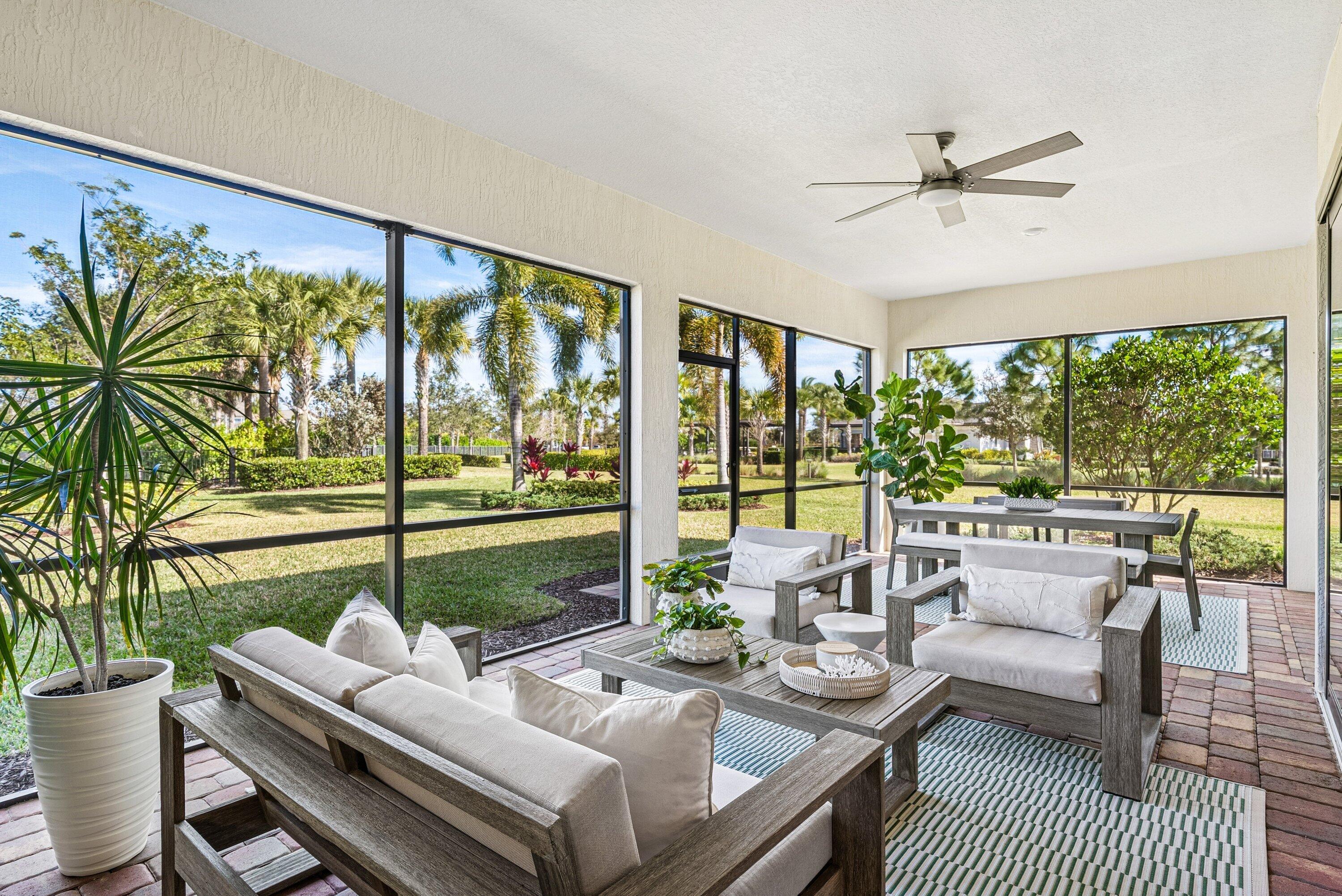 An opportunity to own the newest and most refined residence in Ancient Tree. Perfectly positioned on an expansive, over-sized lot. Among the largest in the community. Built in 2023 by Pulte, as the final home in the neighborhood.This exceptional property offers 3,078 sq ft of elegant living space. 4 bedrooms, 3 bathrooms, office, utility room and an oversized, 3-car garage.Offered fully furnished with a collection of new, designer-level furnishings. Thoughtfully selected to compliment the scale, flow and architecture of the home.The home showcases, premium upgrades: 1. Seamless indoor-outdoor living, achieved through a 364 sq ft enclosed patio. 2. Zero corner sliding glass doors. 3. High-end Tile Flooring Throughout. 4. 13ft Ceilings 5. Chef's Kitchen-Top of the Line Appliances. 6. Gas Stove 7. Built-in refrigerator 8. Pool Bath Option with Heavy Glass Door Finishing 9.Primary Bathroom - Glass Finish/Enclosure 10. Outdoor canned lighting Owner-selected enhancements further elevate the home, featuring: 1. Walter filtration system 2. Professionally designed Landscaping 3. Ambient Landscape lighting - Outdoor 4. Elfa shelving system - Garage 5. Elfa shelving system - Pantry 6. His and hers Custom, closets - Primary bedroom 7. Custom shelving - Main office This residence delivers a turnkey luxury experience. Ideal for buyers seeking newer construction, expansive outdoor space, and refined living. Within one of Palm Beach Gardens' most prestigious 97 Home communities in Ancient Tree. Ideally located within walking distance to the community clubhouse and resort-style pool. The home also enjoys exceptional privacy with no neighboring residence to the south. Creating a serene and exclusive setting, rarely found in newer construction communities. Ancient Tree Amenities feature: Newly built Pickleball courts. Resort-style amenities within a gated community, a clubhouse, pool, cabana, tennis courts, playgrounds, scenic trails, BBQ area. Residents enjoy luxury living with country club-like features, without mandatory club dues. Adjacent to Sandhill Crane Golf Club (public, no membership required) with golf cart access. Conveniently located near I-95, Florida Turnpike, shopping, dining, and beaches. Zoned for top-rated schools.