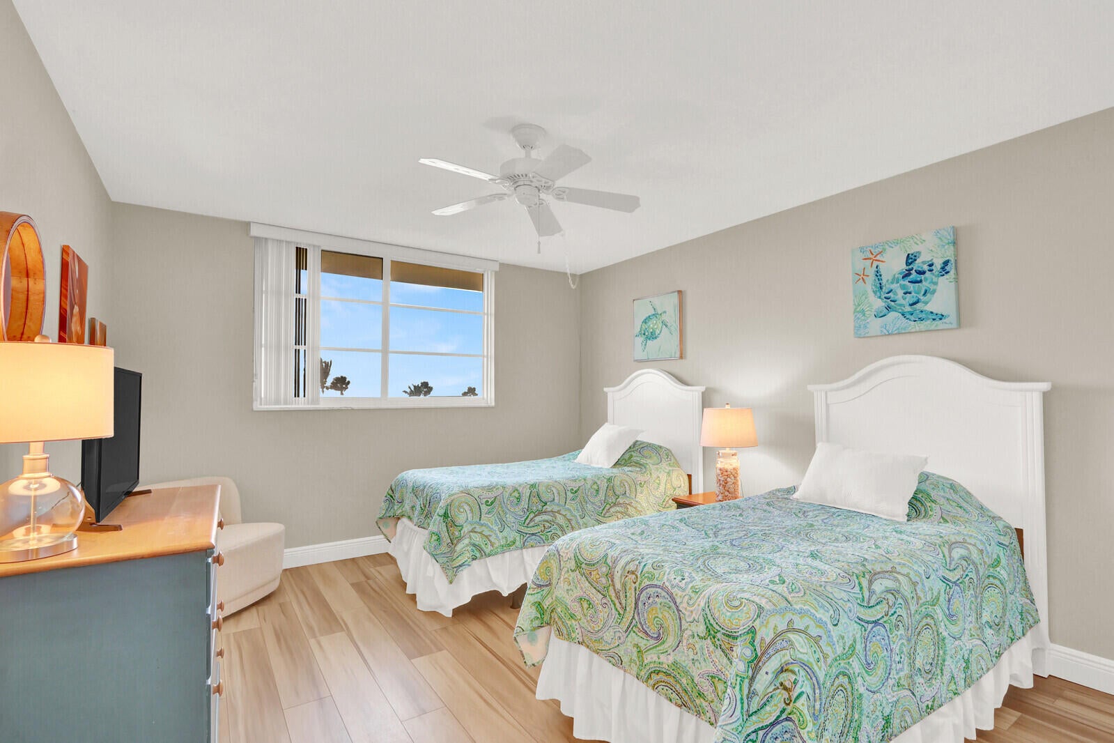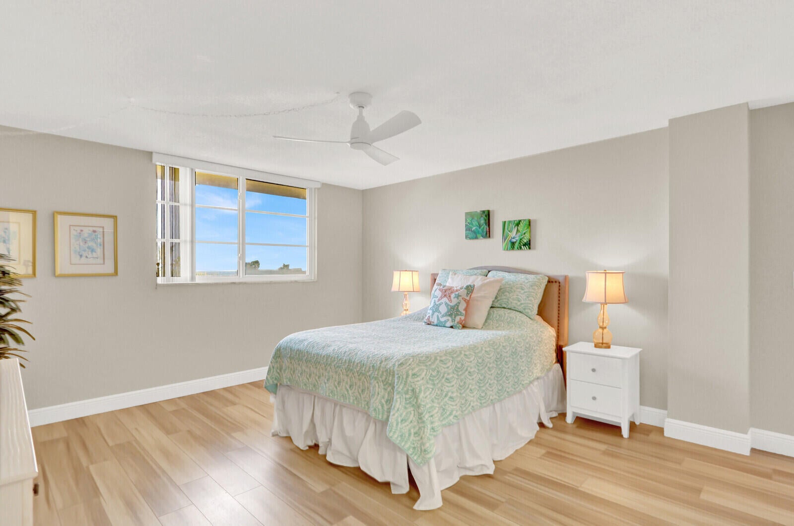 Wake up to spectacular ocean views in this stunning 5th-floor condo, where the water greets you the moment you step inside. This beautifully updated, furnished residence features renovated flooring throughout, a refreshed living room, and a serene primary suite. The primary bathroom offers beautiful furnishings and a step-in shower with a rainfall showerhead and spray wand, creating a spa-like retreat. The bright, open layout is filled with natural light and designed to showcase ocean views. Impact windows and doors provide peace of mind, while sliding glass doors with a magnetic mesh screen allow for refreshing ocean breezes. Enjoy north-facing ocean views from the balcony, perfect for breathtaking sunrises and sunsets. A move-in-ready coastal retreat with seamless indoor-outdoor living.