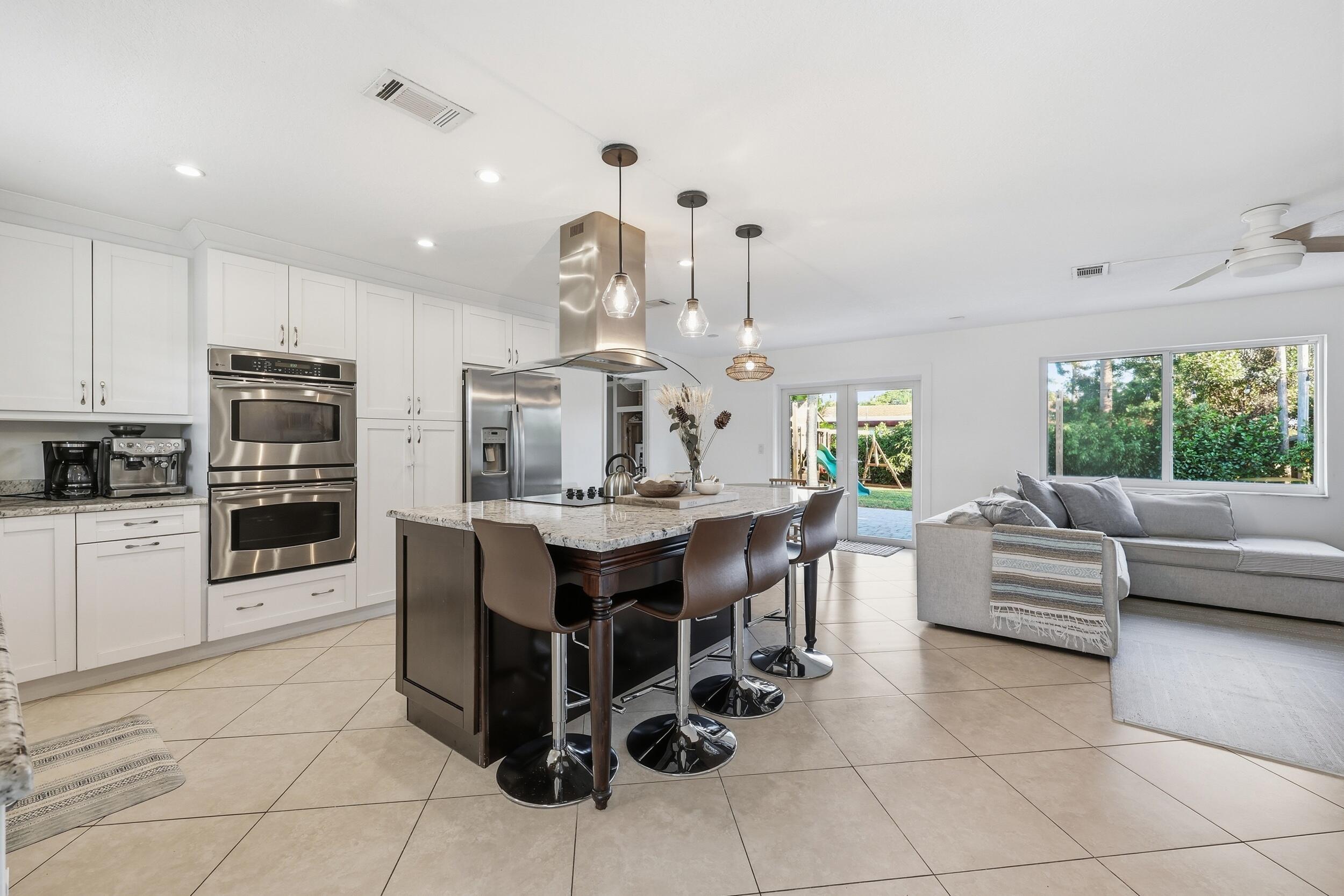 Welcome to 3135 Florida Blvd., a beautifully updated three-bedroom, two-bath home. This home offers exceptional curb appeal with a paved driveway, welcoming front porch, and impact windows throughout, setting the tone for the coastal charm found inside. The nicely updated kitchen anchors the open-concept living space, featuring a large island and an organic, airy feel flooded with natural light. Expansive doors create a seamless flow from the interior to the spacious backyard, perfect for indoor-outdoor living. Outside, enjoy an open paved patio with attractive pavers, mature landscaping, and fruit trees, offering ample space for entertaining, play, or adding a future pool. The home includes three comfortable bedrooms, two full bath , a dedicated laundry room, a and a one-car garage. Ideally located close to shopping, dining, and everyday conveniences while still feeling tucked away in a peaceful oasis, this home delivers the best of both lifestyle and location.