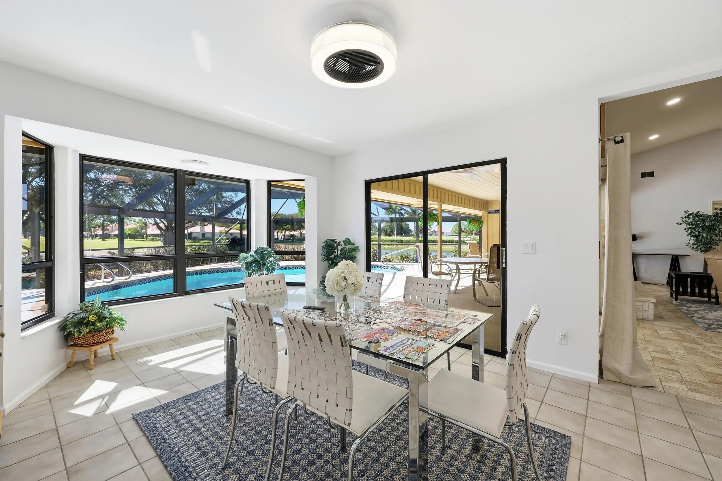 Fully furnished seasonal rental, this spacious 3-bedroom, 2.5-bath residence with a 2-car garage offers comfortable one-level living. The open great room is filled with natural light and flows seamlessly to an oversized covered lanai. Step outside to your private pool and enjoy expansive golf views of the 11th and 12th holes. Ideally located near world-class golf, dining, and shopping, and just minutes to the beach, this home offers effortless resort-style living in one of Palm Beach County's most sought-after communities.
